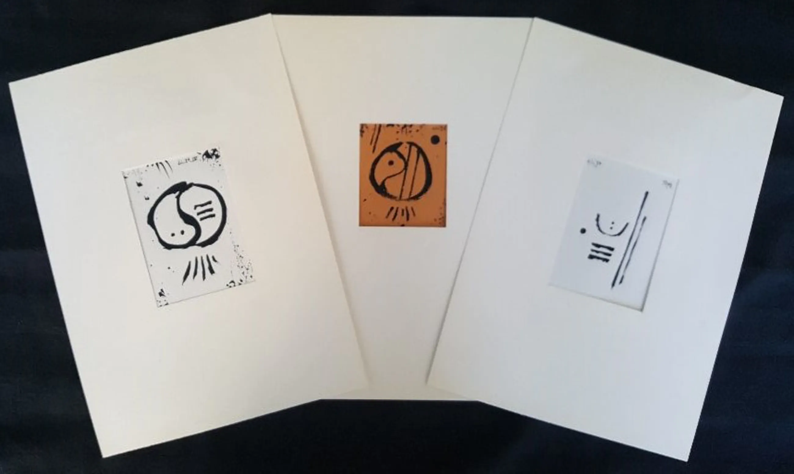 De drie miniaturen van Léon Savelsberg (1922 – 1986) zitten in een passepartout met de afmetingen 15 x 21 cm (b x h). De miniaturen zijn met pen (inkt) op papier en met de hand gesigneerd. Het beeld van de twee miniaturen op wit papier is 5,5 x 8 cm. (b x h) en het beeld van het miniatuur op terra papier is 5 x 5,5 cm. (b x h). De drie miniaturen zijn in zeer goede staat.