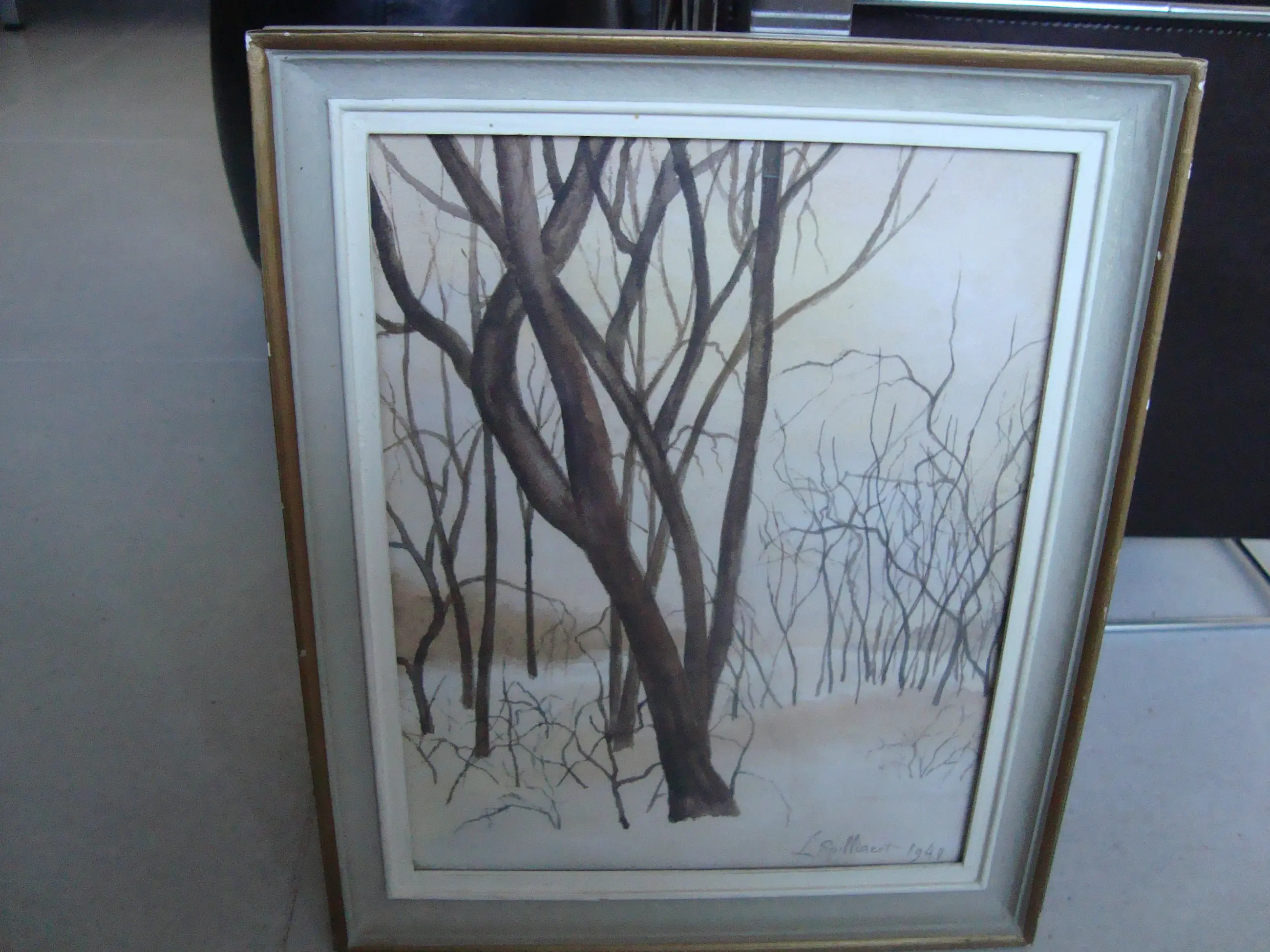 Gouache , bomen in een winterlandschap , gesigneerd Leon Spilliaert én gedateerd 1940 . Het werk verkeert in prima conditie . Door erfenis verkregen .