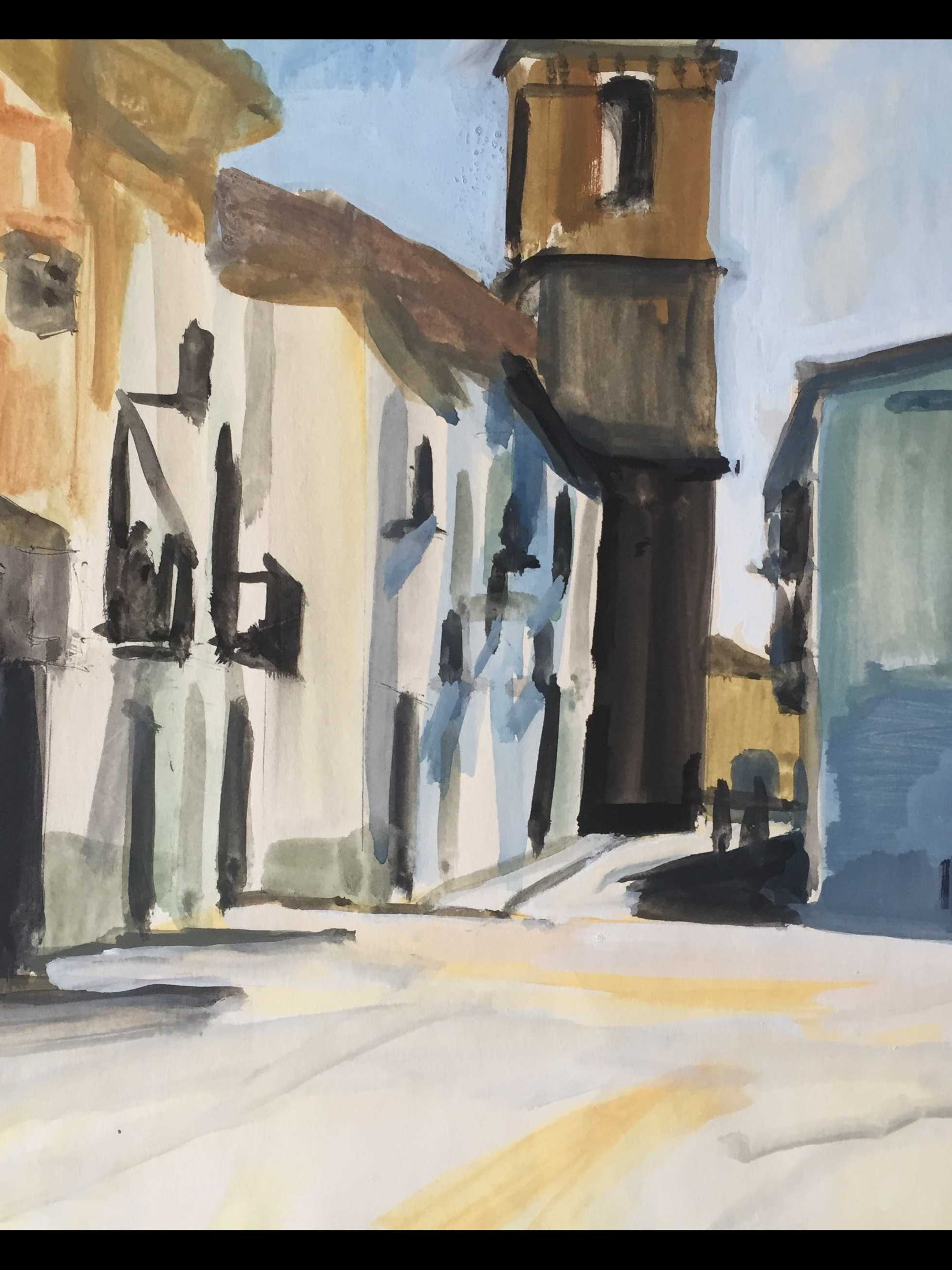 Mooie gouache door Leon Zeldenrust met impressie van het Spaanse plaatsje Calig.