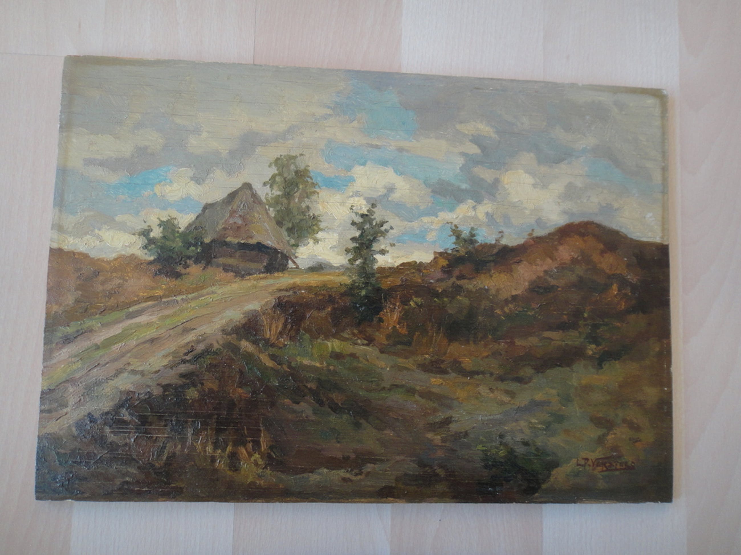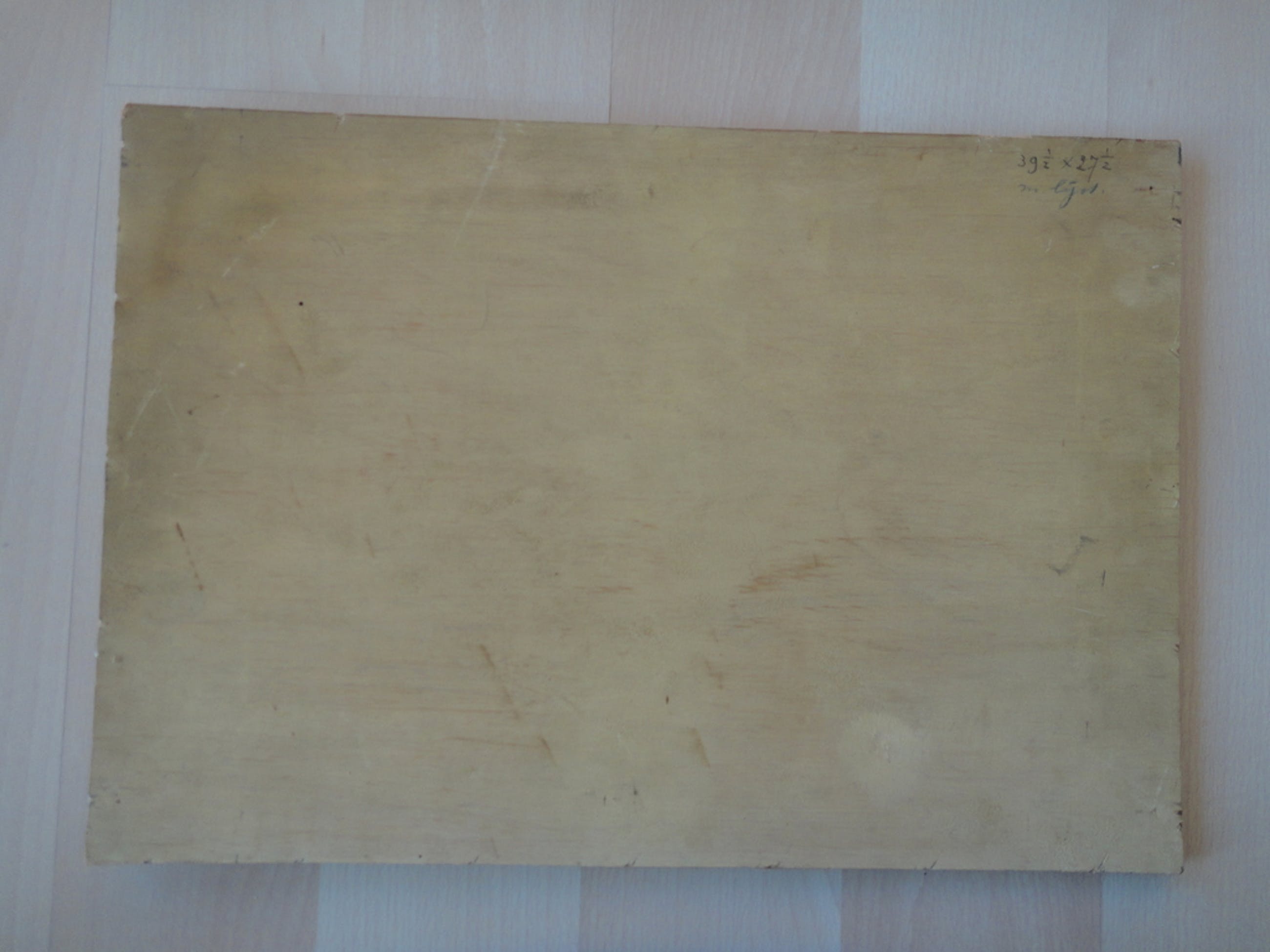 Zoals te verwachten met board, vertoont het barsten die 'ingewassen' zijn. Het paneeltje is bovendien schoongemaakt.