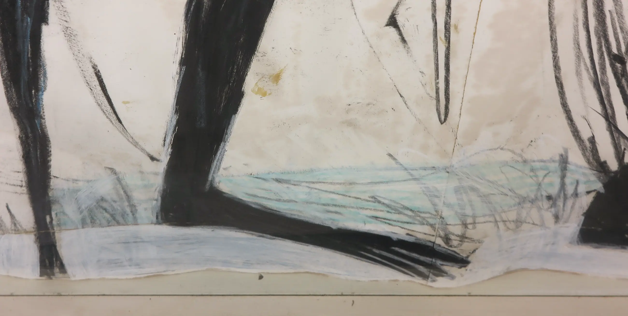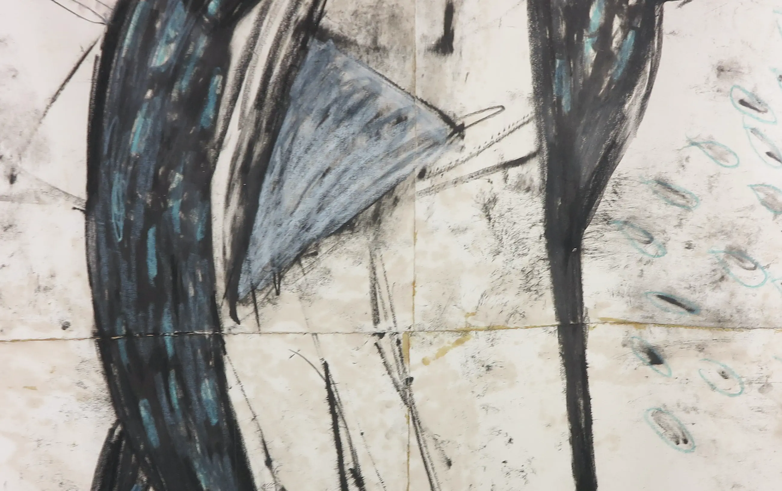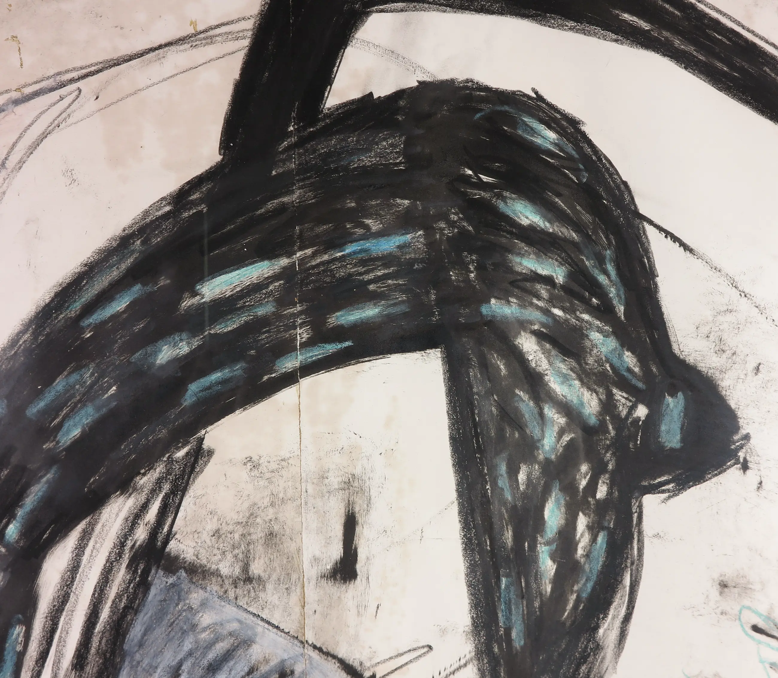 Groot werk op papier van Amsterdamse kunstenares Leonie Greefkens, vervaardigd in houtskool en olieverf.