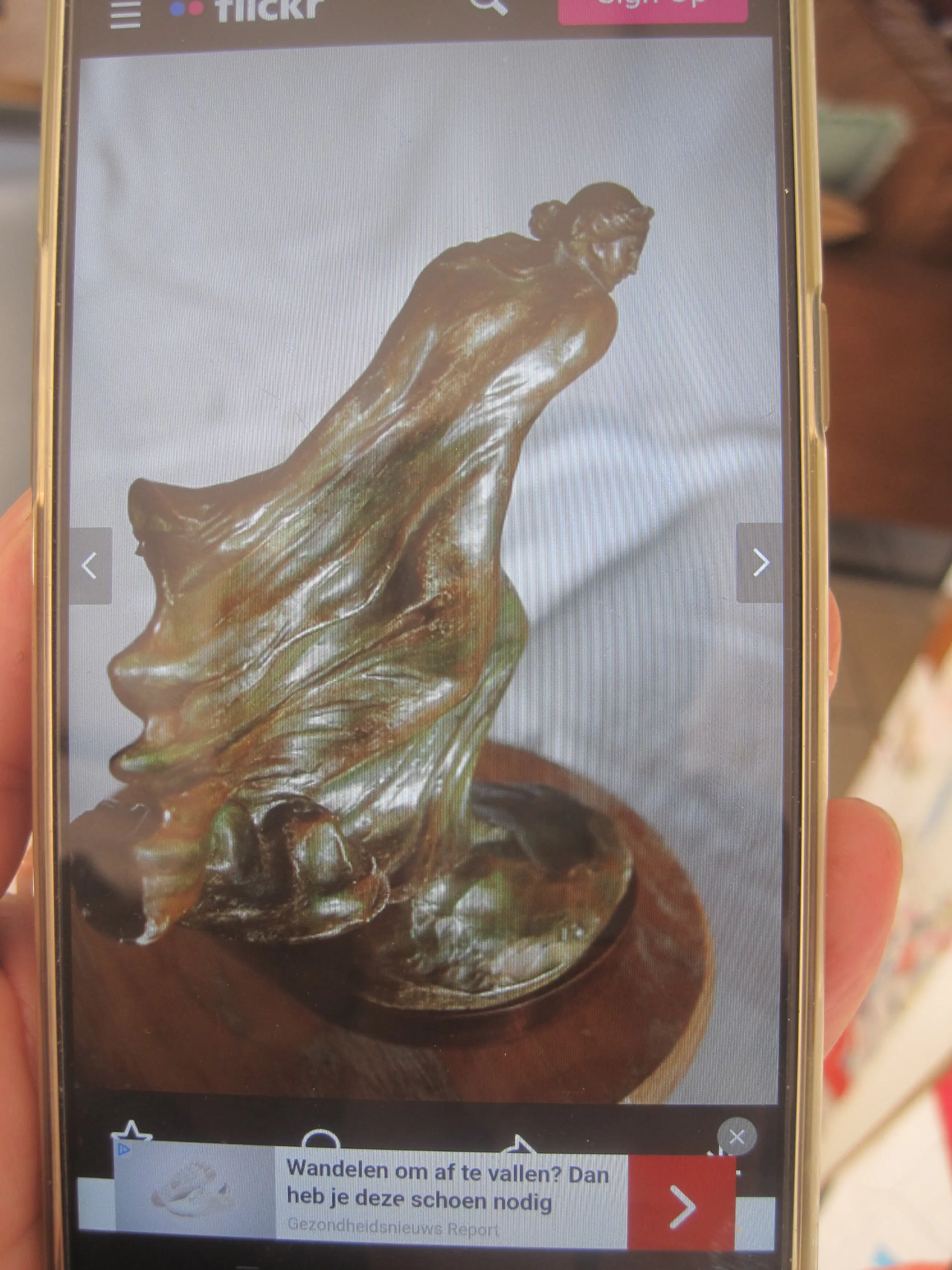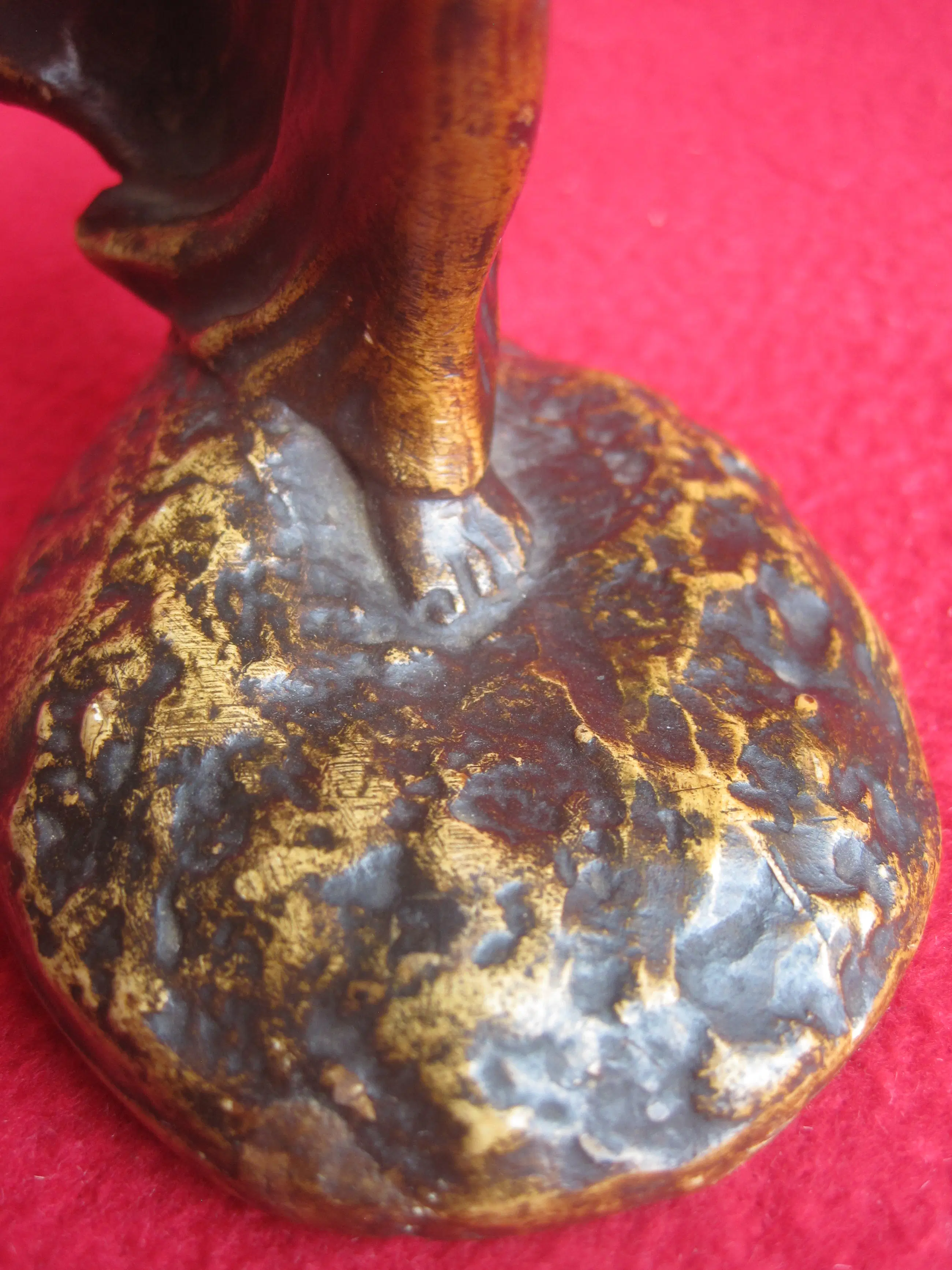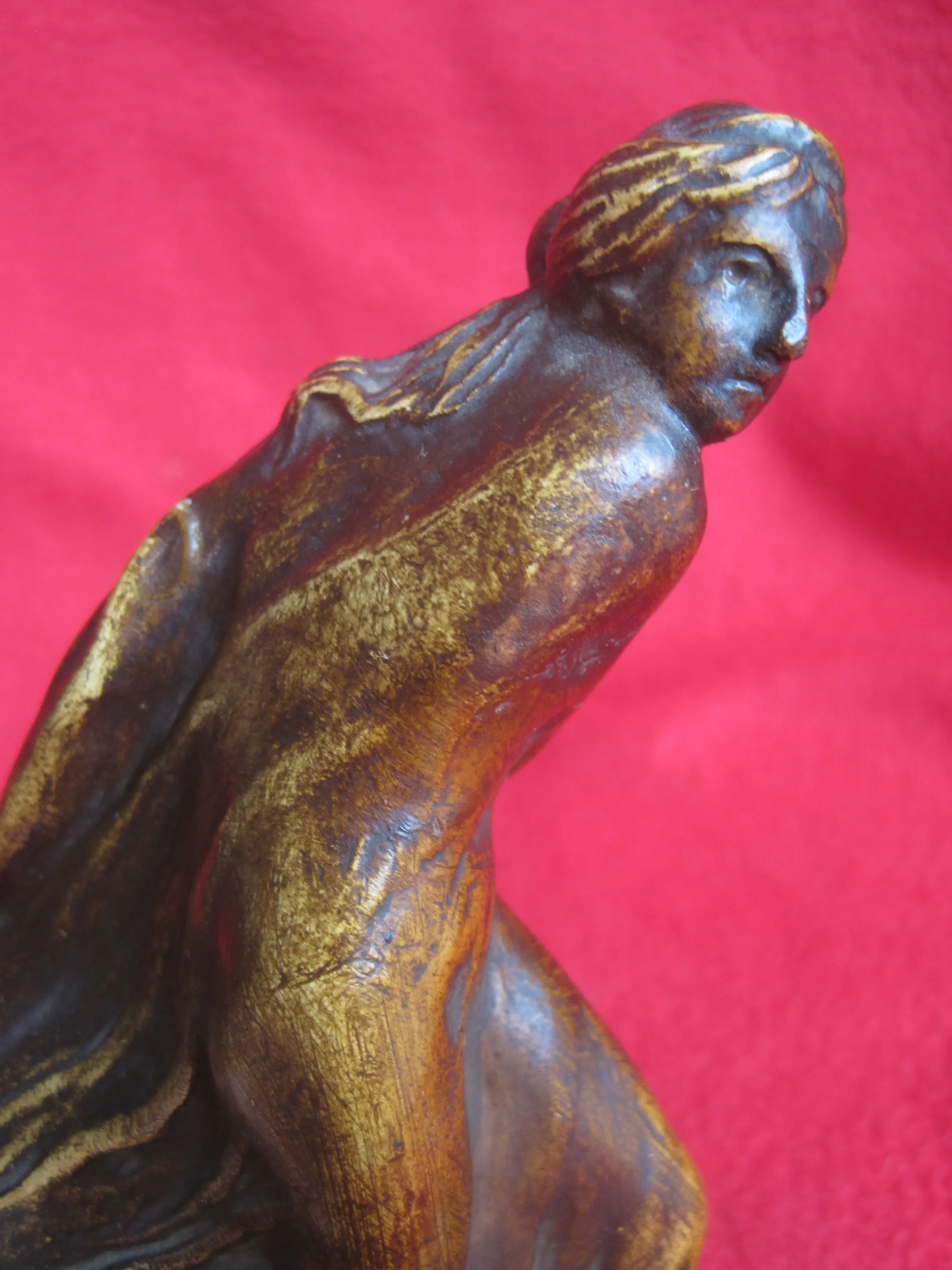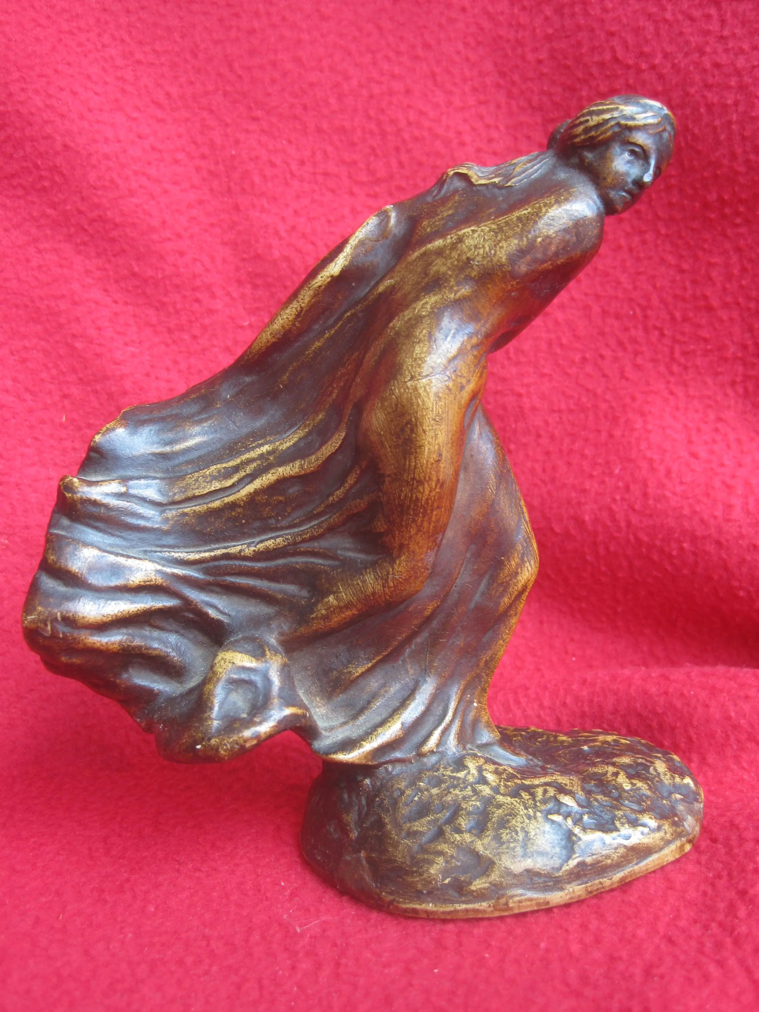 Een sierlijk beeldje van plâtre ( gips ) naar een ontwerp van Leonildo Ginannoni Chapelier ( 1880-1951 ). Léonildo Giannoni-Chapelier (1880-1951), van Italiaanse afkomst maar opgegroeid in België (met name in Luik), was een beeldhouwer actief tijdens de Art-Nouveau en Art-Decoperiode. Zijn werken – vaak vrouwenfiguren of mythologische figuren in brons, soms gepolychromeerd of gepatineerd – rustend op marmeren sokkels. Dit beeldje staat op Flickr.