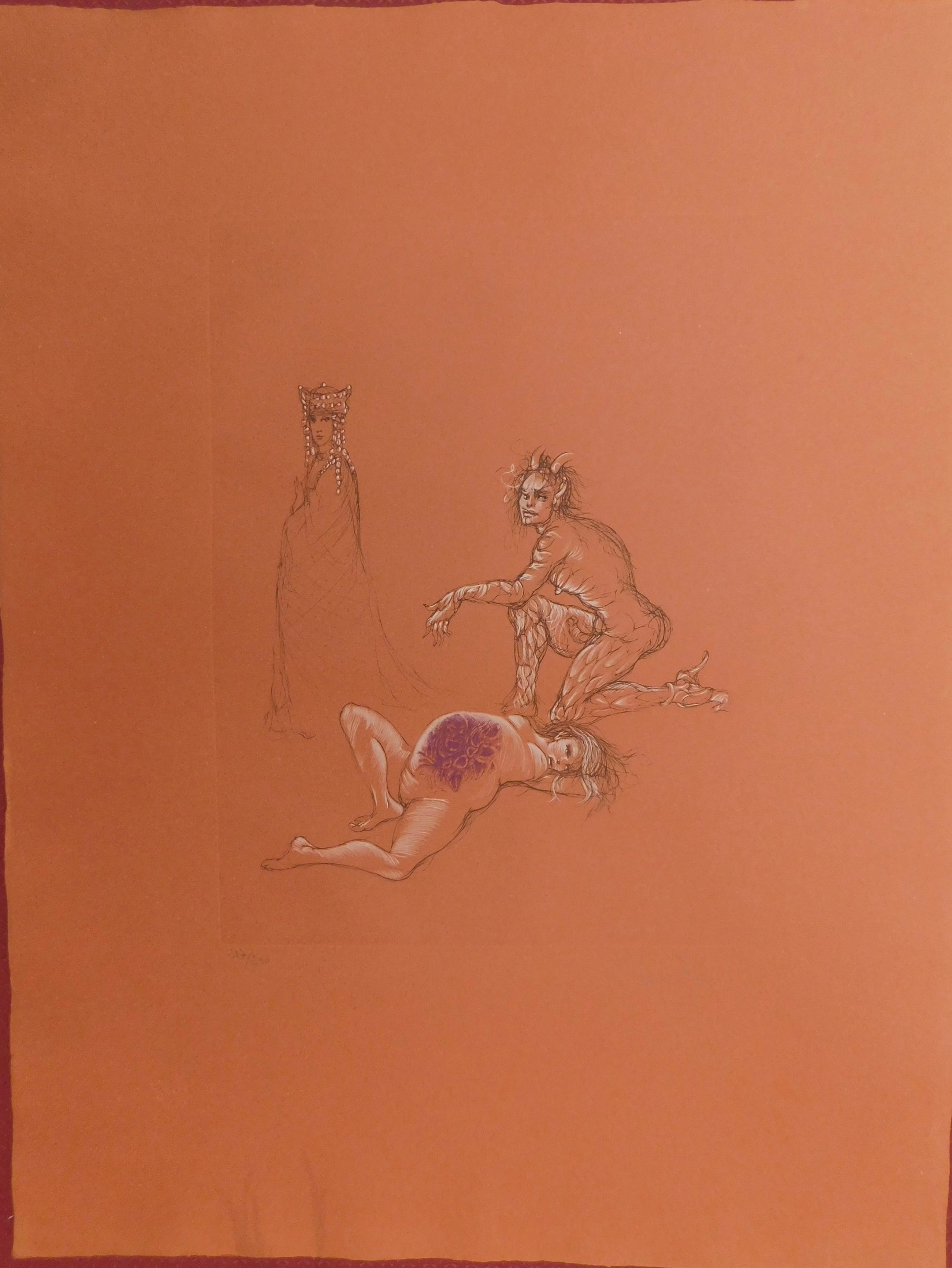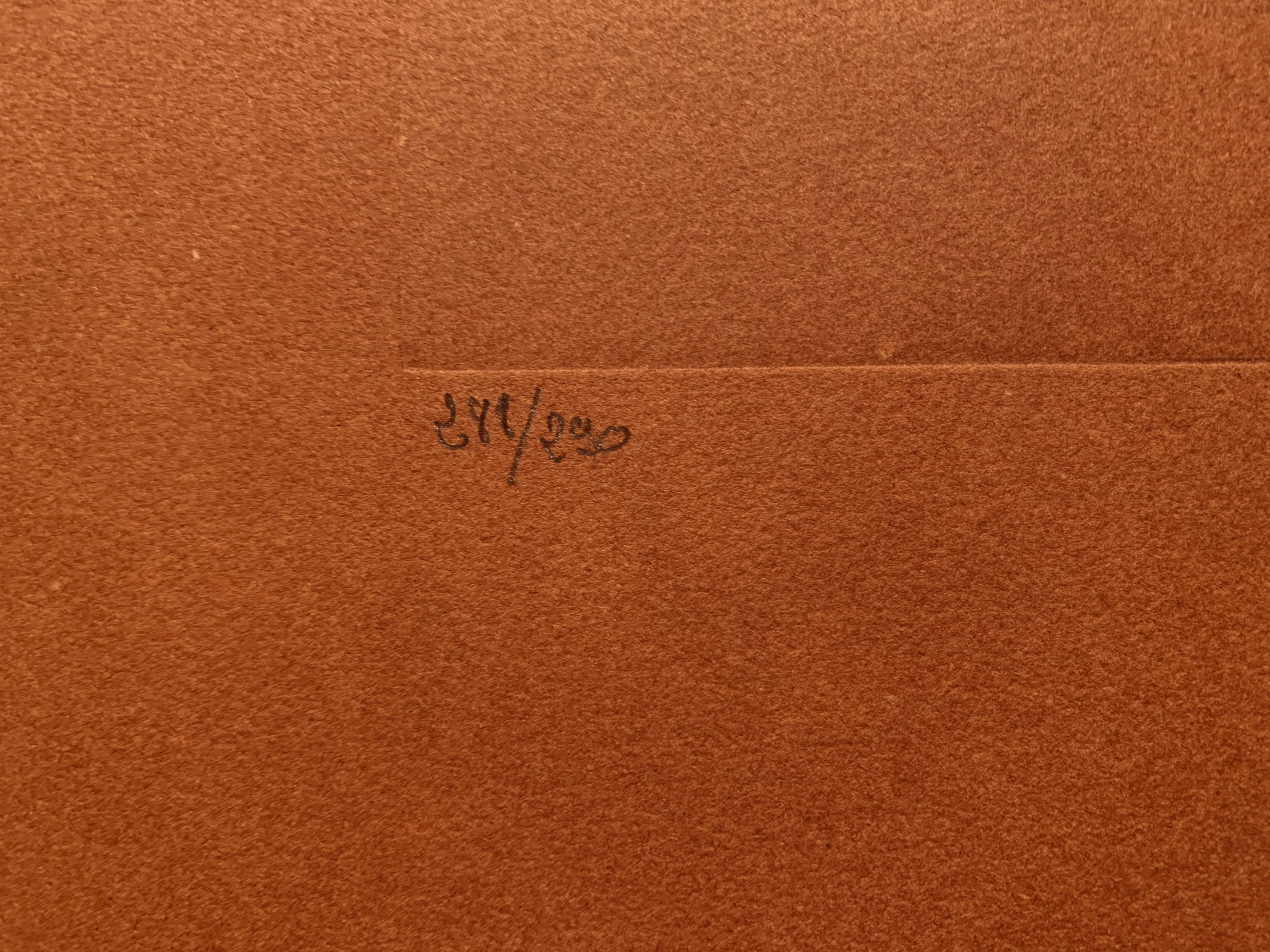 Conditie: zeer goed. Afmeting Ets: 40 x 29 cm. Editie: 288/290. Papiersoort: Oranje/rood geweven papier. Nooit ingelijst. Wordt verzekerd verzonden in een stevige kartonnen koker.
