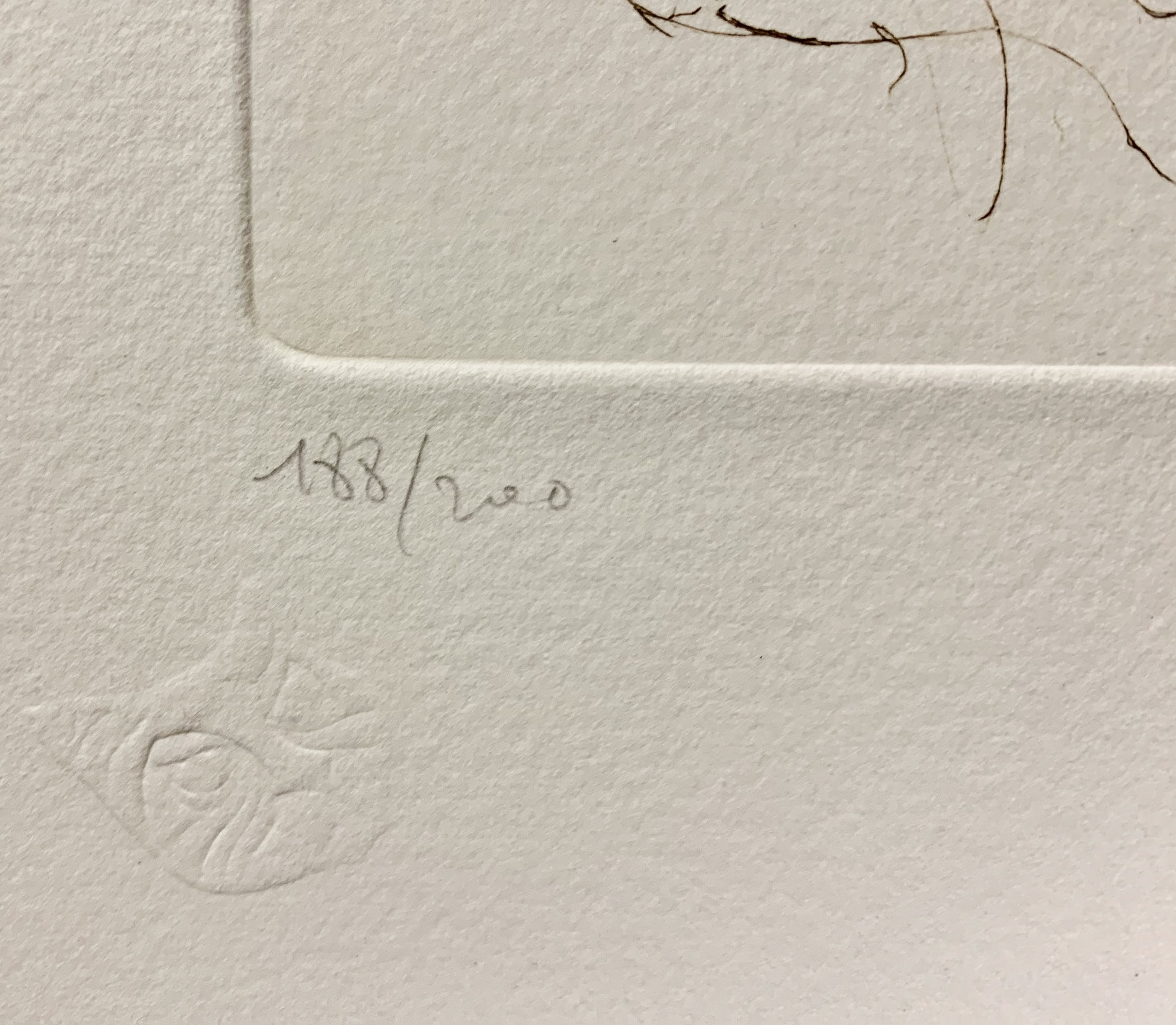 Conditie: zeer goed. Editie: 188/200. Afmetingen: Afbeelding: 29 x 21 cm. Wordt aangetekend verzonden in een stevige kartonnen koker. Gecombineerde zending mogelijk van 4 lithografieën.
