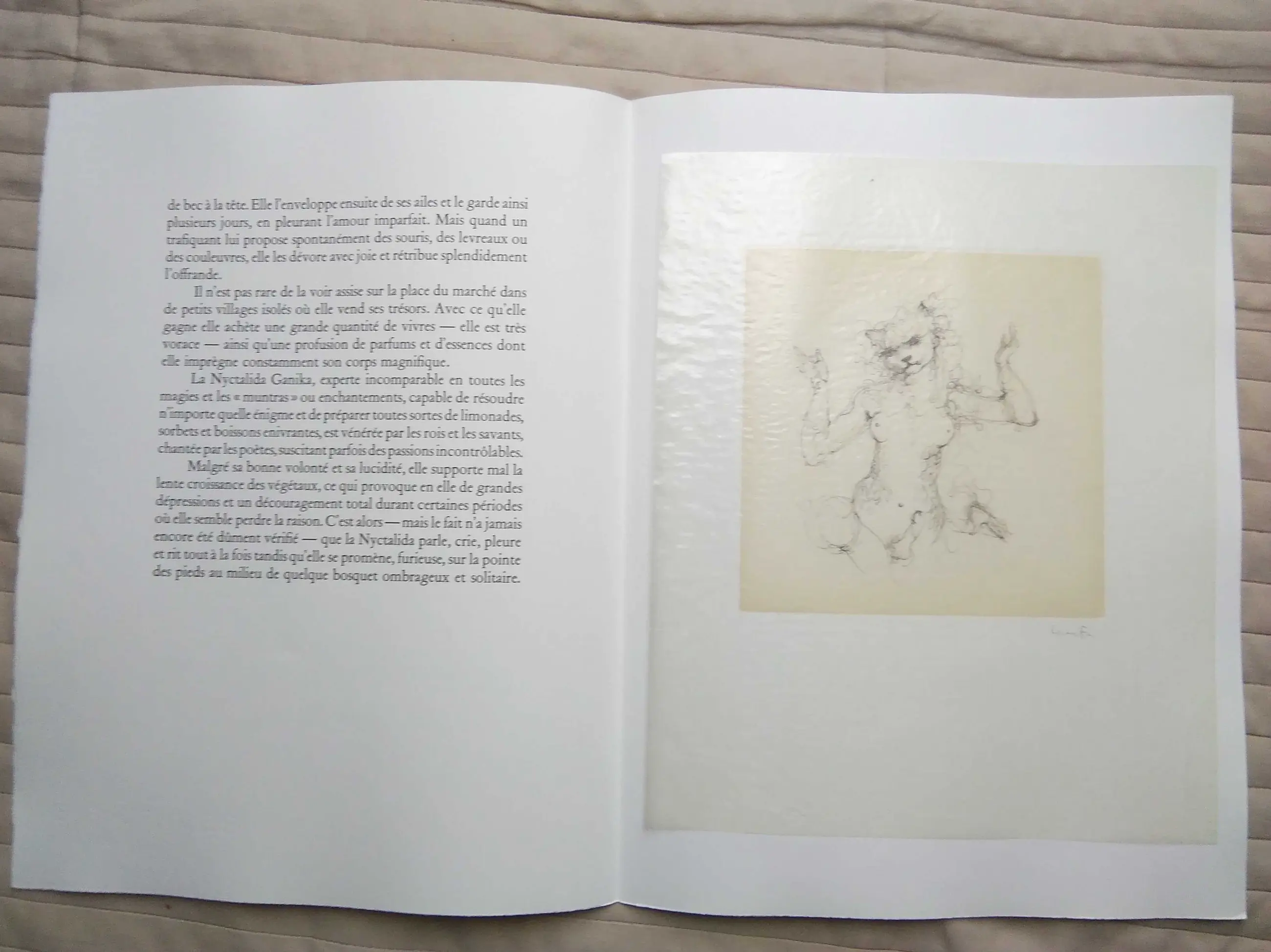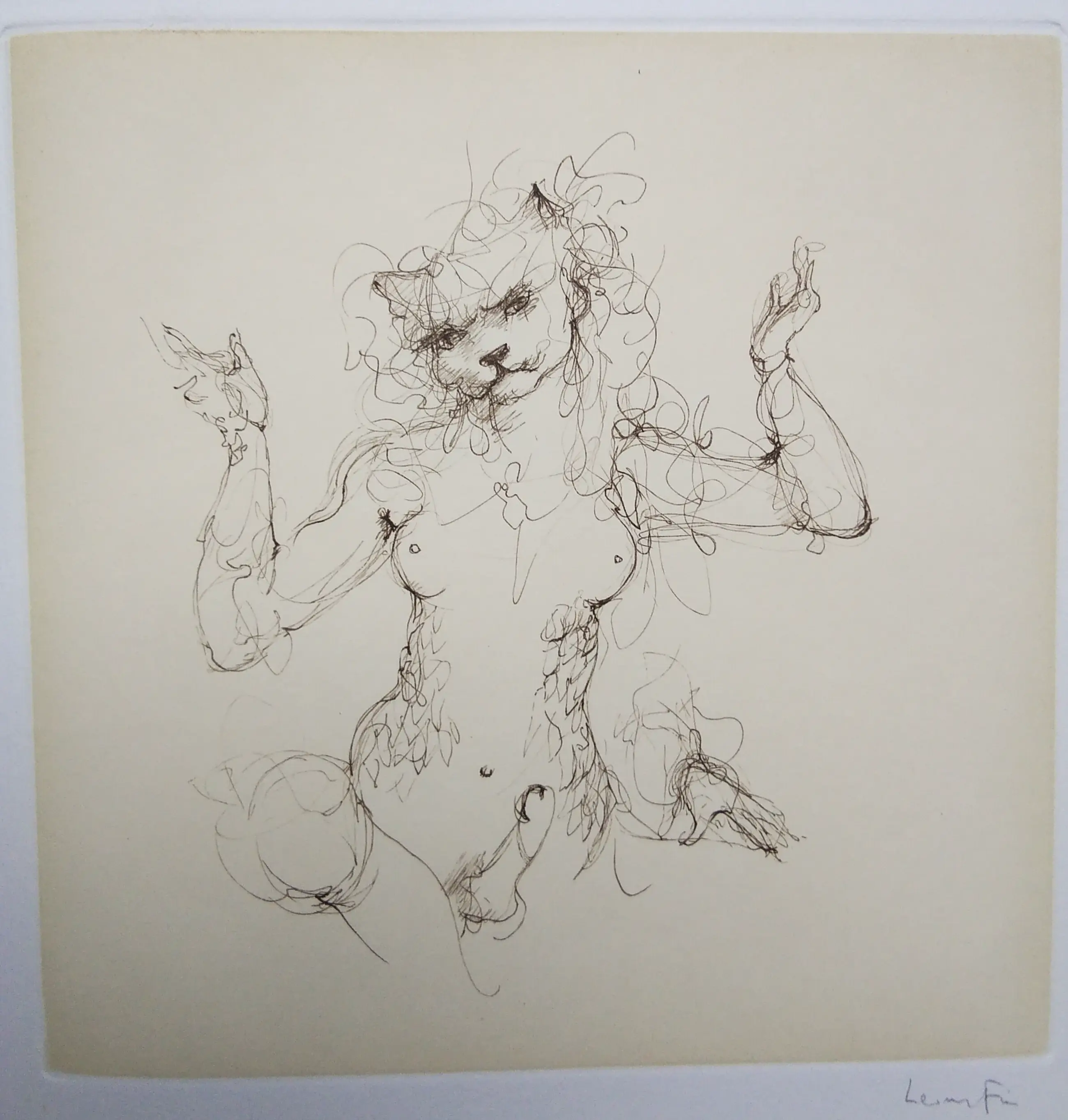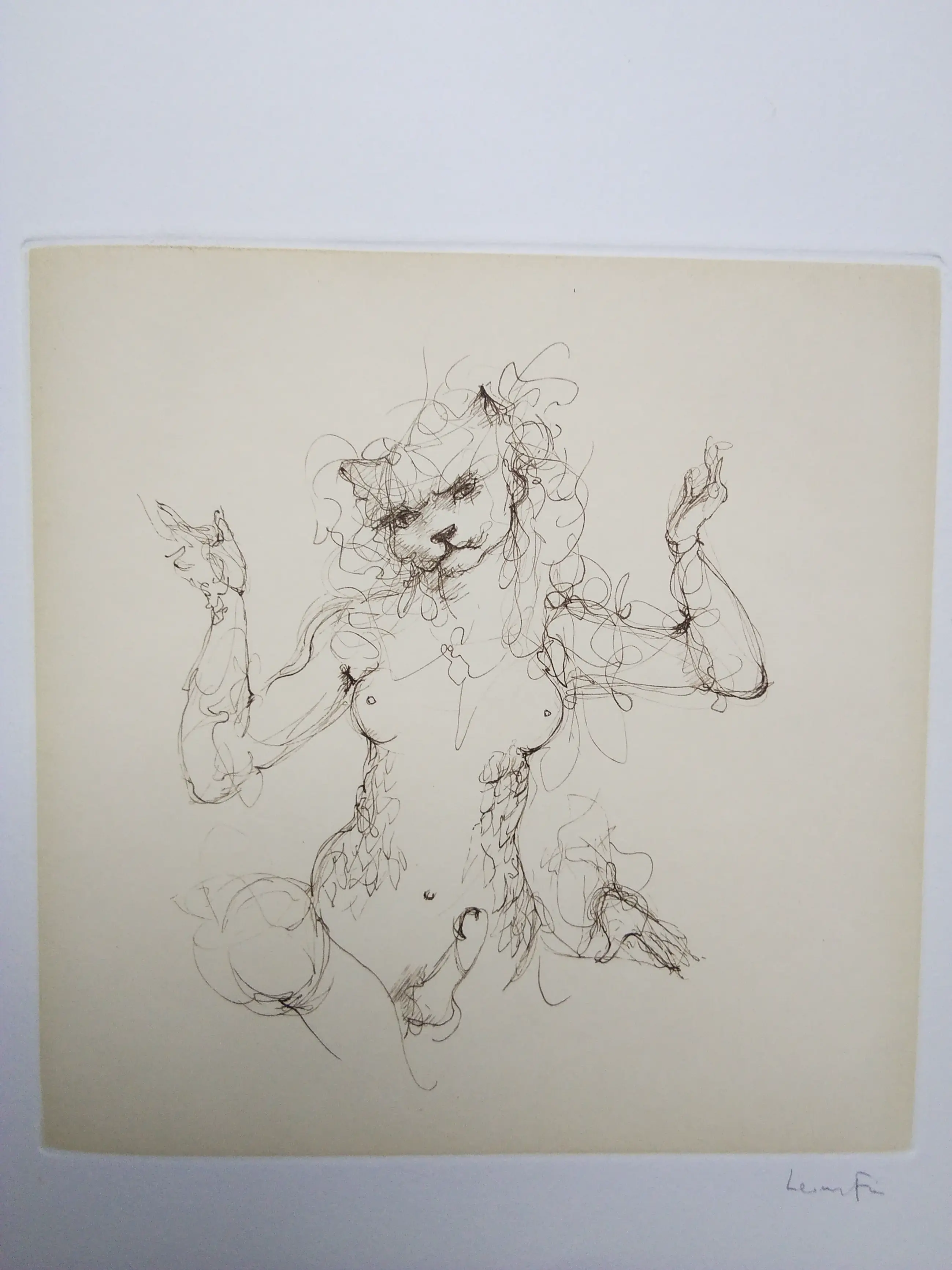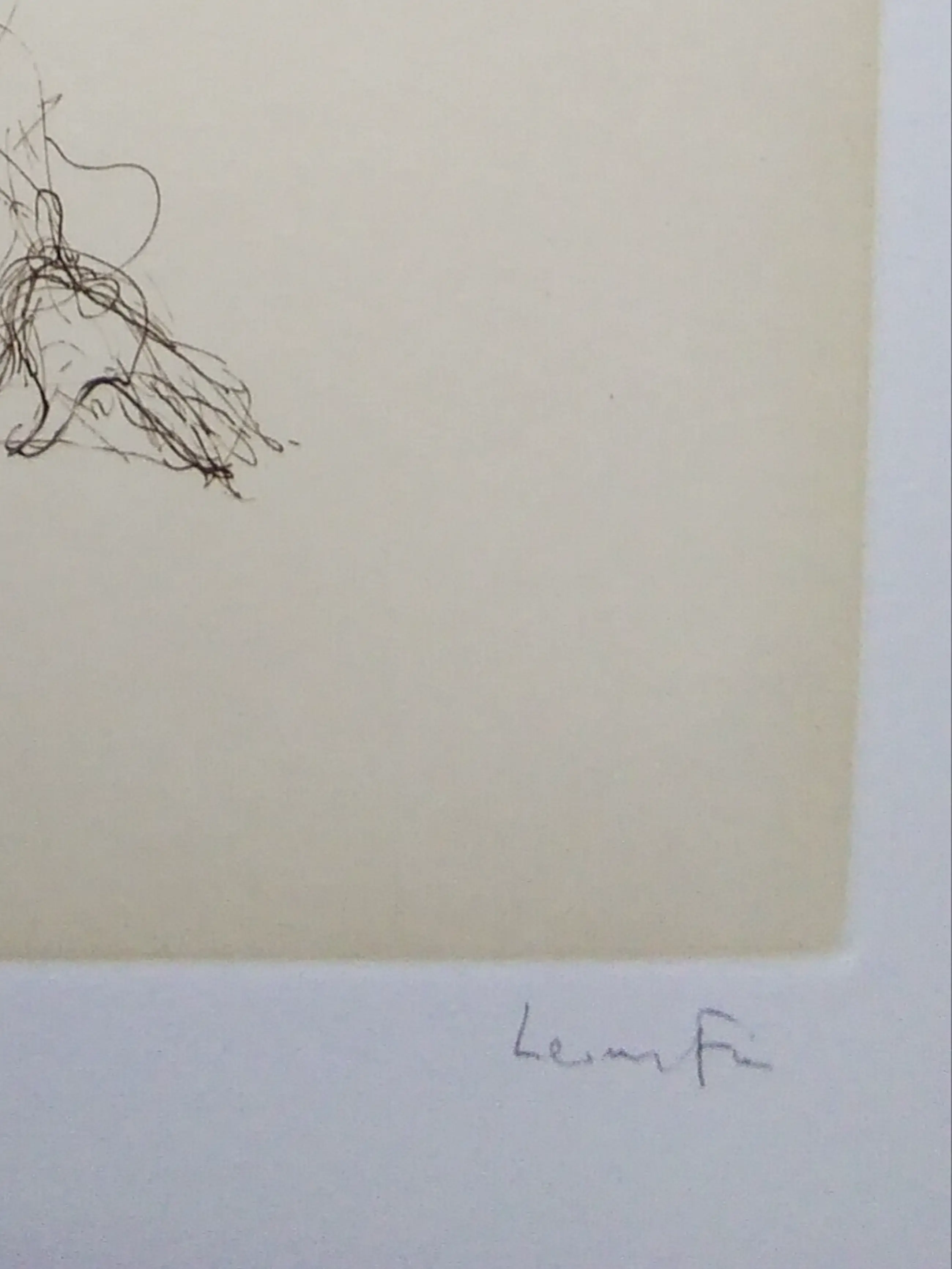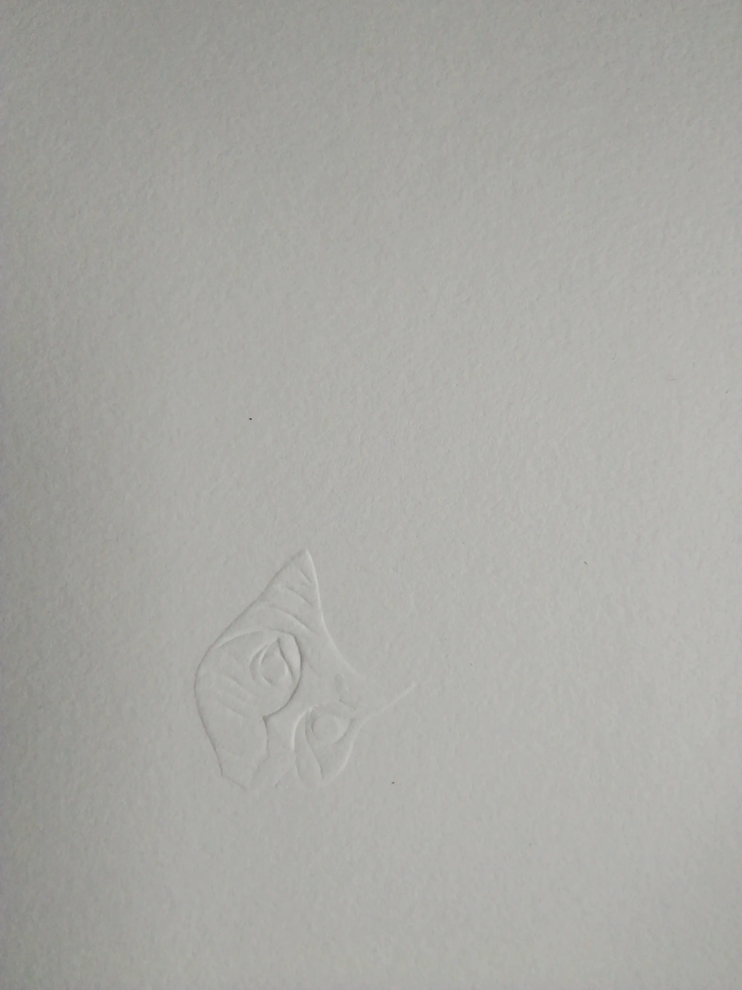 Formaat van de bladzijde waarop de ets staat is 40 x 30 cm. Rives papier. Relief druk Stempel met kat en met beschermend transparant papier.