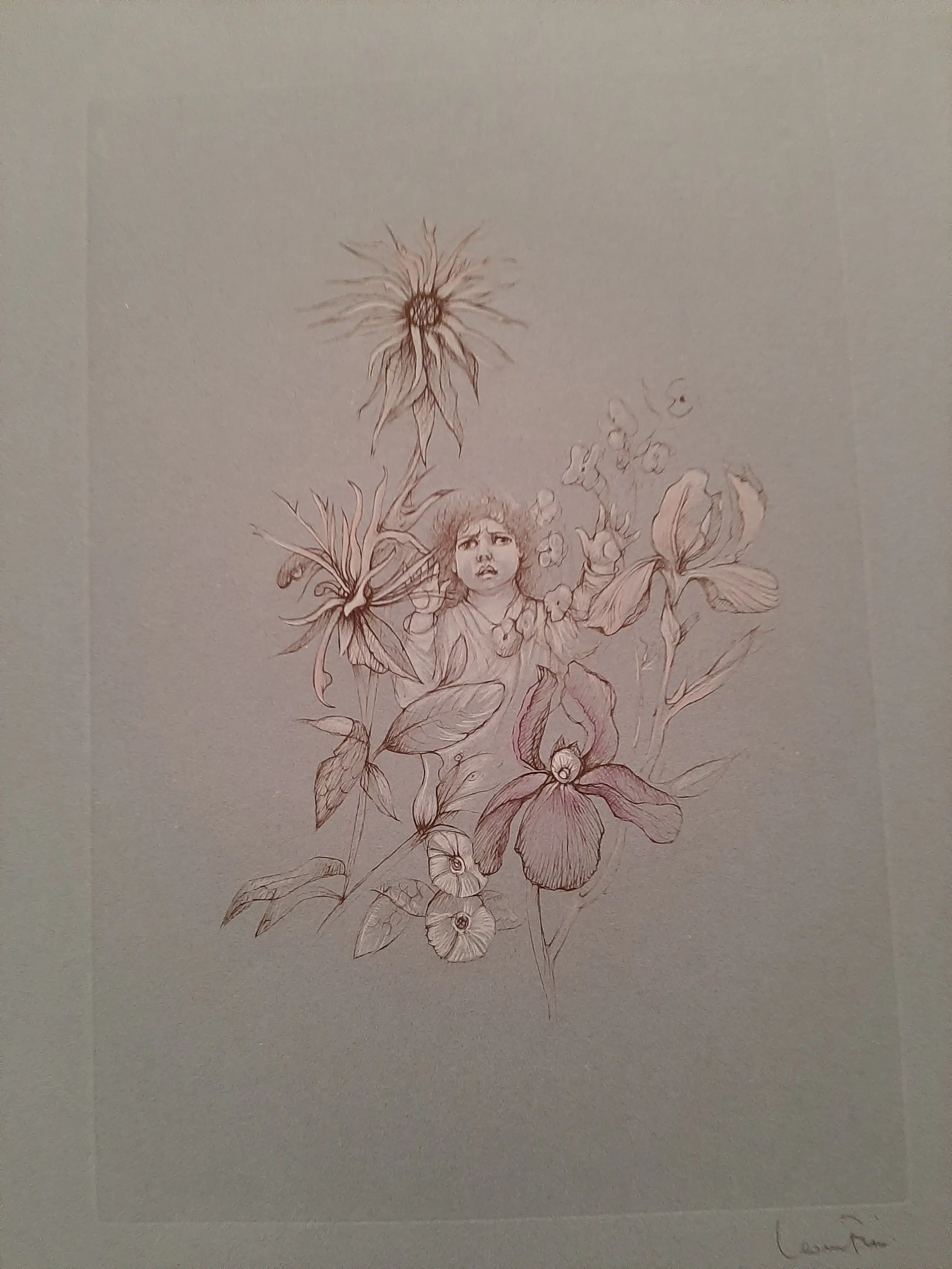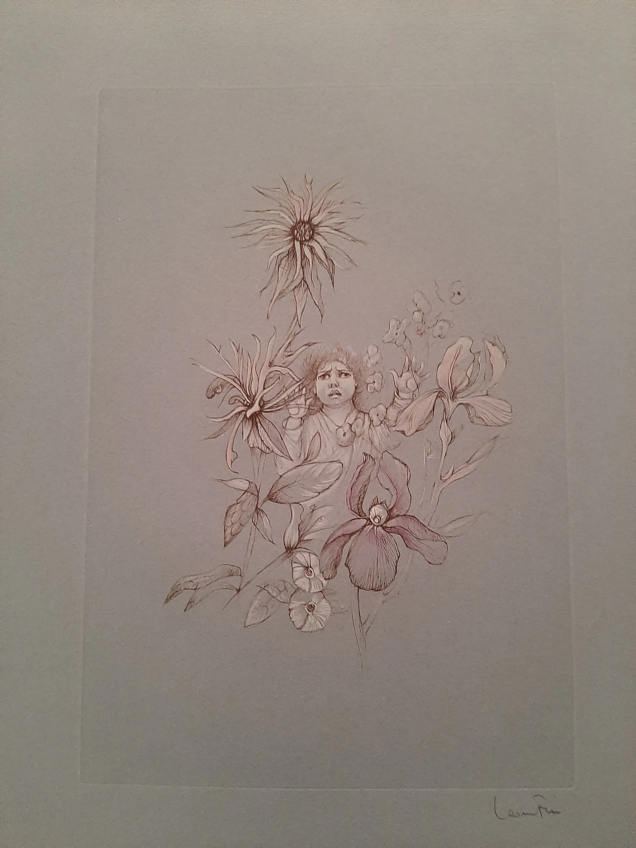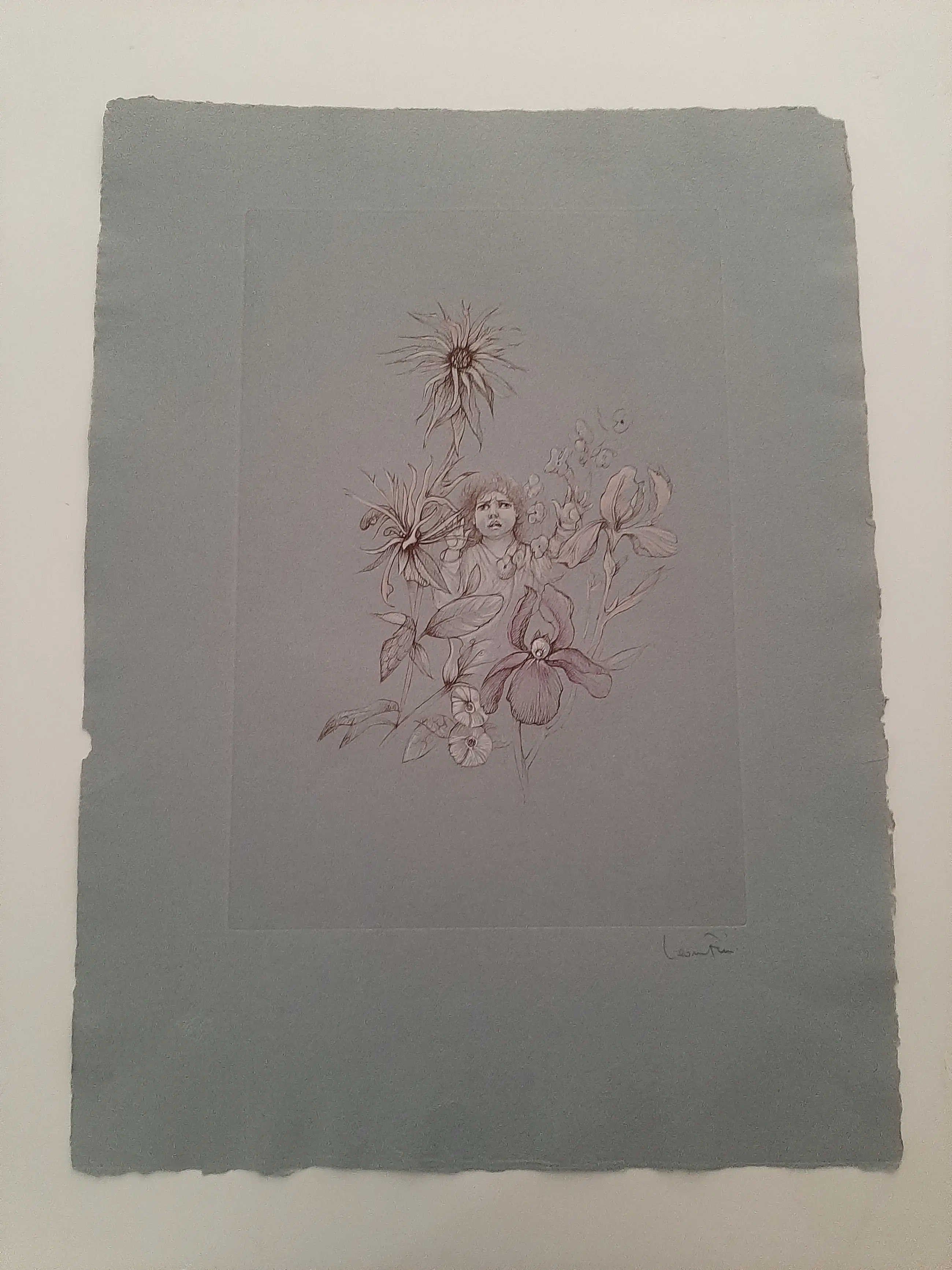 Léonor FINI: " Ets op getint velijnpapier, H. 68 x B. 48 cm.