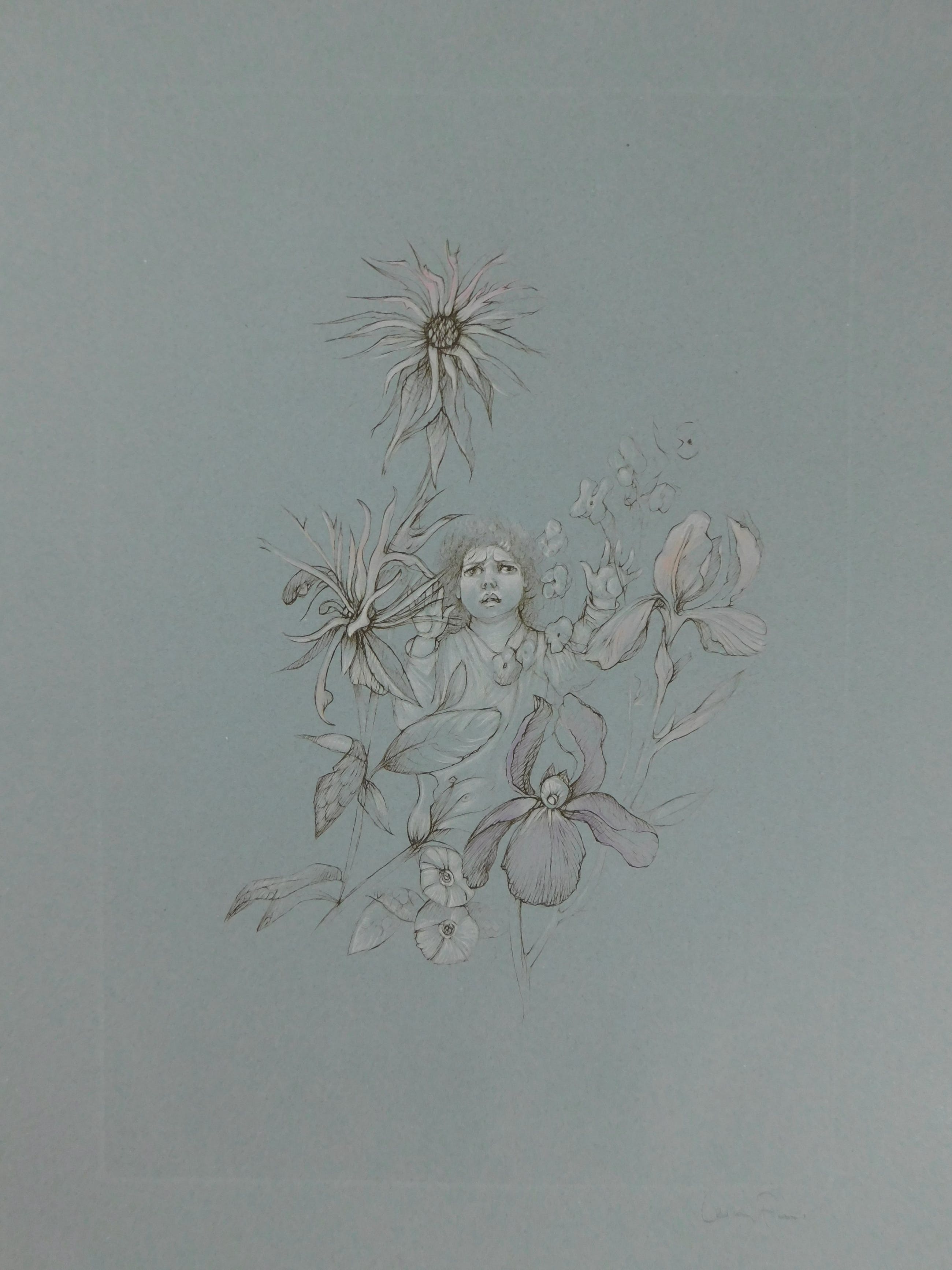 Conditie: zeer goed, Papiersoort: Grijs/blauw geweven papier. Afmetingen: Afbeelding: 46 x 31 cm. Wordt aangetekend verzonden in een stevige kartonnen koker. Gecombineerde verzending mogelijk t/m 4 lithografieën.