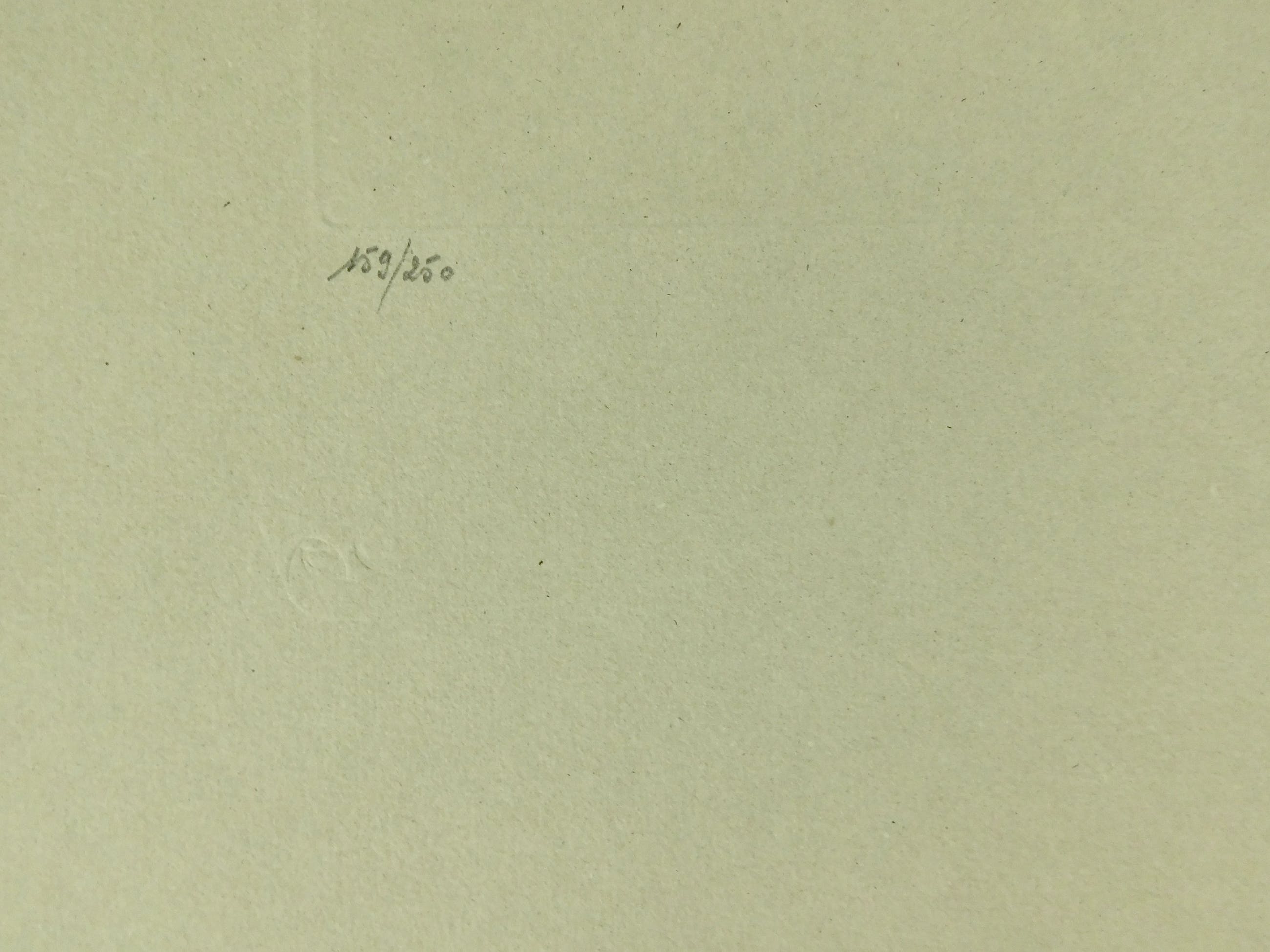 Conditie: goed, lichte witte stipjes, zie foto's. Editie: 159 / 250. Nummers op de foto kunnen afwijken. Papiersoort: Beige geweven papier. Afmetingen: Afbeelding: 40 x 30 cm. Wordt verzekerd verzonden in een stevige kartonnen koker. Gecombineerde verzending tot 4 lithografieën.