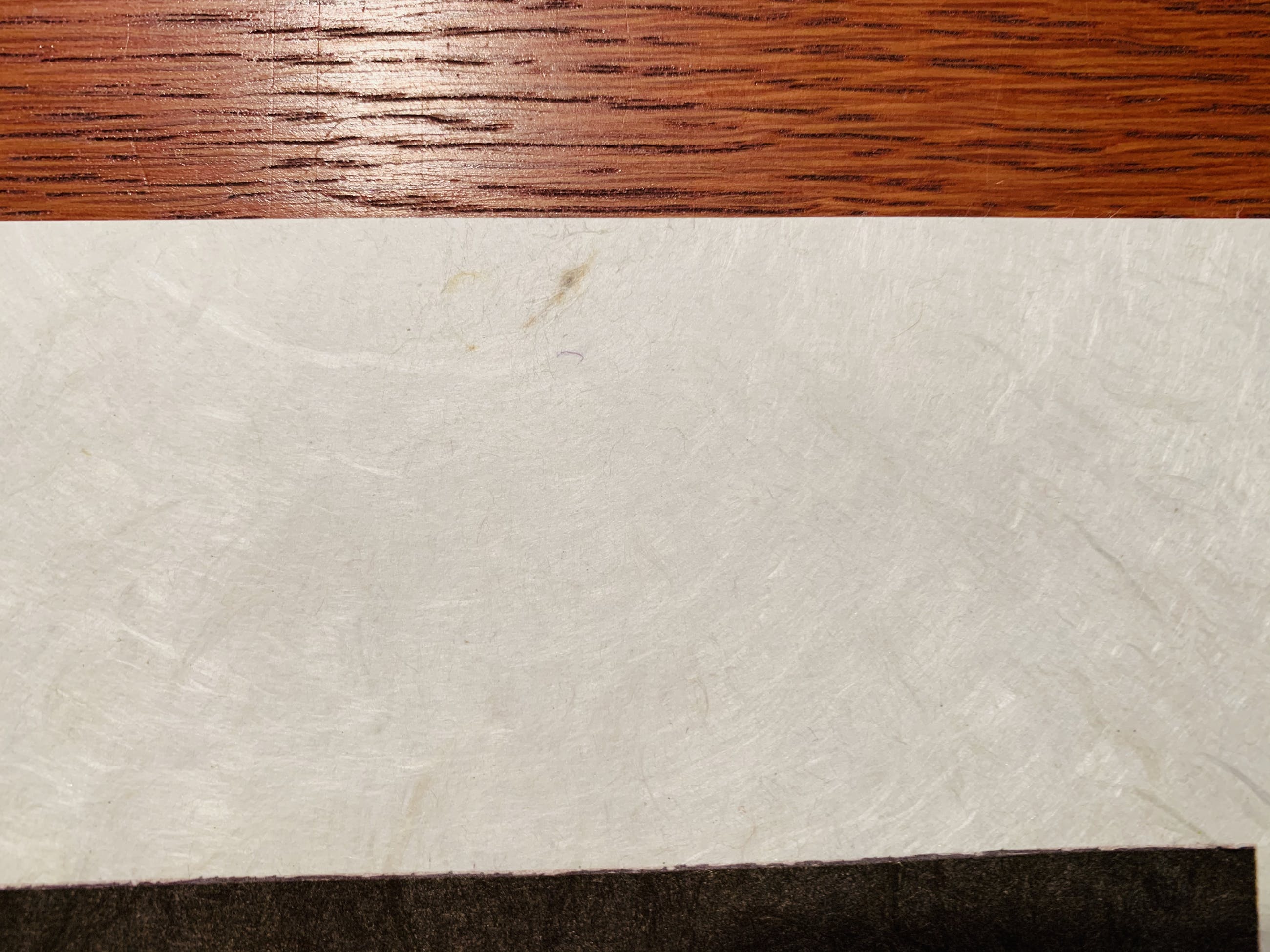Afbeelding zeer goed, vel heeft vlekje en klein speldenknop gaatje, zie foto's.