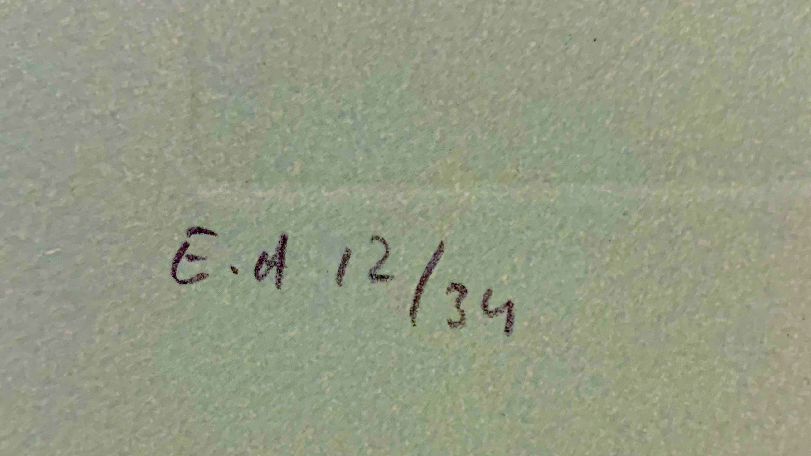 Conditie: uitstekend. Editie: E.A. 12/34. Papiersoort: Hoge kwaliteit papier mintgroen. Afmetingen: Afbeelding: 49 x 32 cm. Wordt verzekerd verzonden in een stevige kartonnen koker.