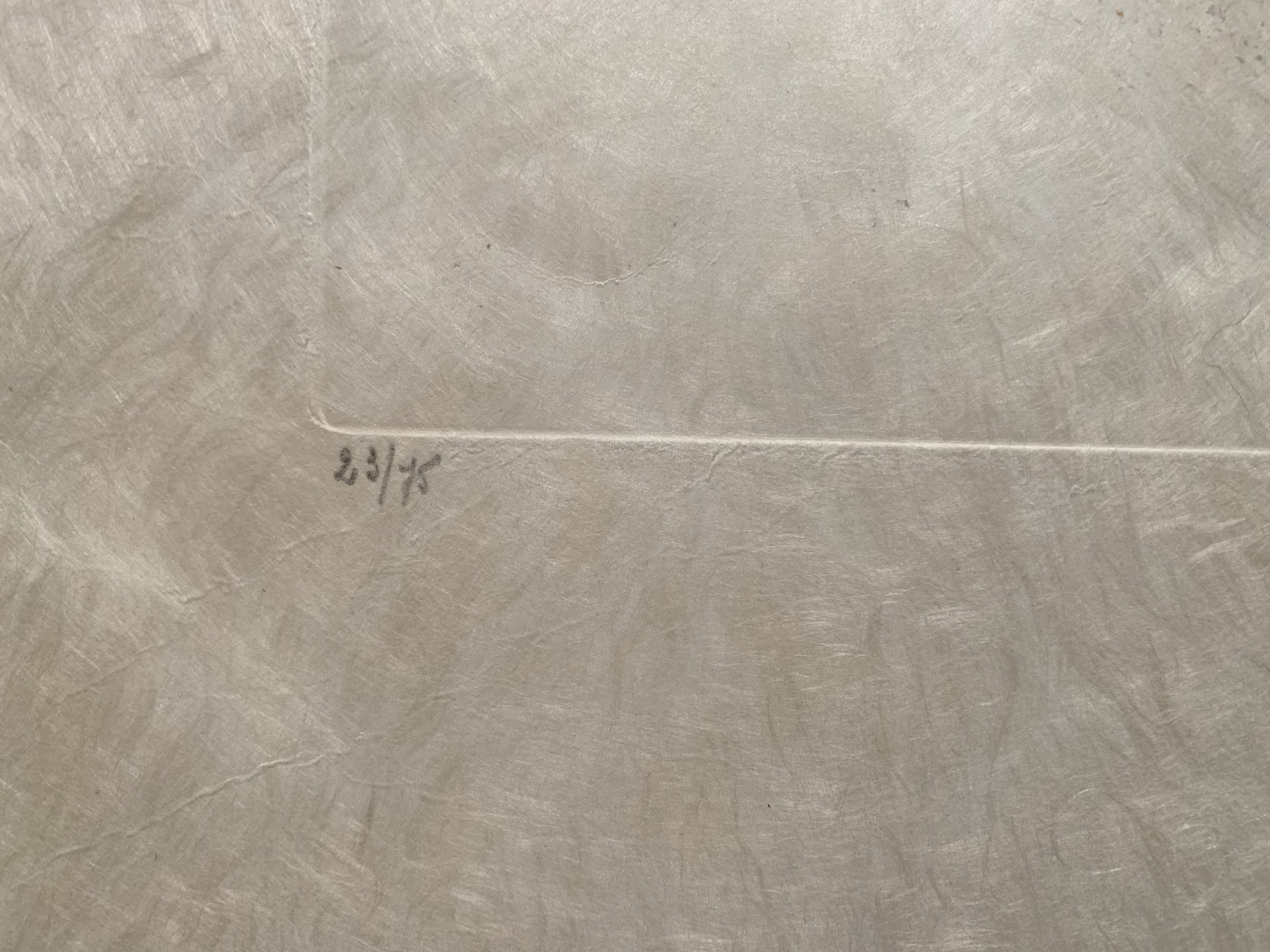 Conditie: uitstekend. 2 speldenknop (ets) gaatjes, zie close up foto's. Afmeting Ets: 29 x 25 cm. Editie: 23/75. Papiersoort: Japans rijstpapier. Nooit ingelijst. Wordt verzekerd verzonden in een stevige kartonnen koker.