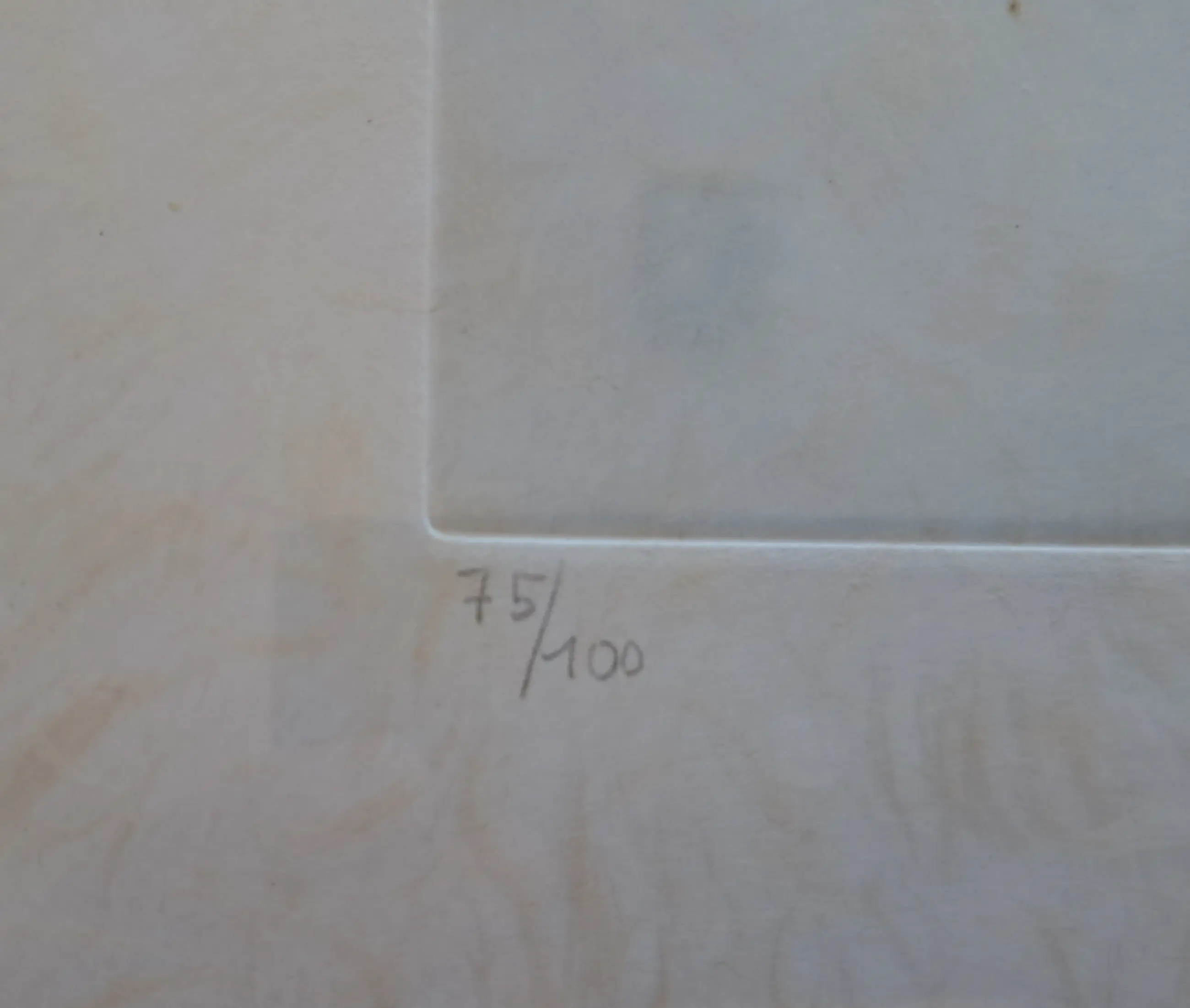 Het betreft een heel mooie ets op Japans papier in haar heel typische stijl.
