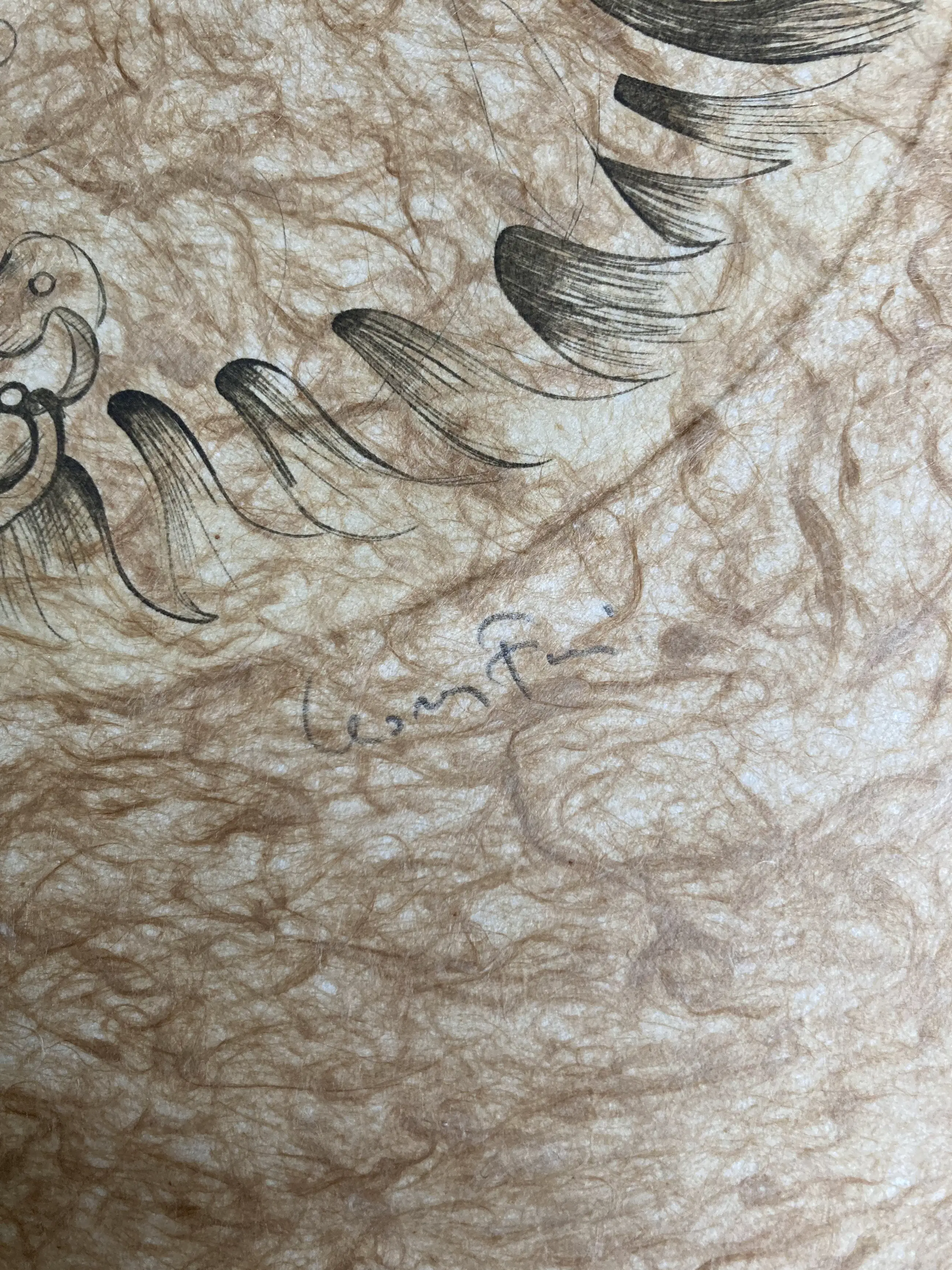 Ets van de Argentijnse surrealistische kunstenares Leonor Fini (pseudoniem van Eleonor Fini). Zij werd onder meer bekend om haar afbeeldingen van katten waarvan hier een exemplaar, afgedrukt op handgeschept papier en gesigneerd 'L. Fini' met potlood.