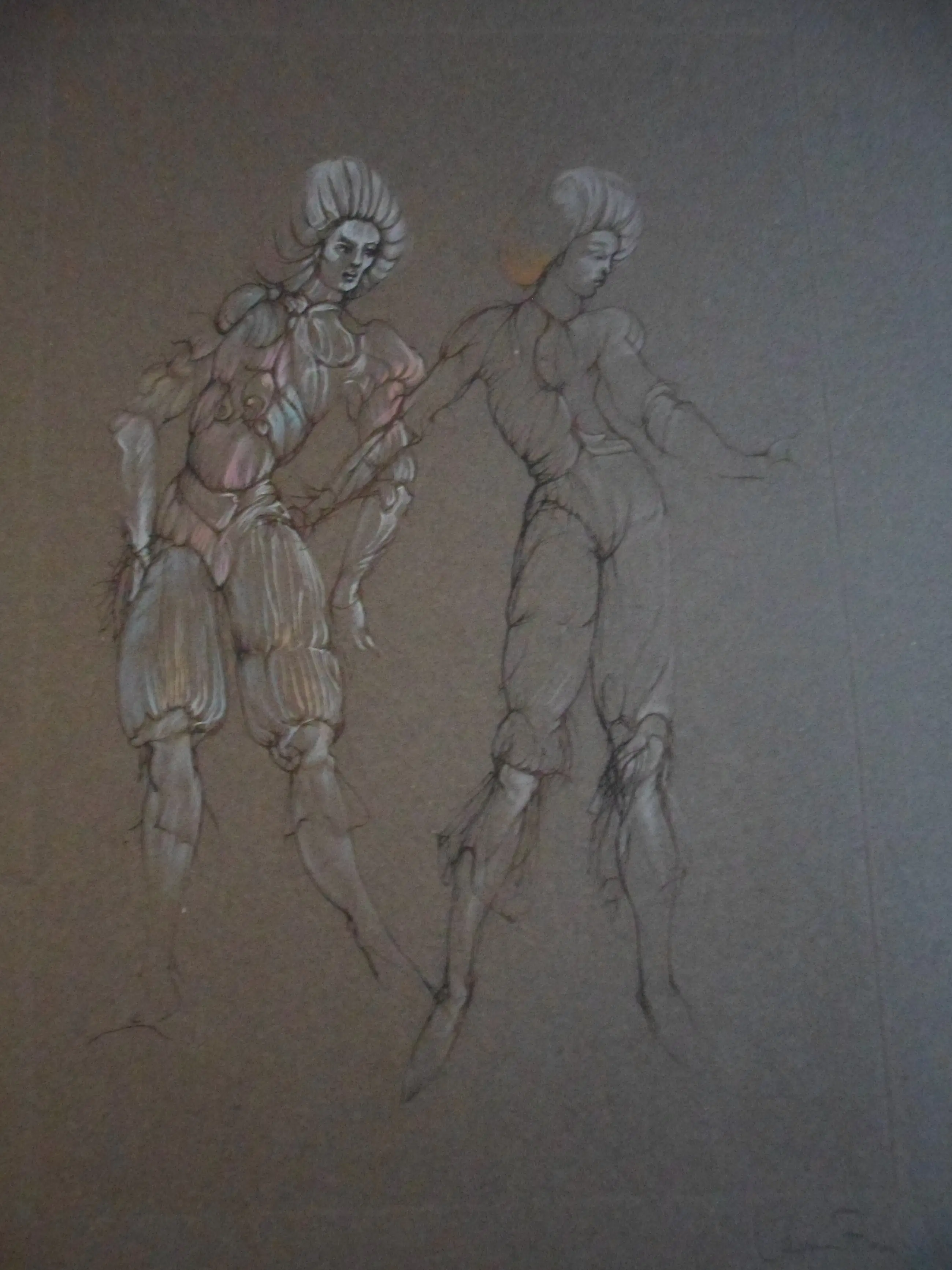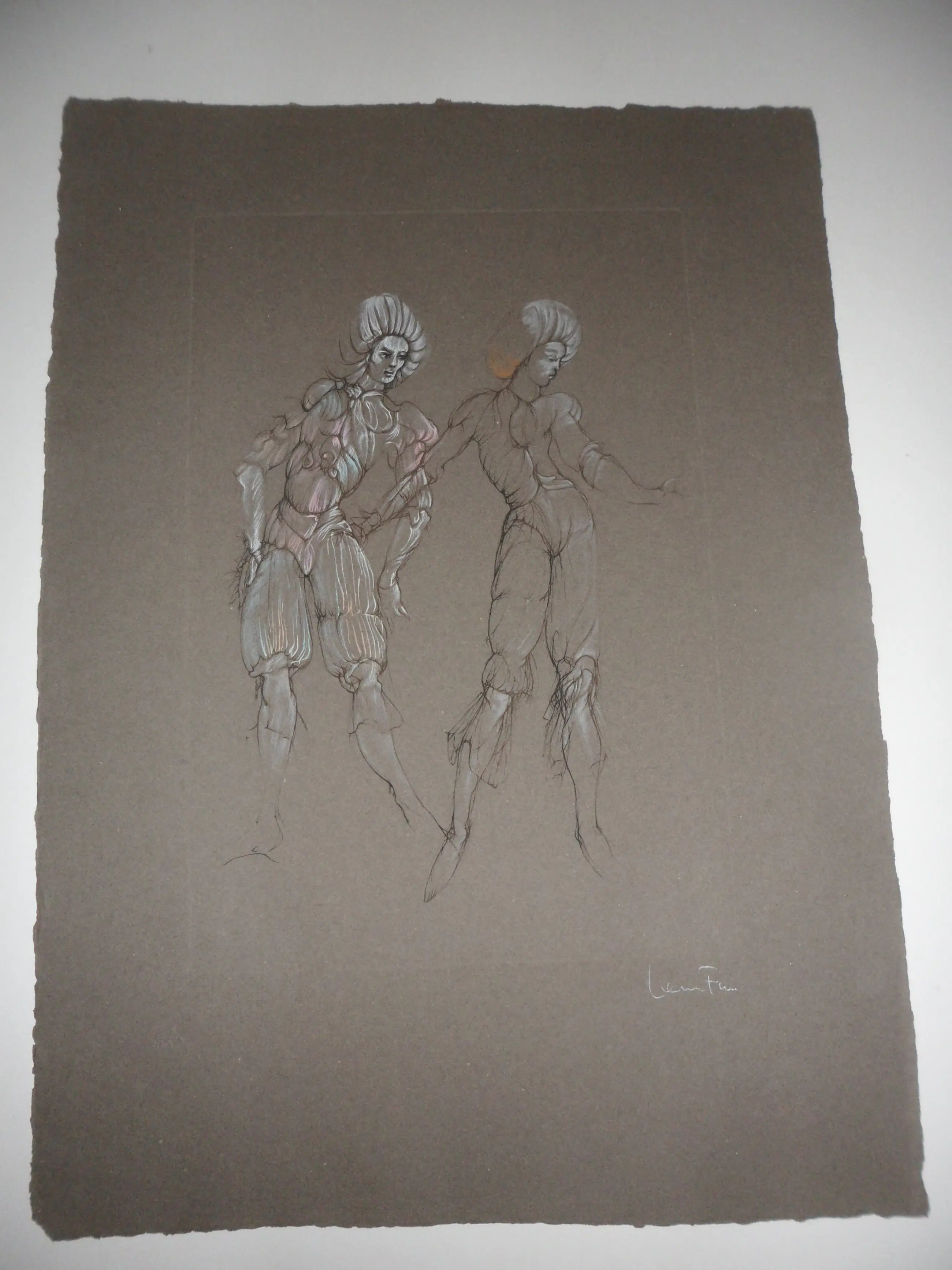 Léonor FINI: " Ets op getint velijnpapier Papiersoort: bruinkleurig., H. 67 x B. 49 cm.