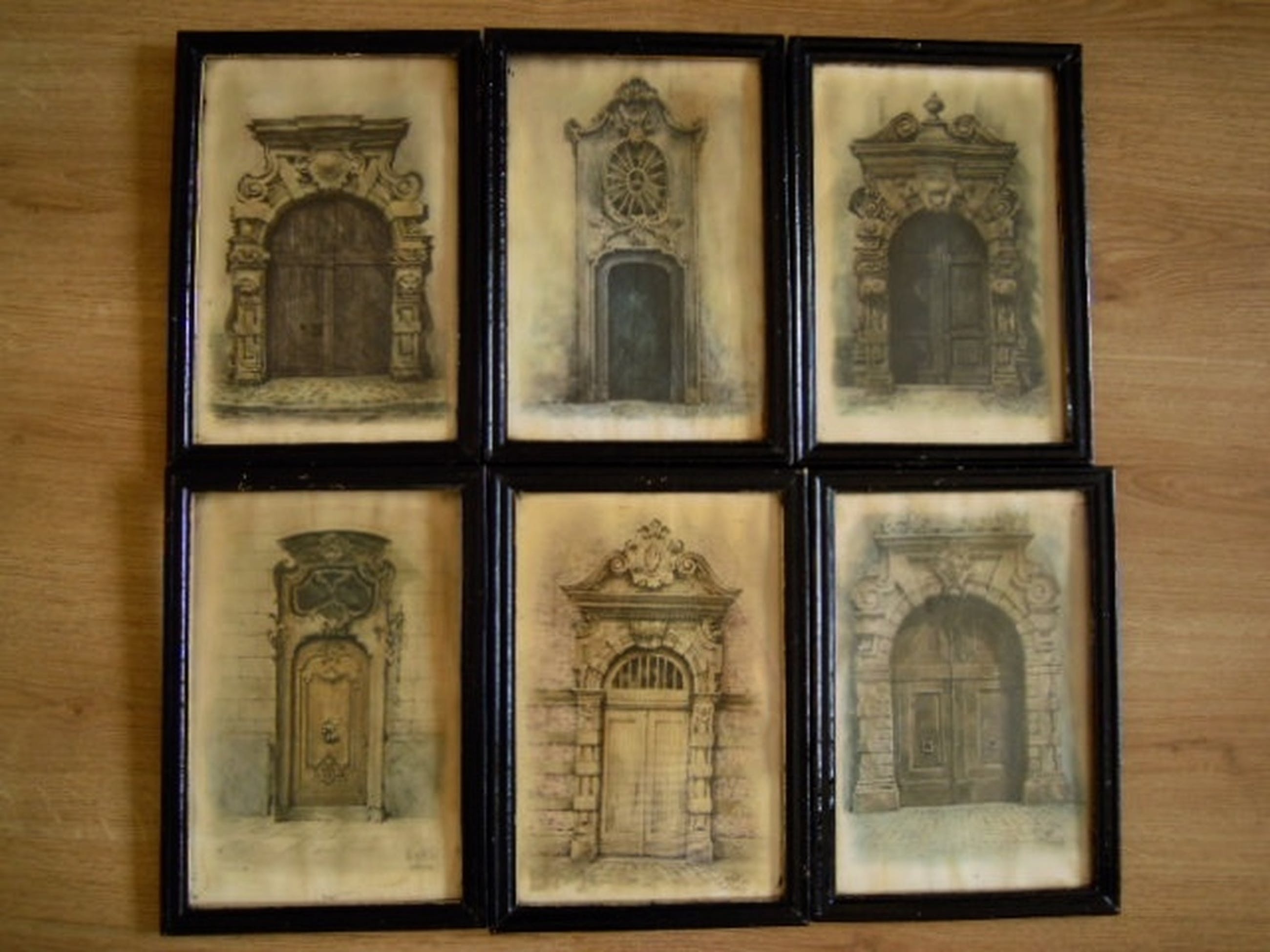 Het betreft 6 prachtige drukken in gelijke lijsten uit 1942 in mooie staat en alle gesigneerd.