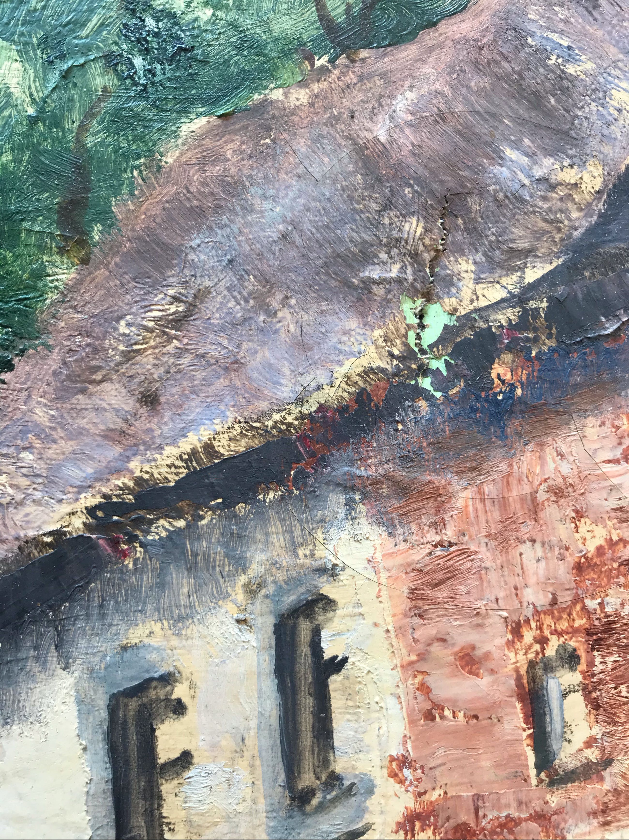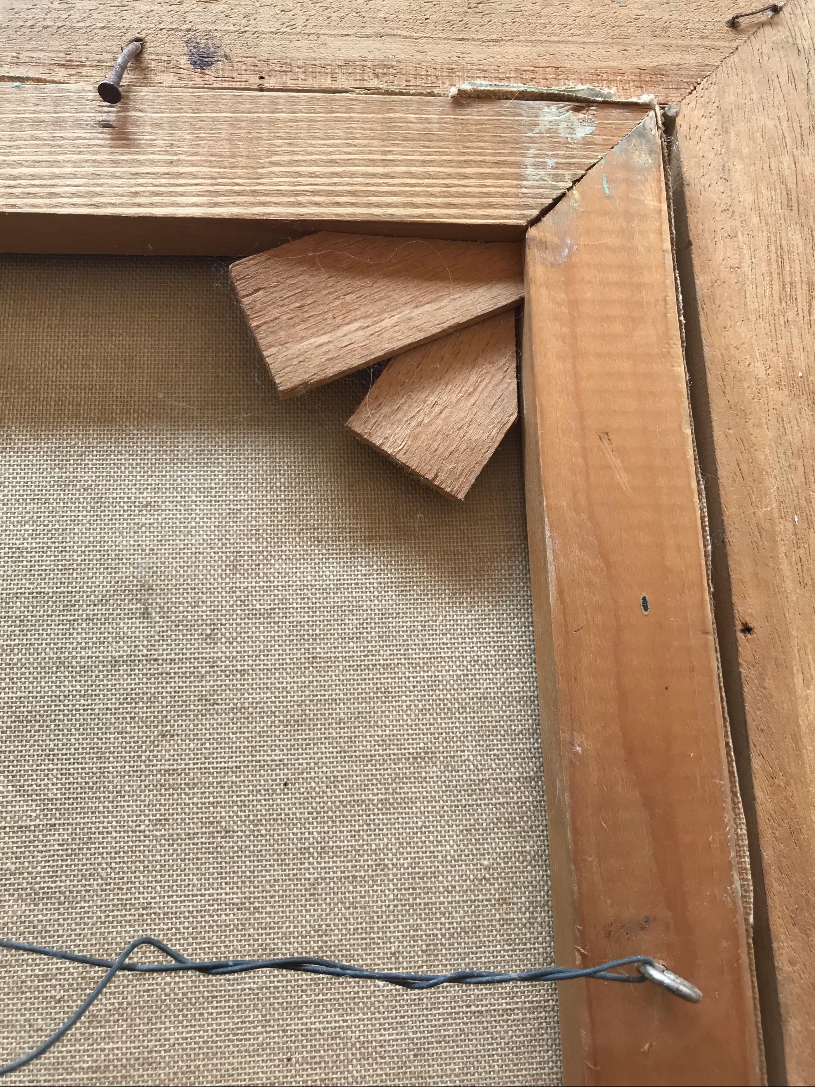Rechts bovenin zit een klein scheurtje in het doek (zie afbeelding)