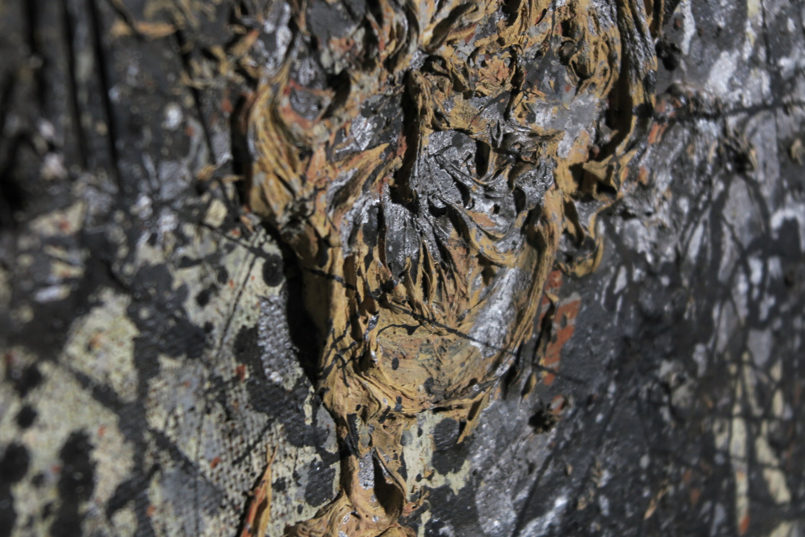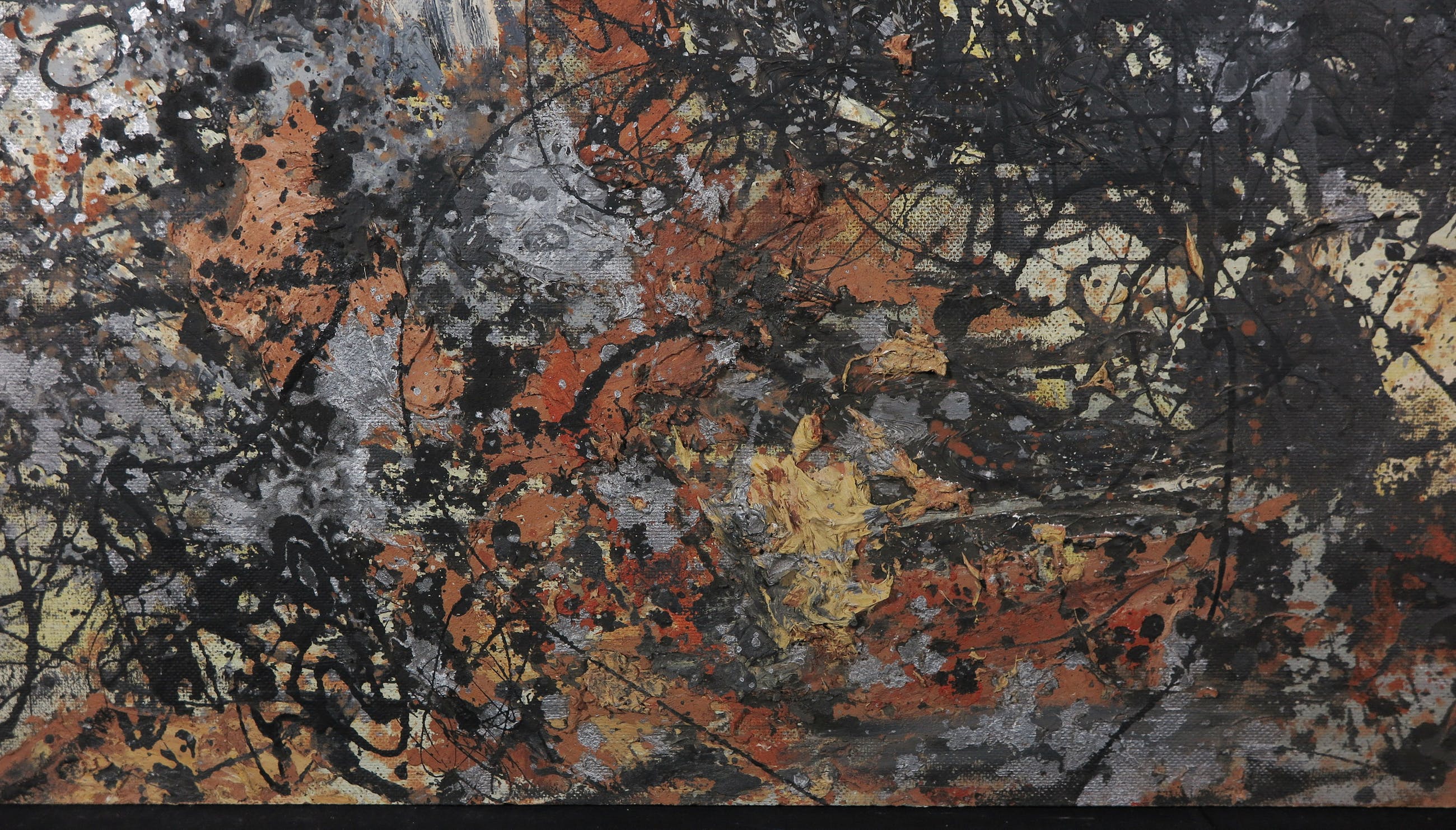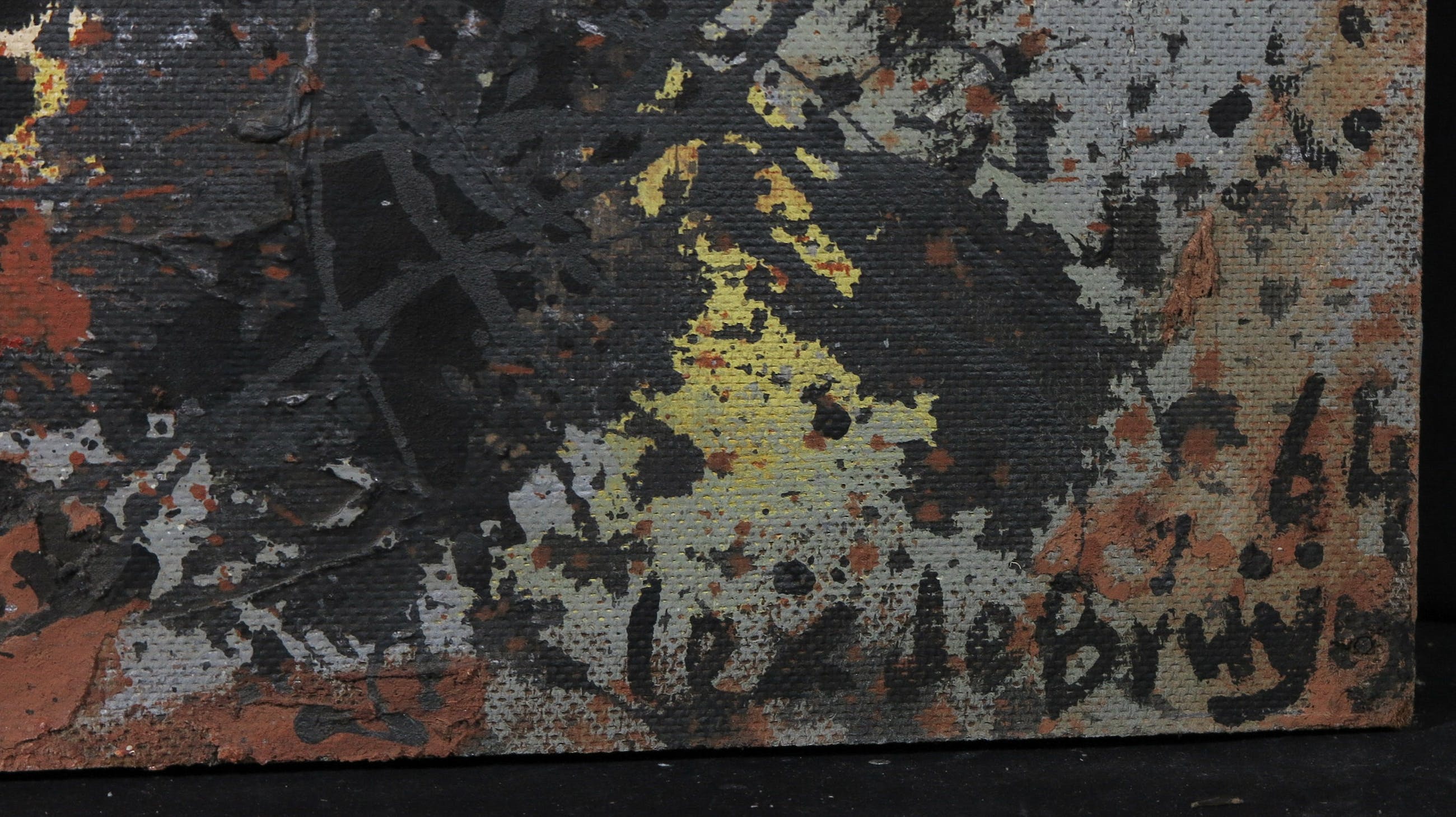 | Alleen de linker lat van de lijst is nog aanwezig. Het werk is wat stoffig / vuil. | |