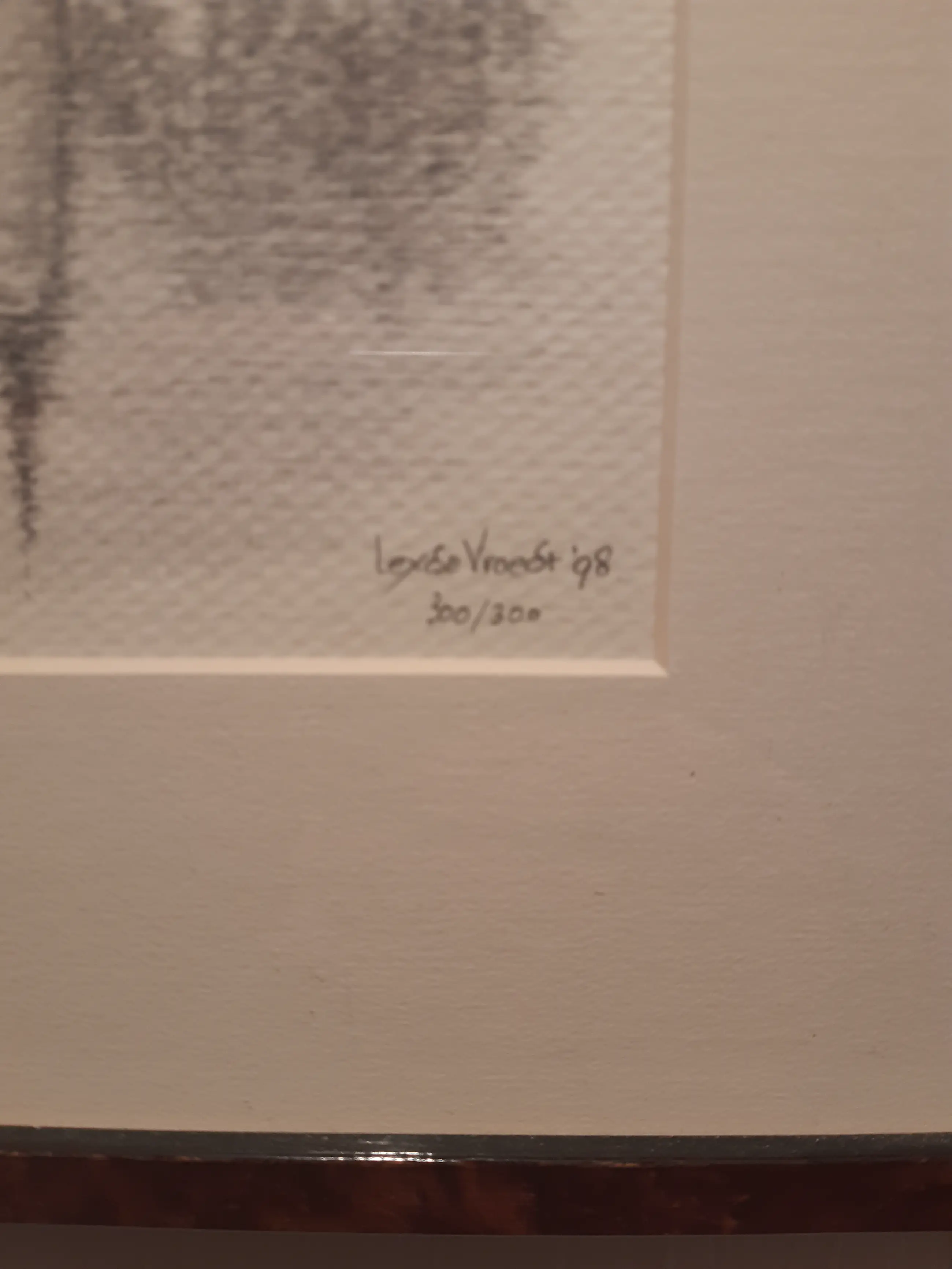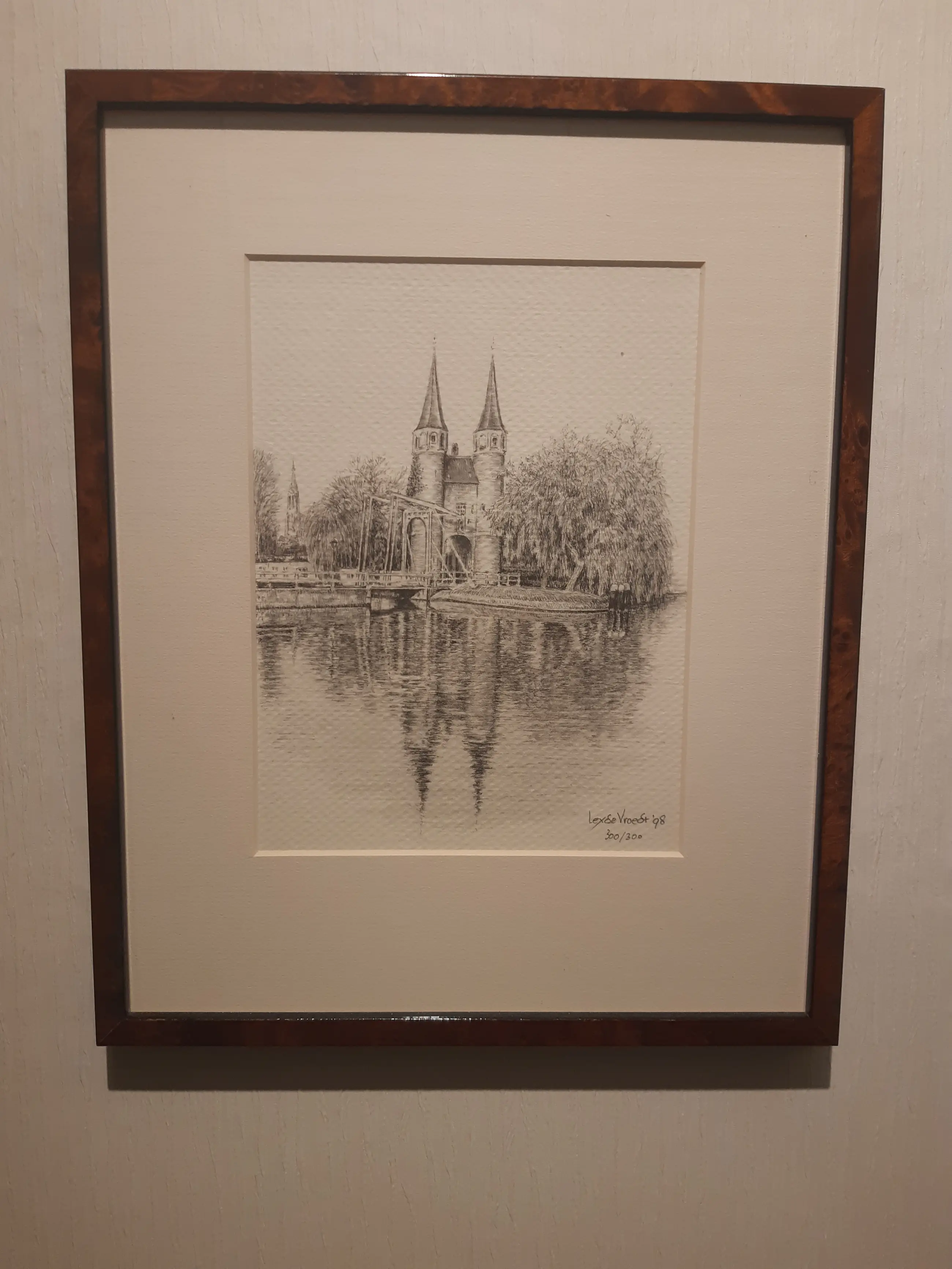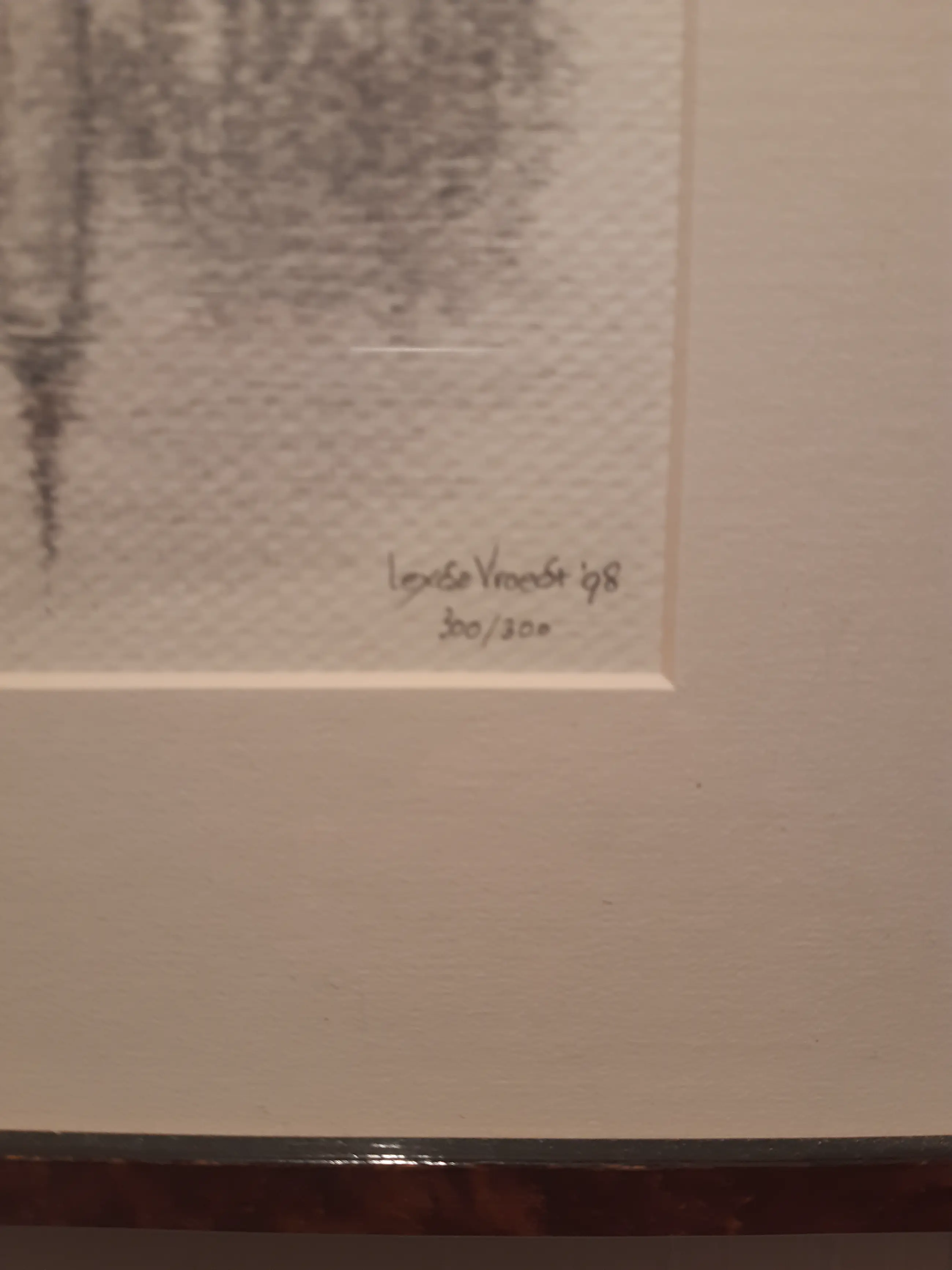 Geweldig mooie druk nummer 300/300. Nog met treurwilleg aan de rechter zijde en een prachtige weerspiegeling in het water.