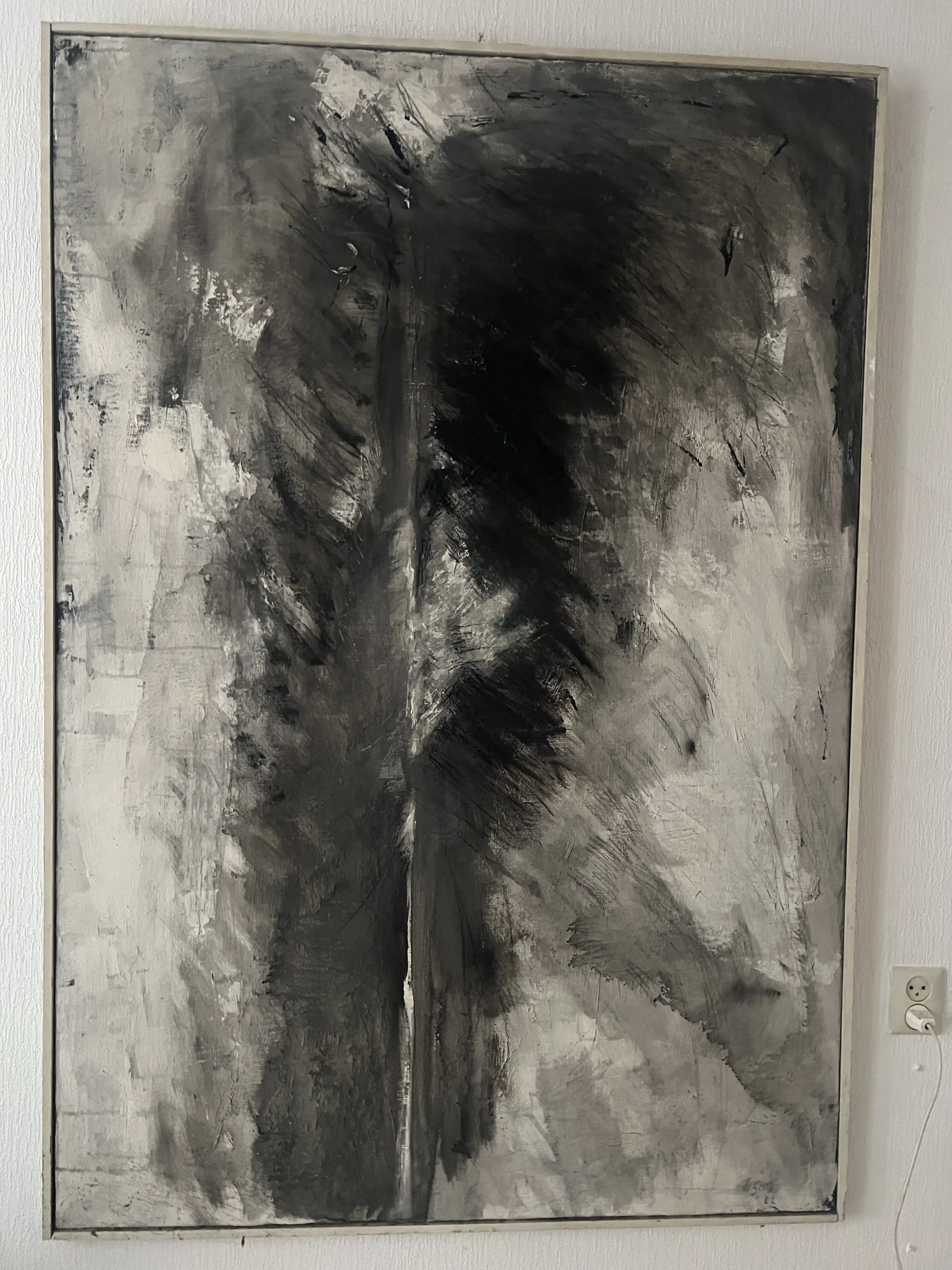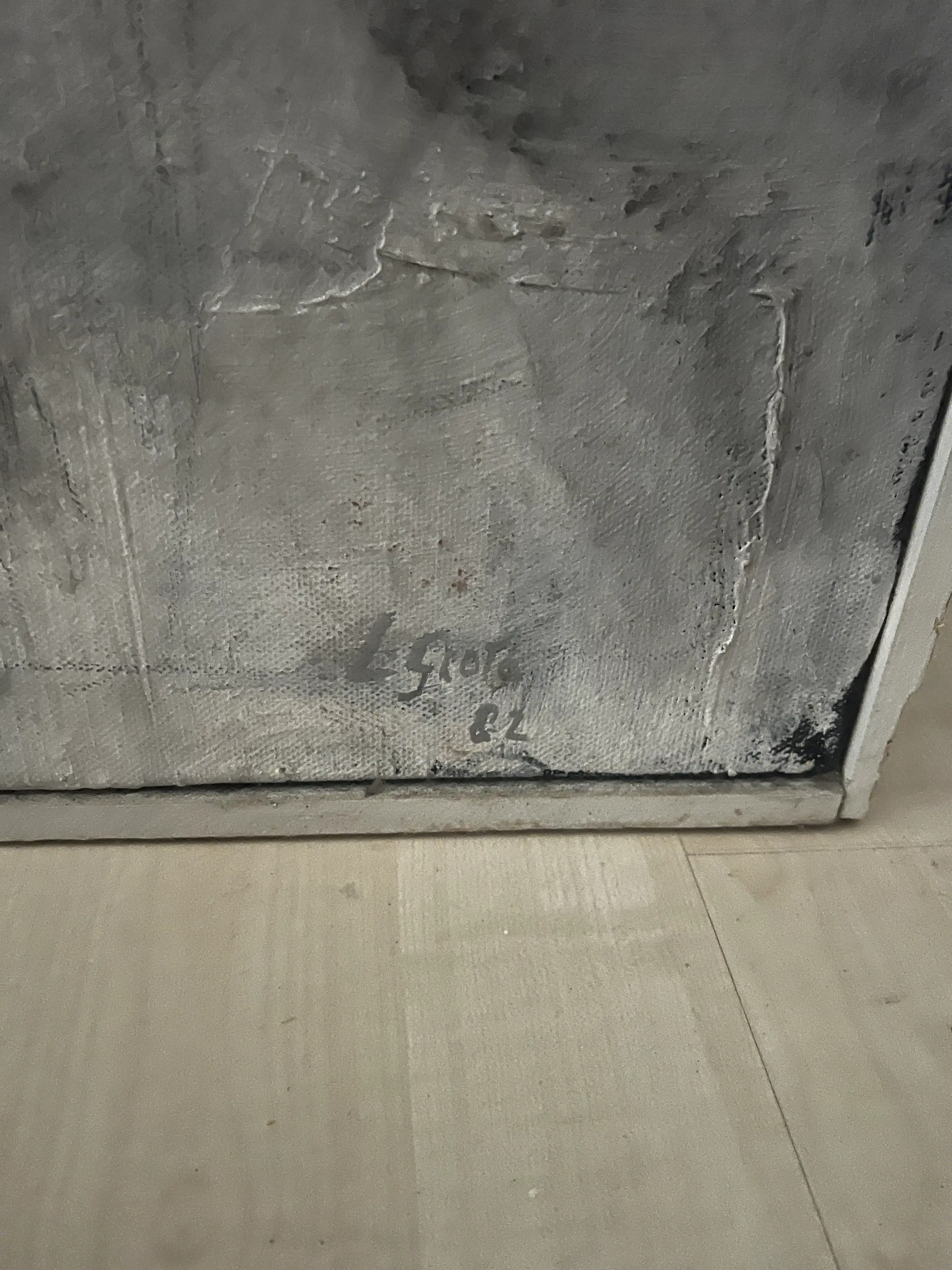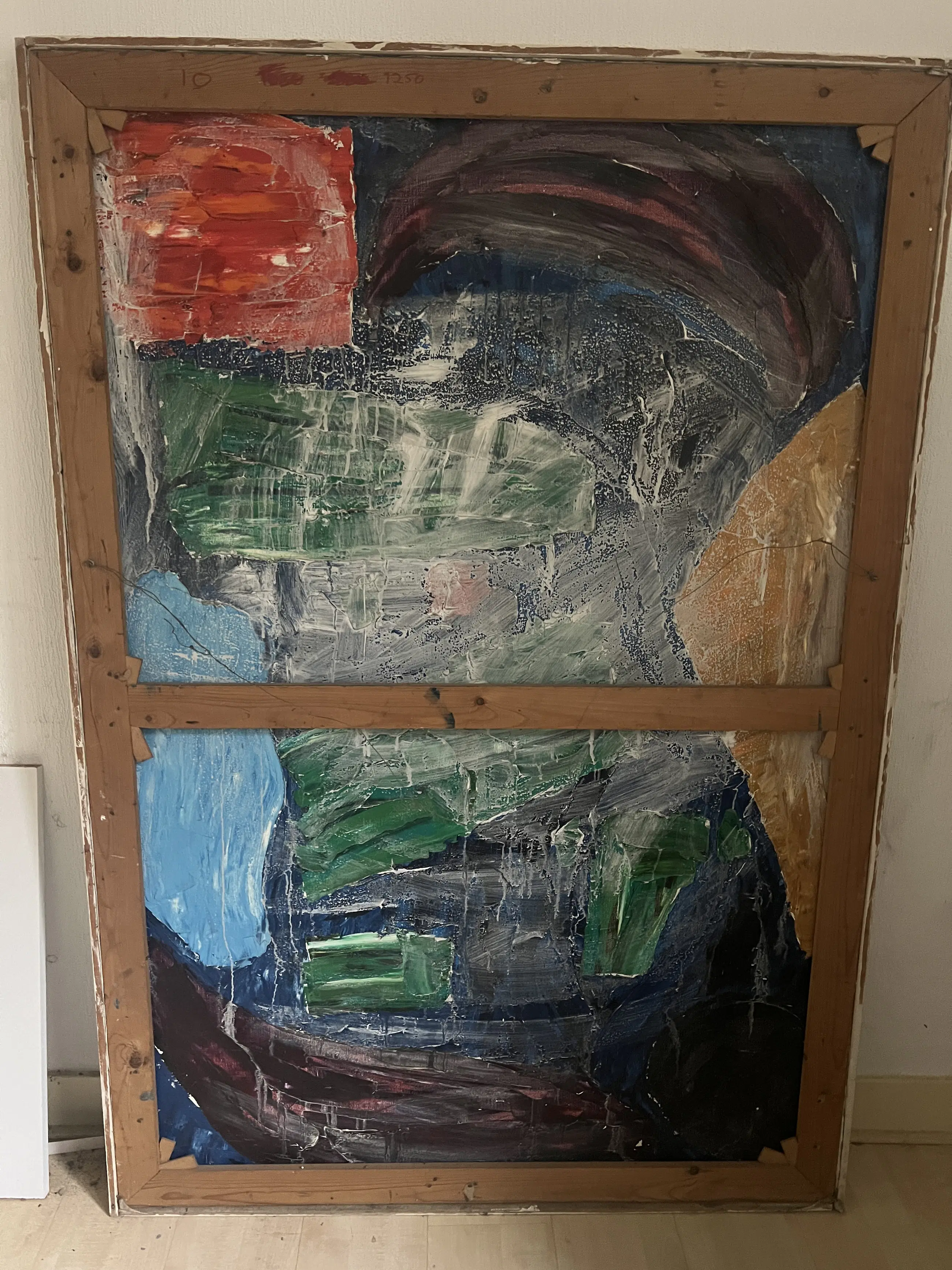 Het werk komt uit 1982 en heeft altijd in de woonkamer van mijn vader gehangen. Het is dus een oud werk, maar het werk is in goede staat. De lijst is in redelijke staat.