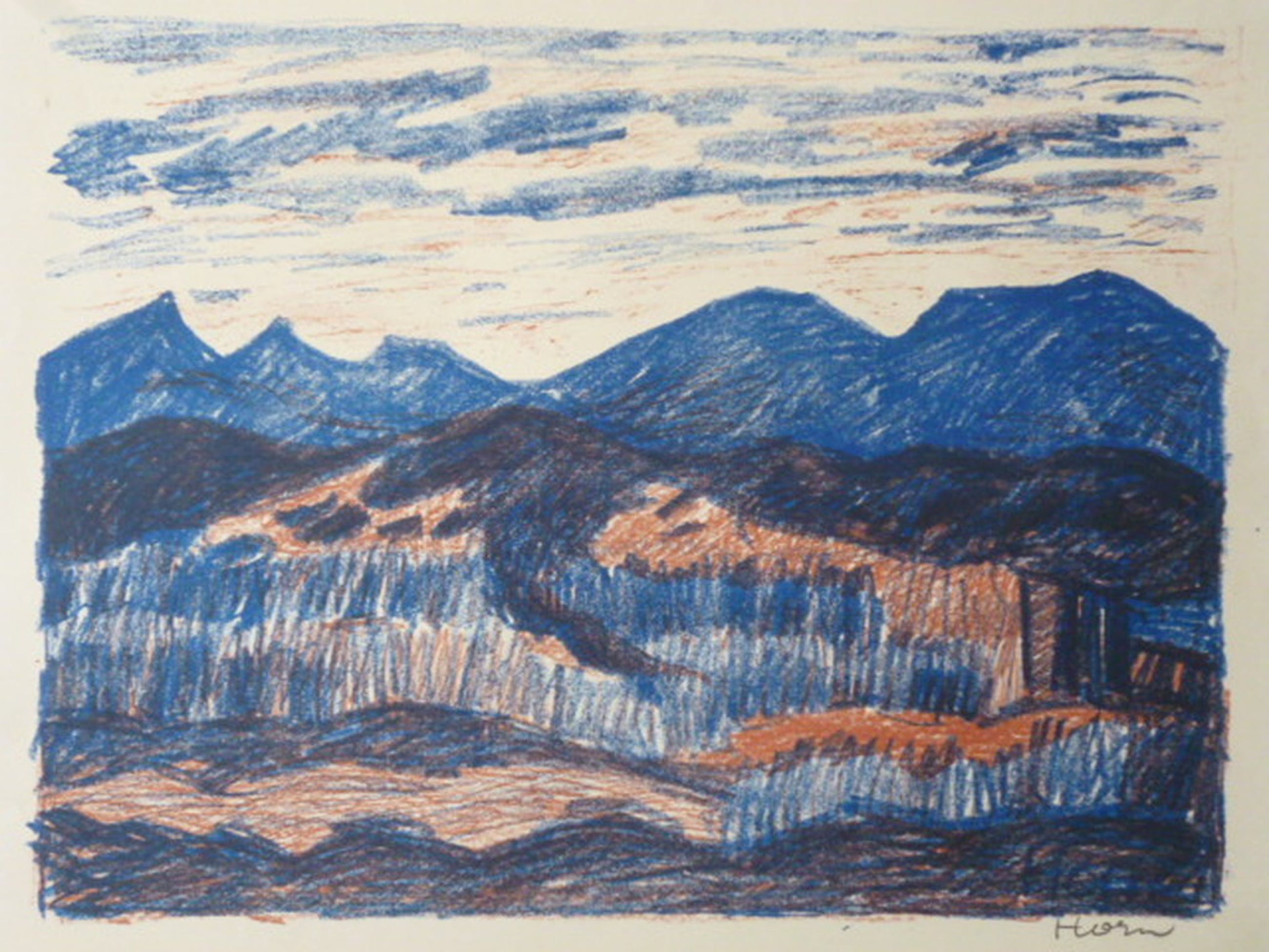 Kleurenlitho, potlood gesigneerd rechtsonder.