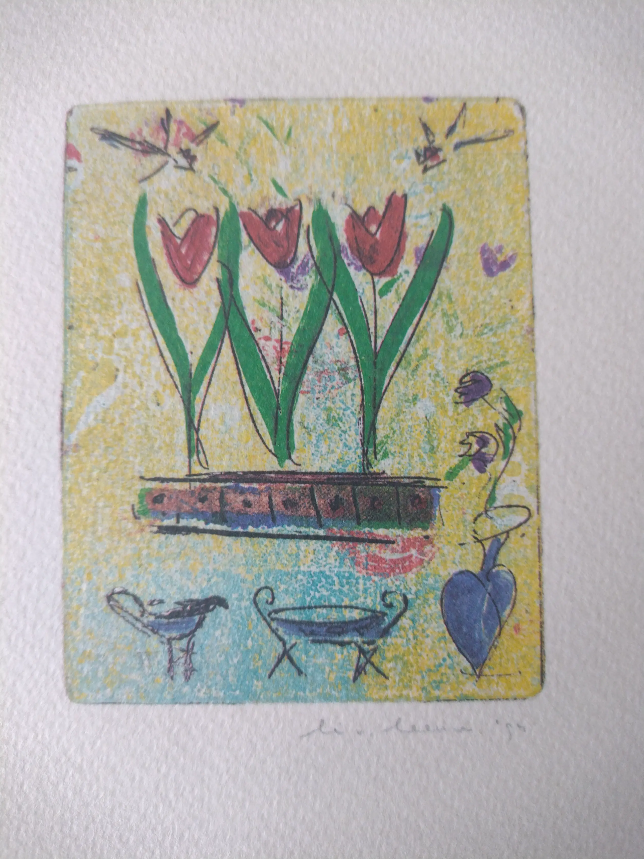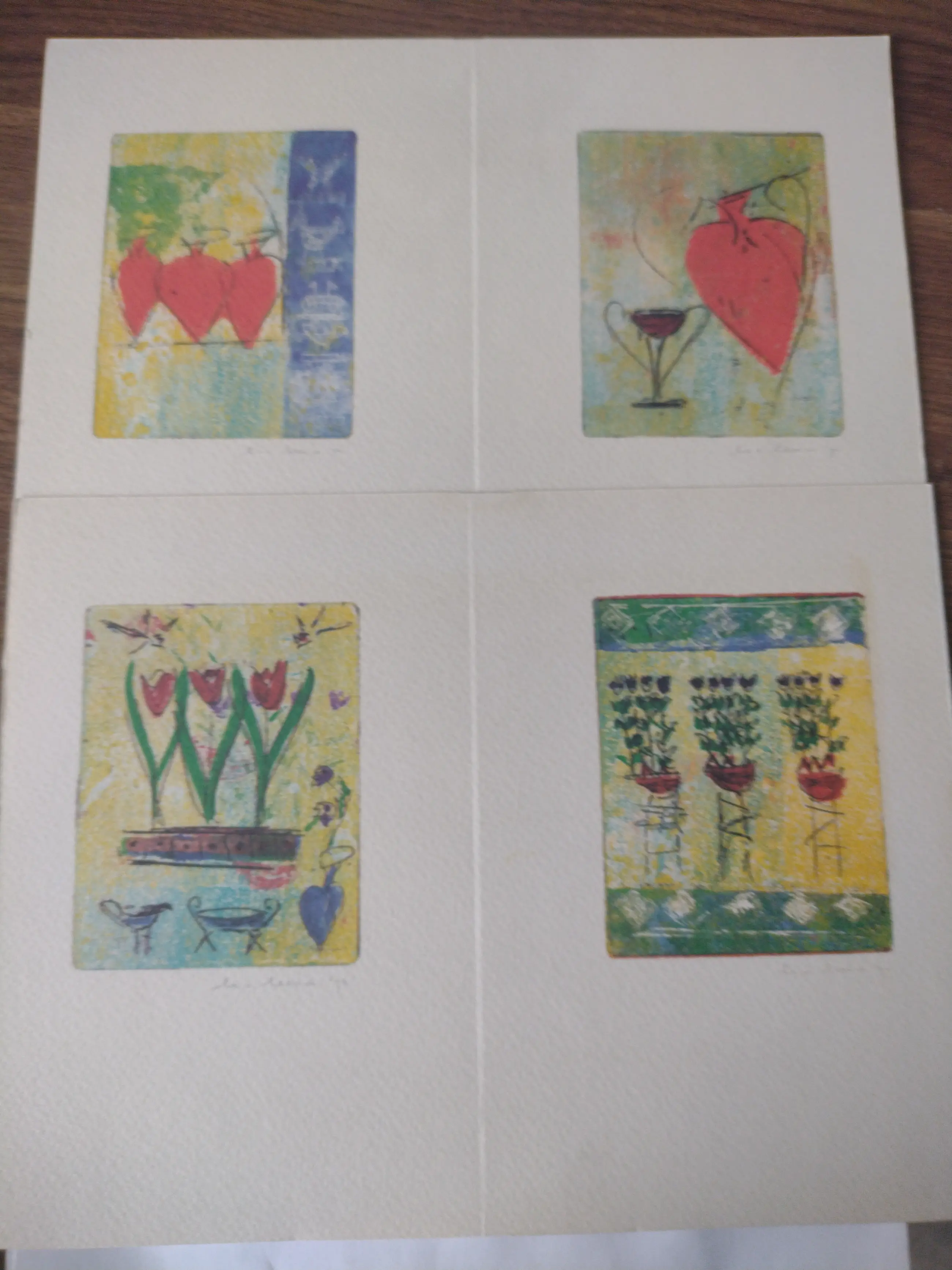 Leuke/ mooie kleine etsjes 4 stuks van Lia van Leeuwen.(2 per vel )gesigneerrd. Sommige papier iets verkleurd, zie foto's. Etsjes zelf niet verkleurd.