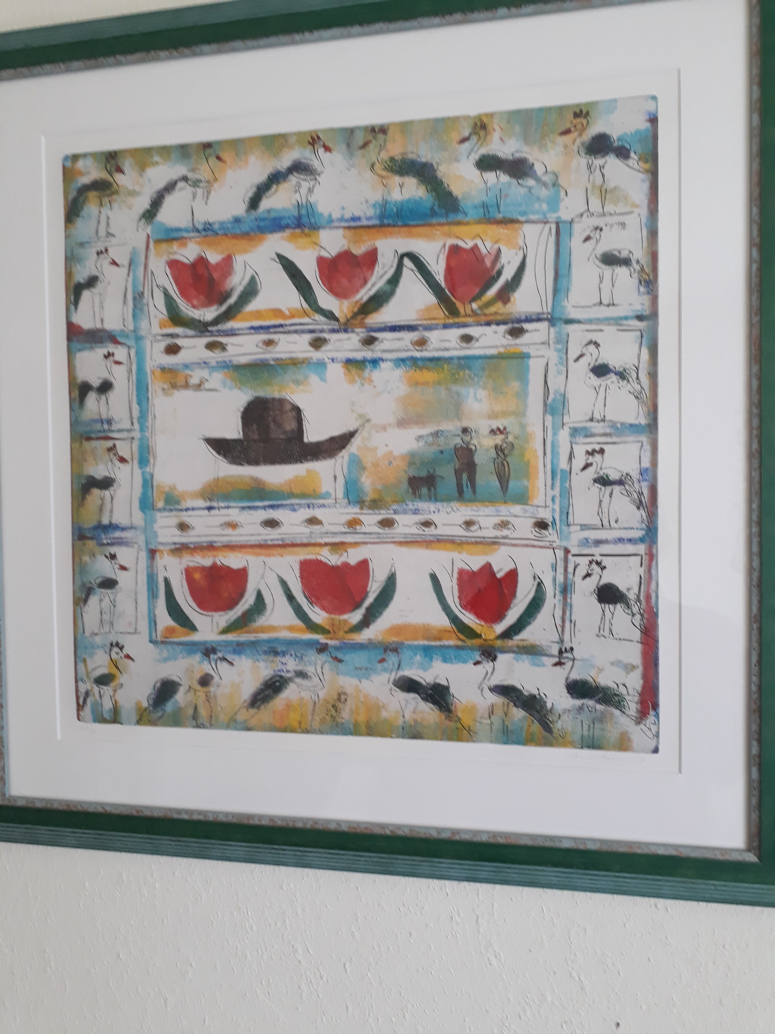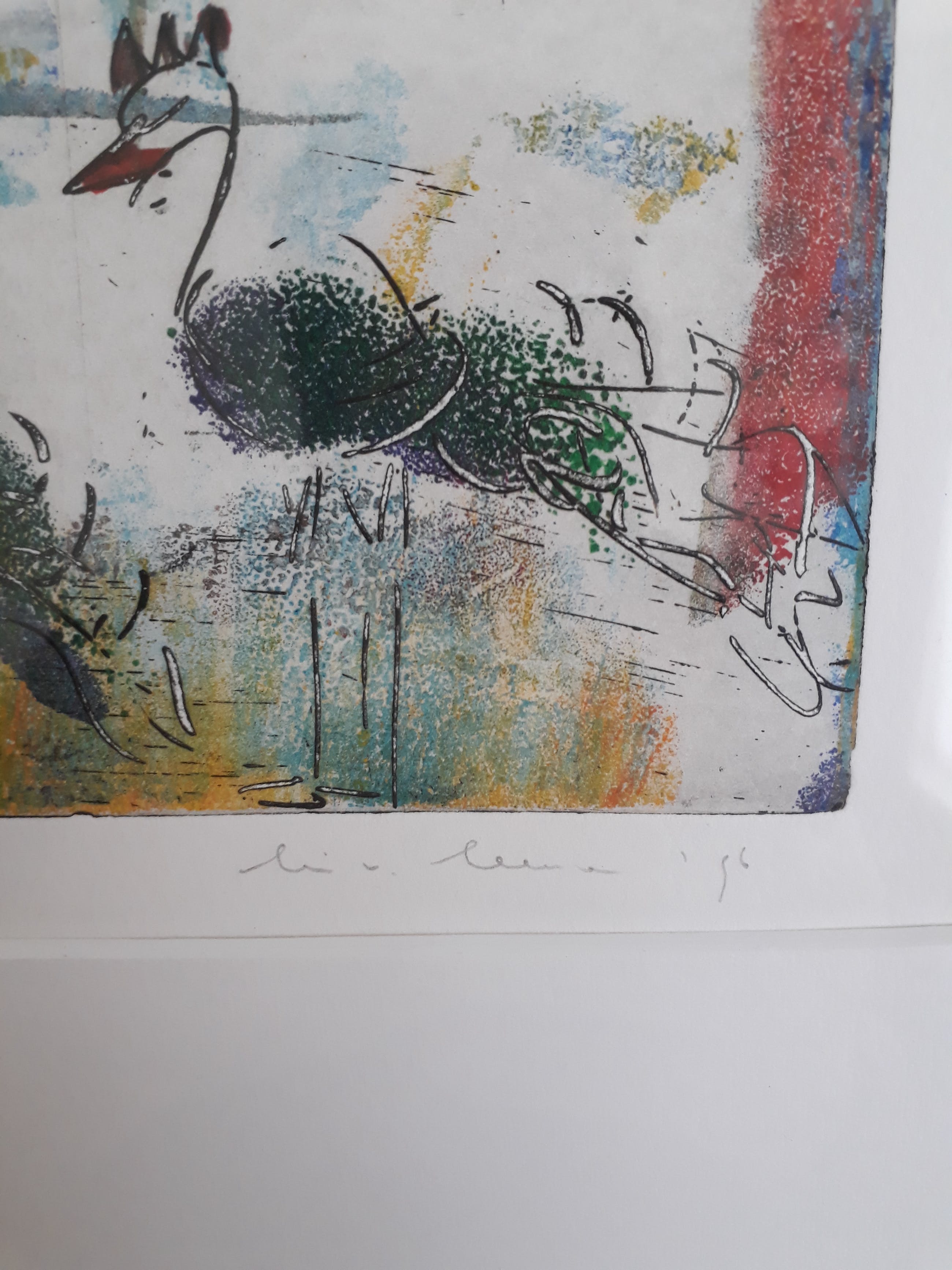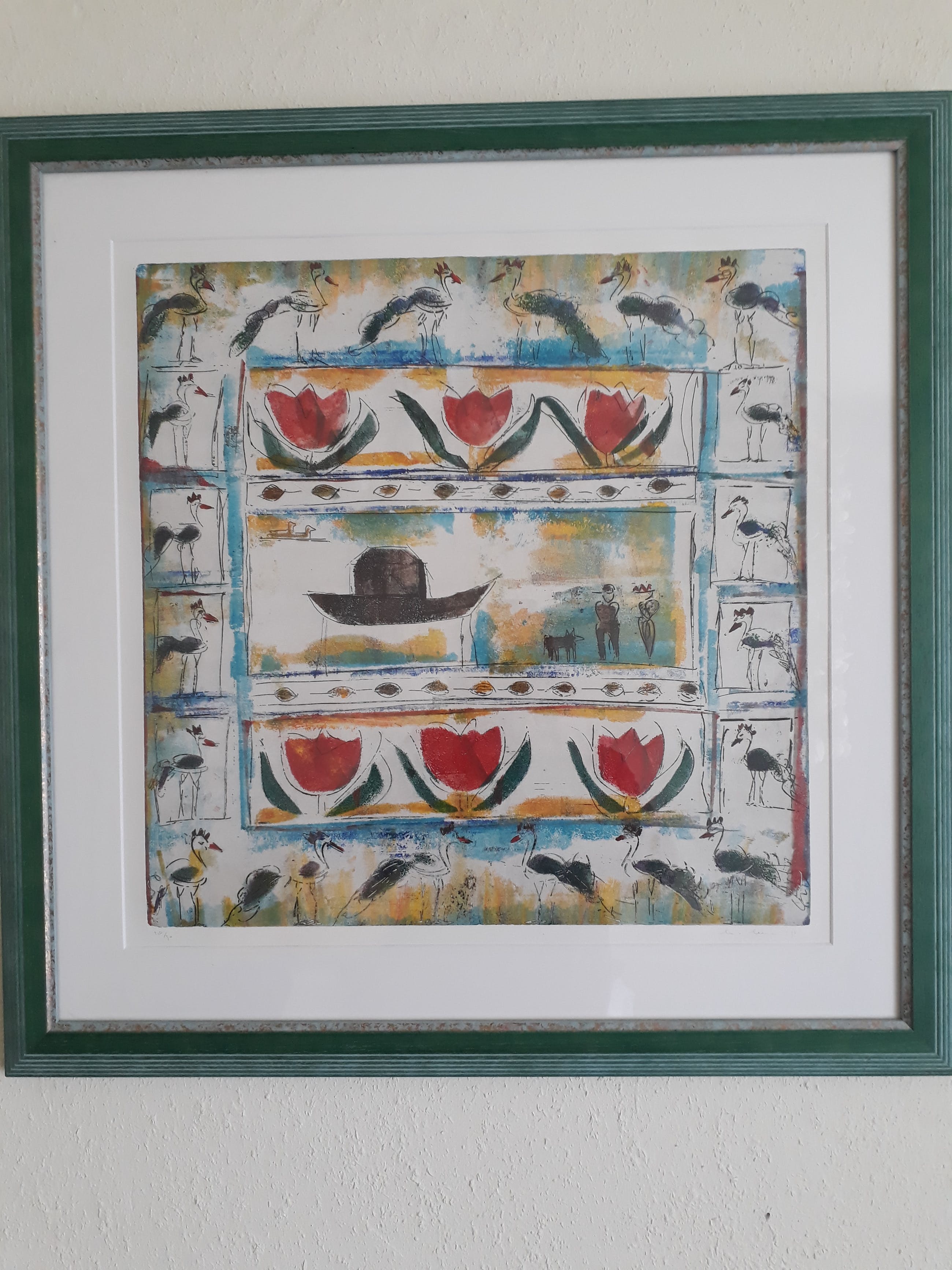 Mooie kleurrijke zeefdruk van lia van leeuwen. Mooi ingelijst als nieuw Oplagenummer: 28/50 Uiteraard handgesigneerd gedateerd en genummerd.