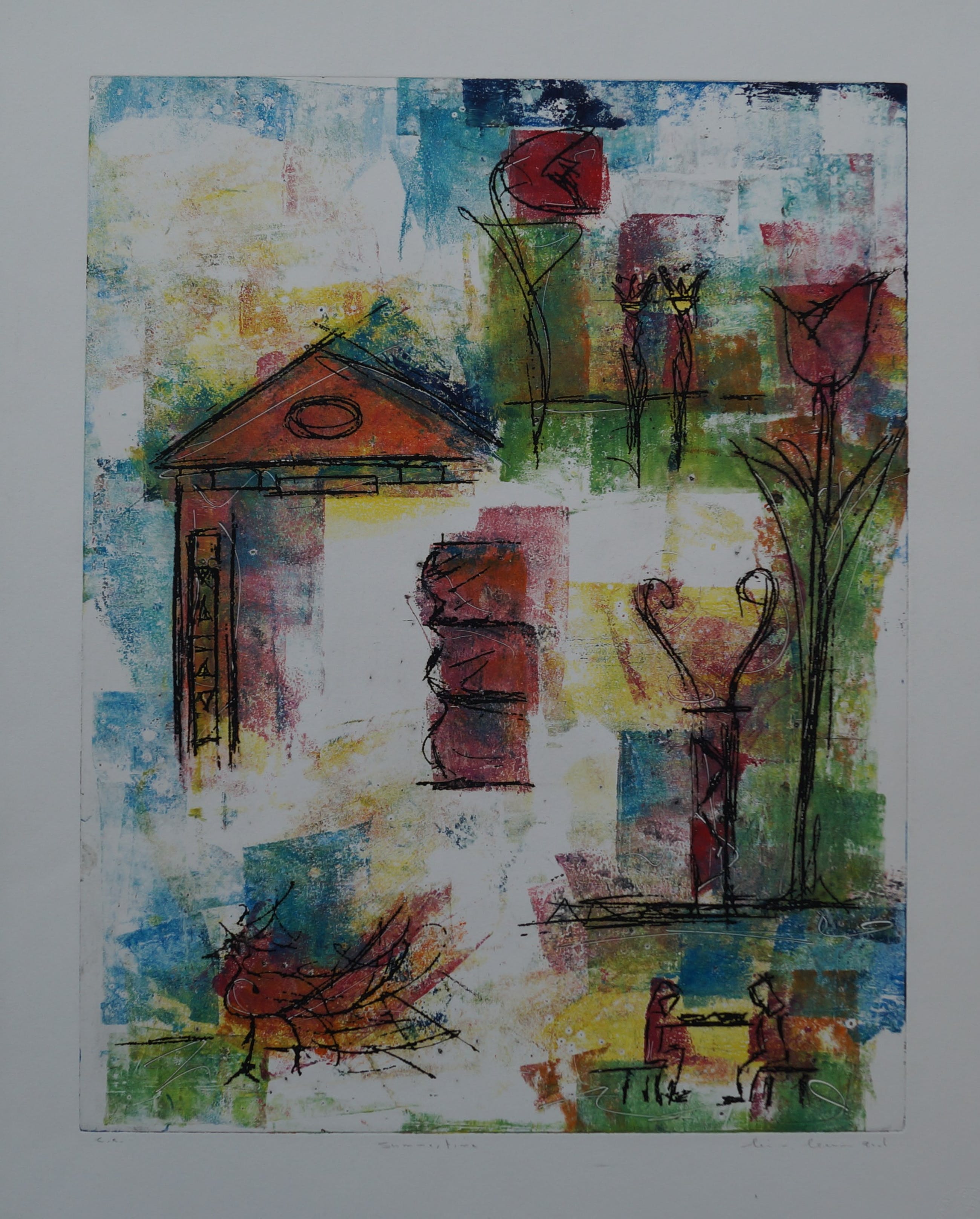 Mooie ets van Lia van Leeuwen Titel: Summertime Oplage: e.a. Afmeting afbeelding: 47x37 cm. (hxb) In zeer goede conditie