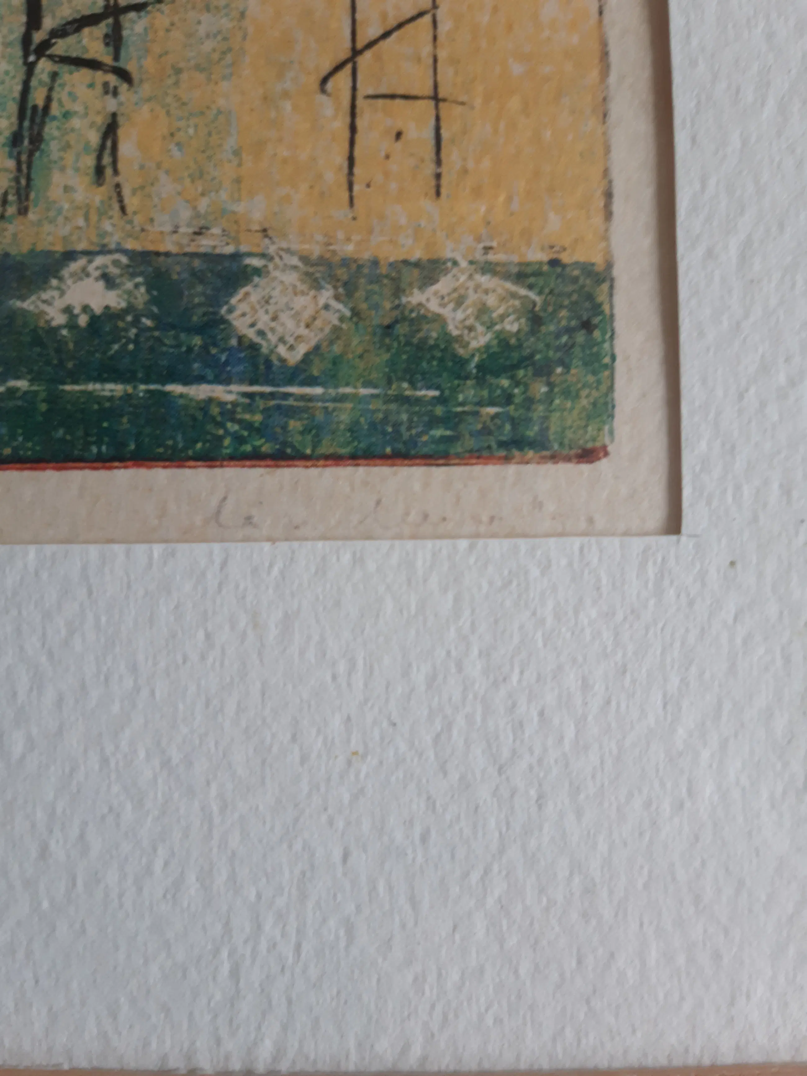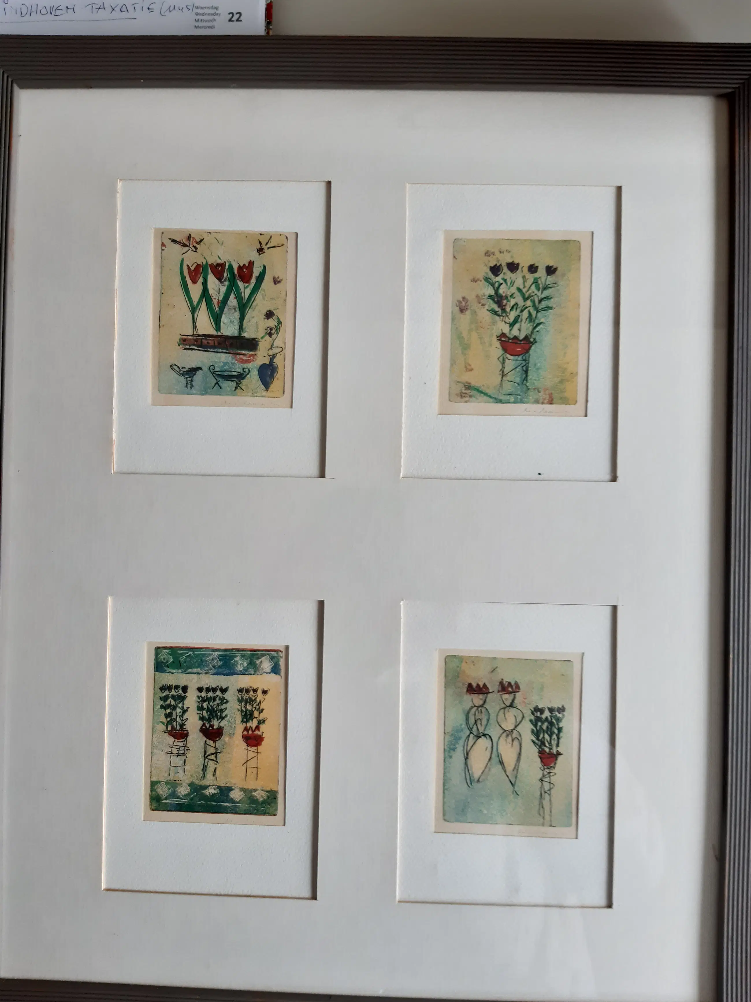 Lijst met vier kleine etsjes (8 cm x 10 cm) , allemaal handgesigneerd, in passe-partout.
