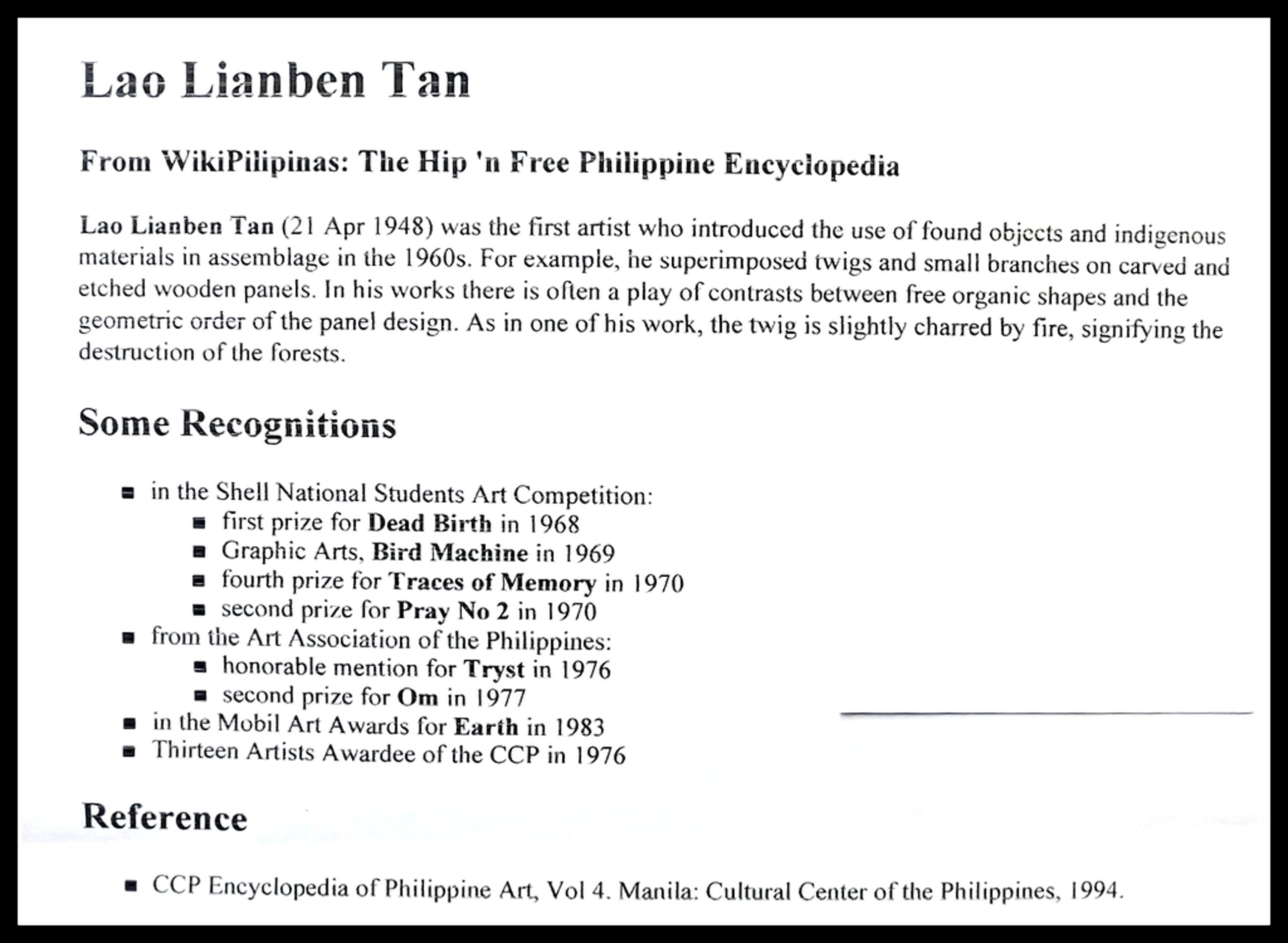 Van deze Philipijnse kunstenaar wordt zelden gesigneerd werk aangeboden (zie o.a. Christies, Arprice en Artnet)