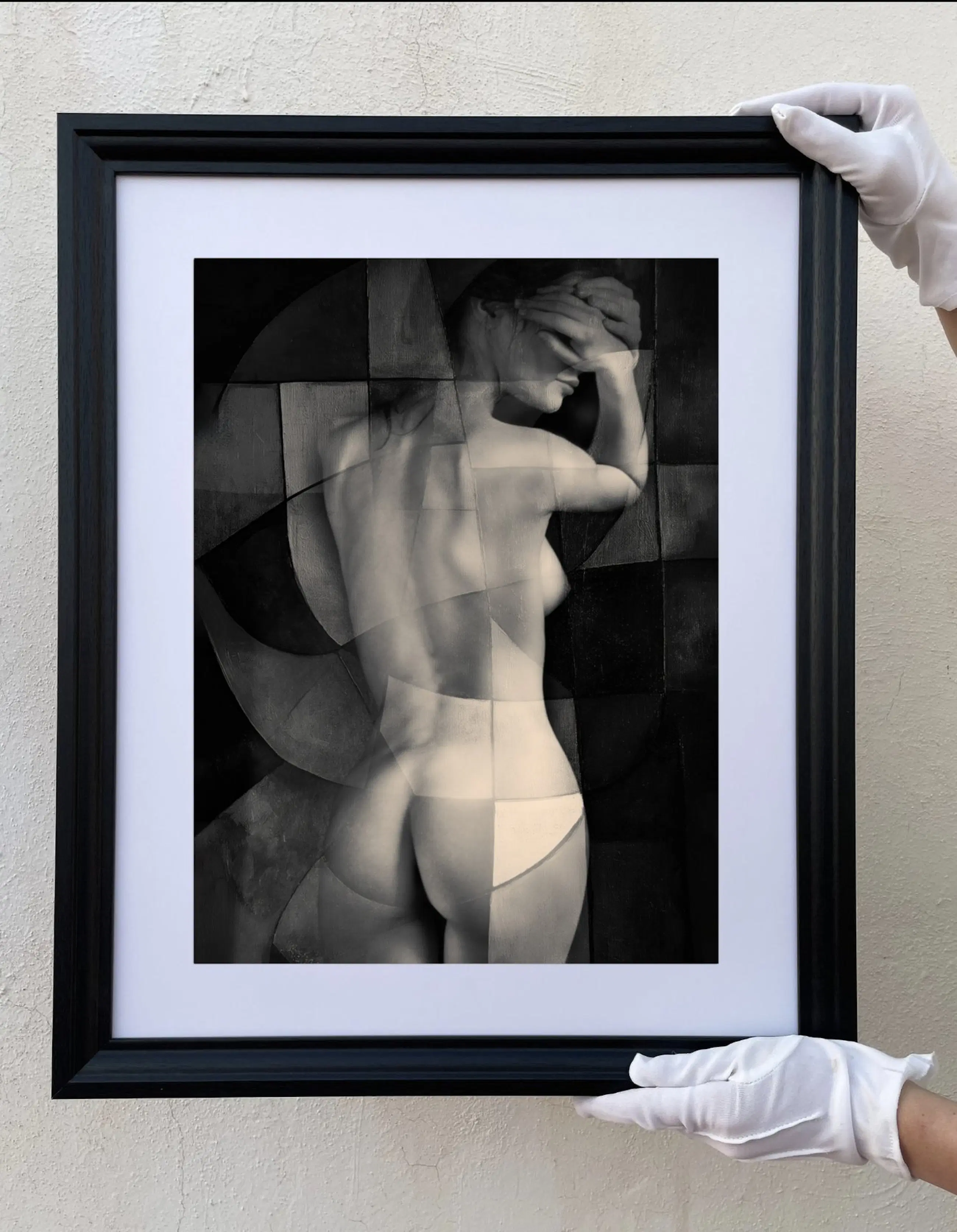 Lijstmaat: 40x50 cm, zwart + wit passe-partout