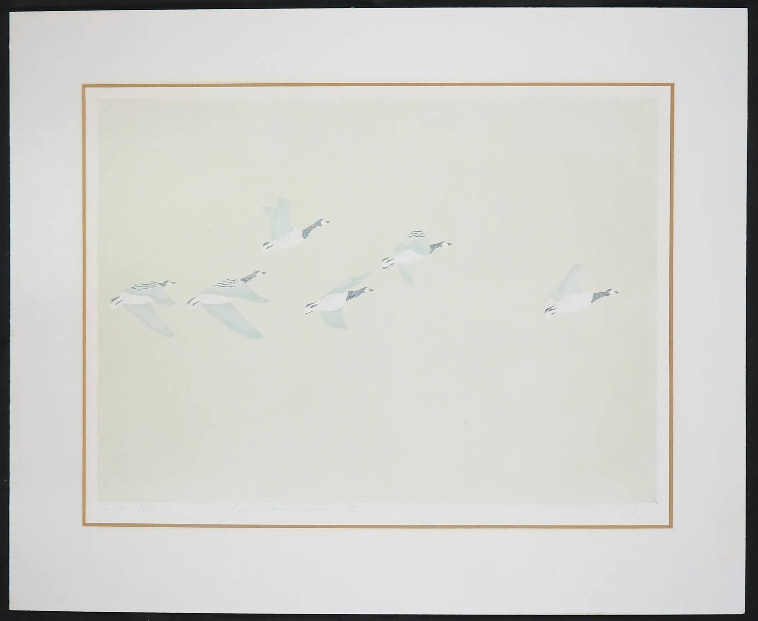 | Passe-partout enigszins vergeeld. Klein bruin vlekje op de middelste vogel in de compositie. | |||||||||||