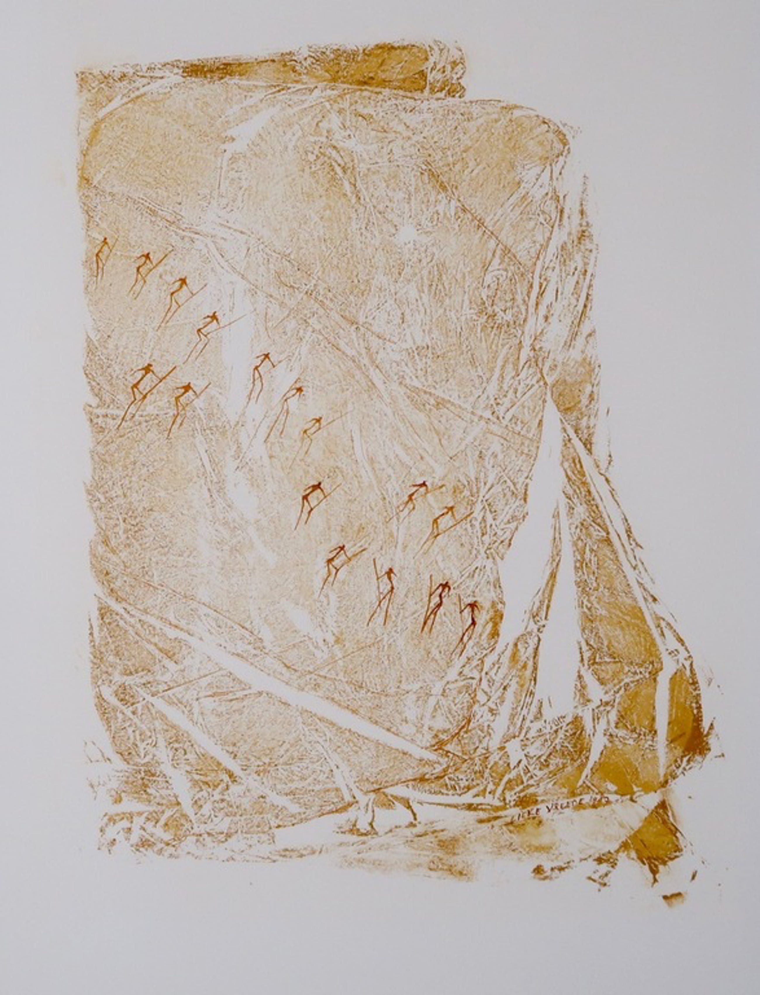 Materiaal: handbewerkte monotype met aquarel/inkt op papier