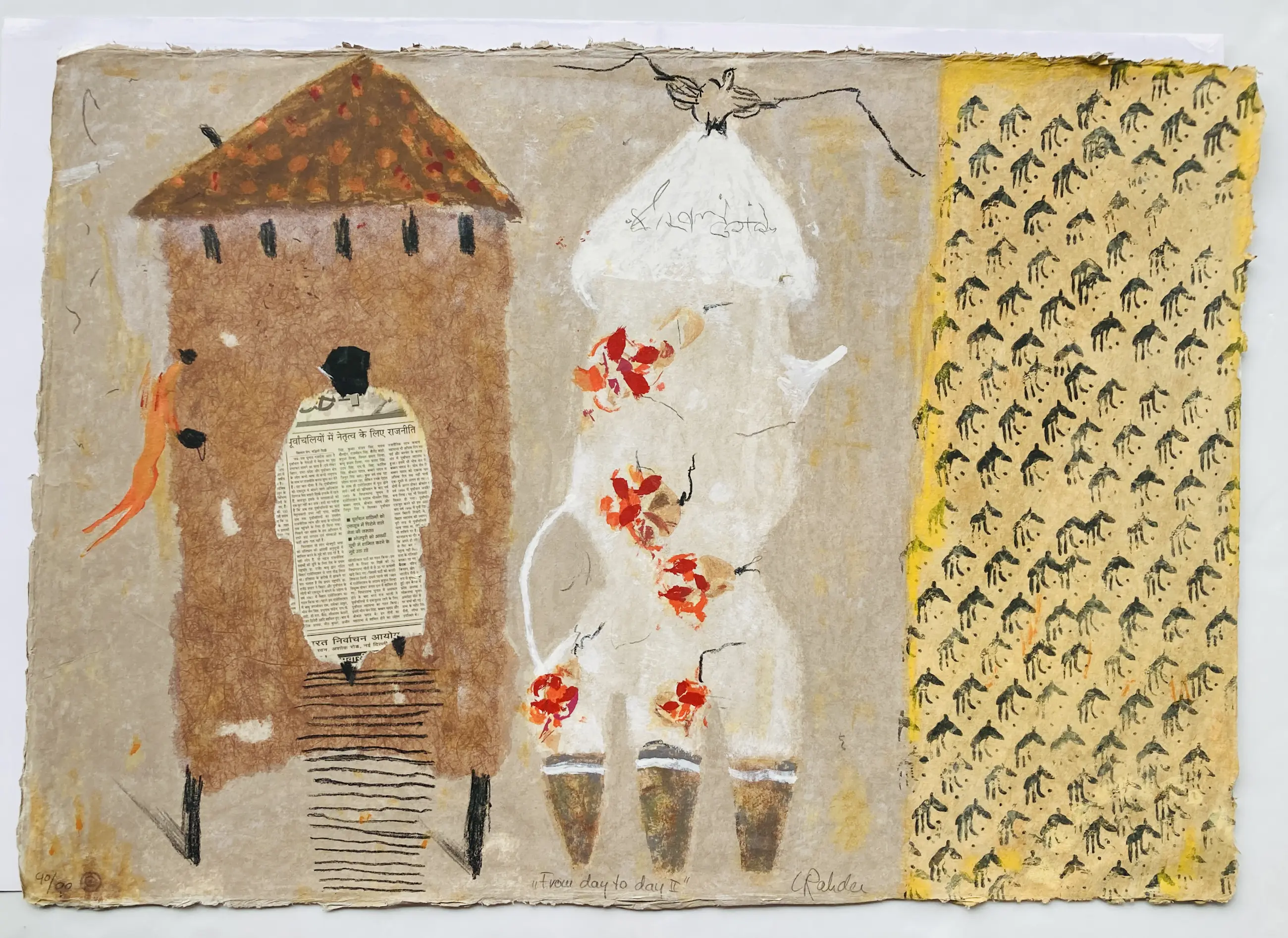 Een fraaie zeefdruk van de kunstenaar Liesbeth Rahder. Het werk verkeert in uitstekende conditie en is handgesigneerd door de kunstenaar. De zeefdruk is gemaakt op heel mooi geschept papier met een prachtige rafel rand.