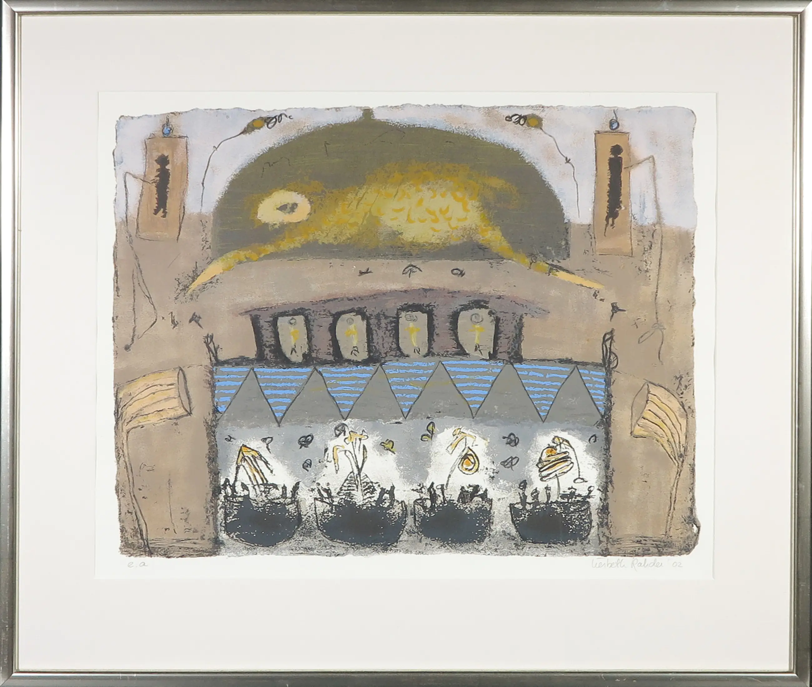 Ingelijste zeefdruk door Liesbeth Rahder.