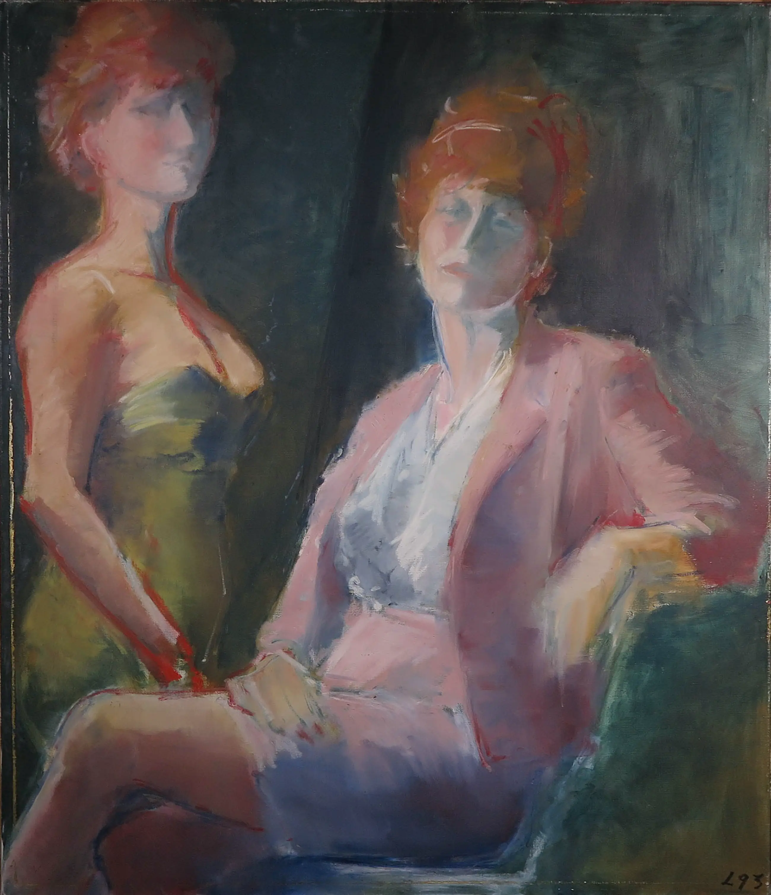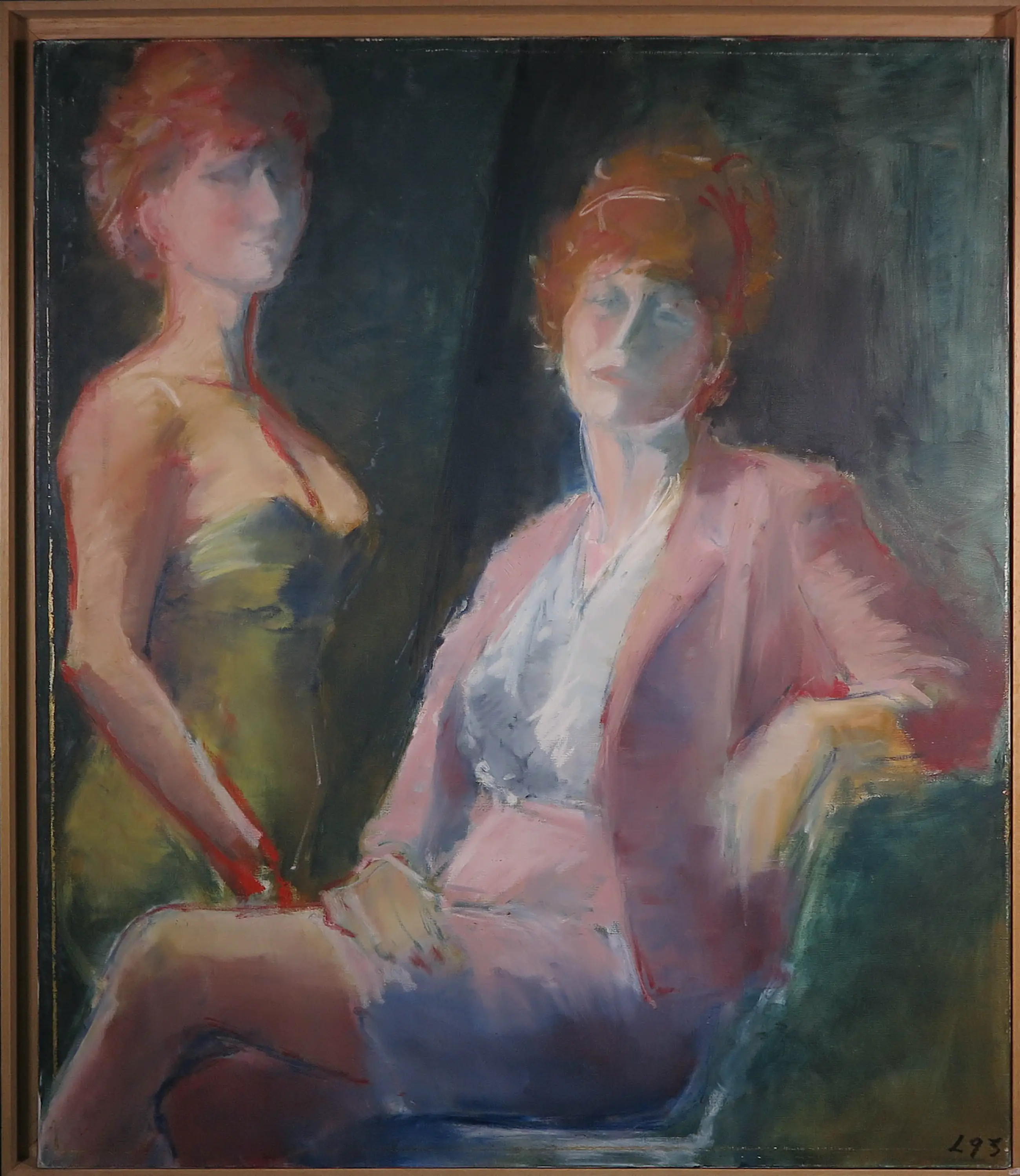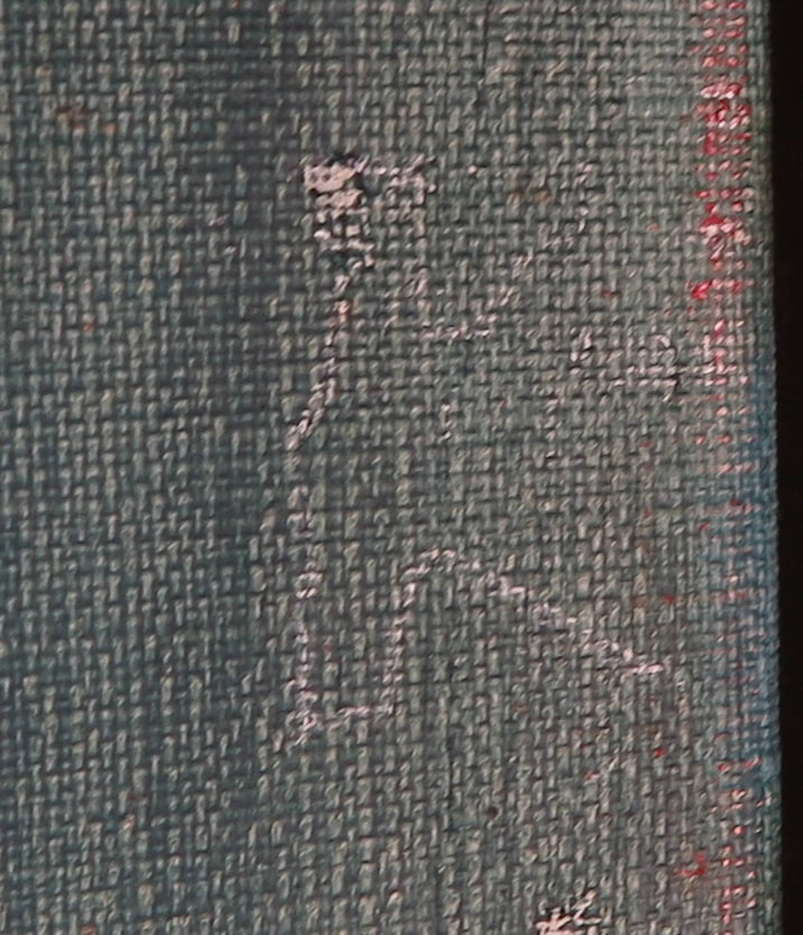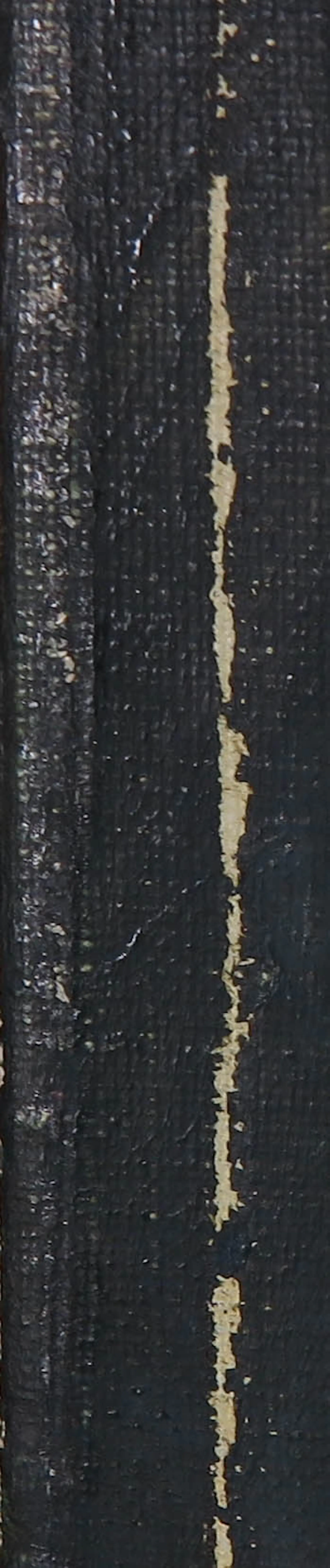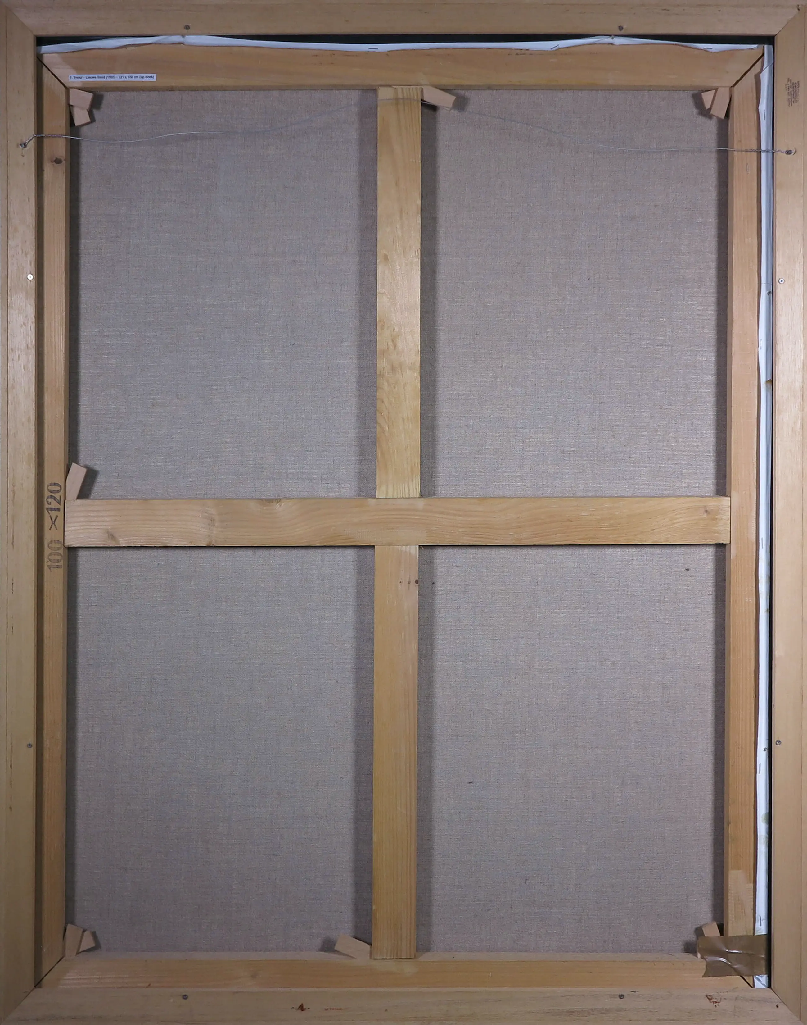 Wat lichte slijtagesporen en krasjes langs de randen van het doek. Het werk zit vrij los in de lijst. Deze dient opnieuw bevestigd te worden. Zie detailfoto's voor een indruk van de huidige staat van het werk.