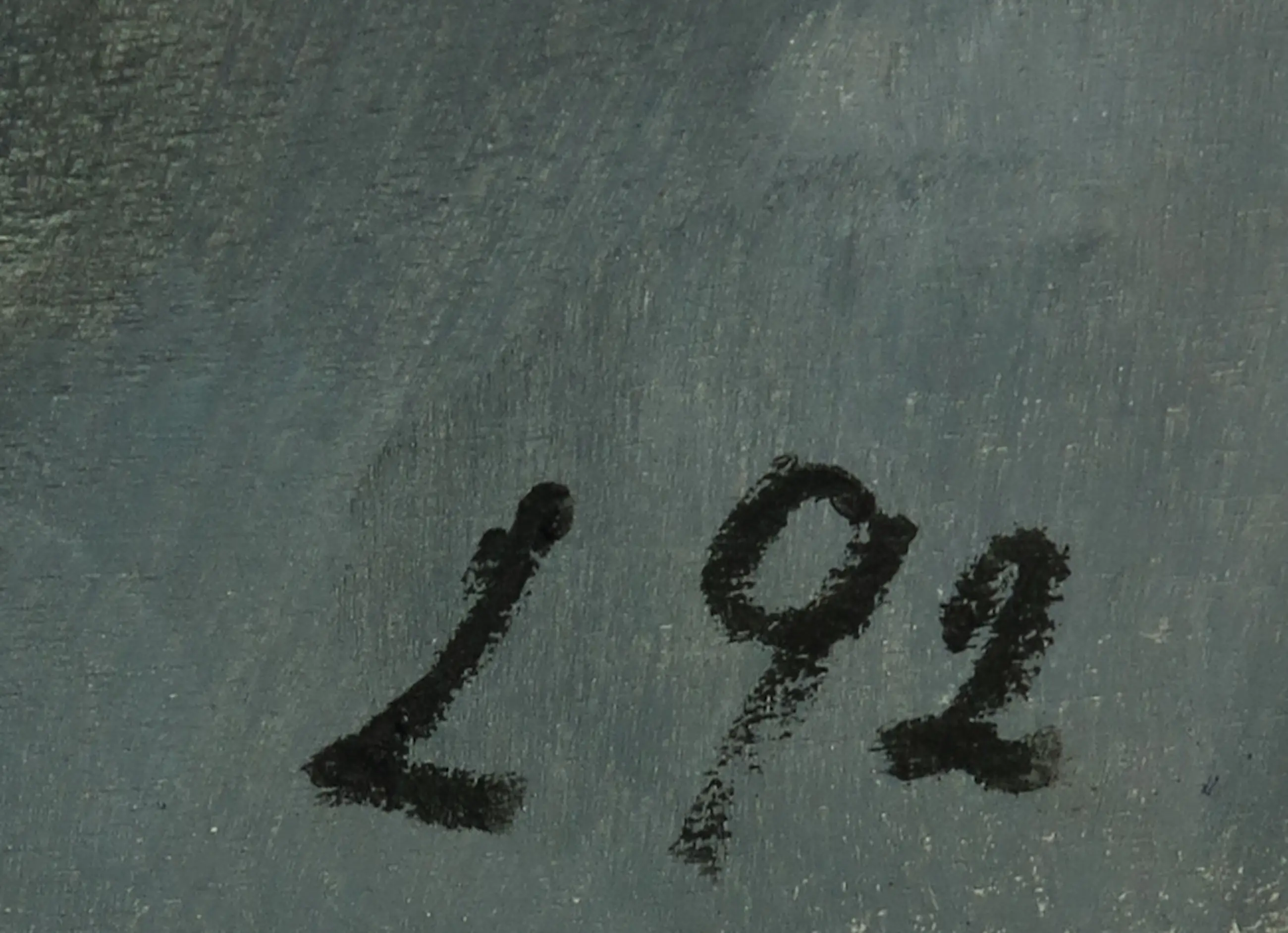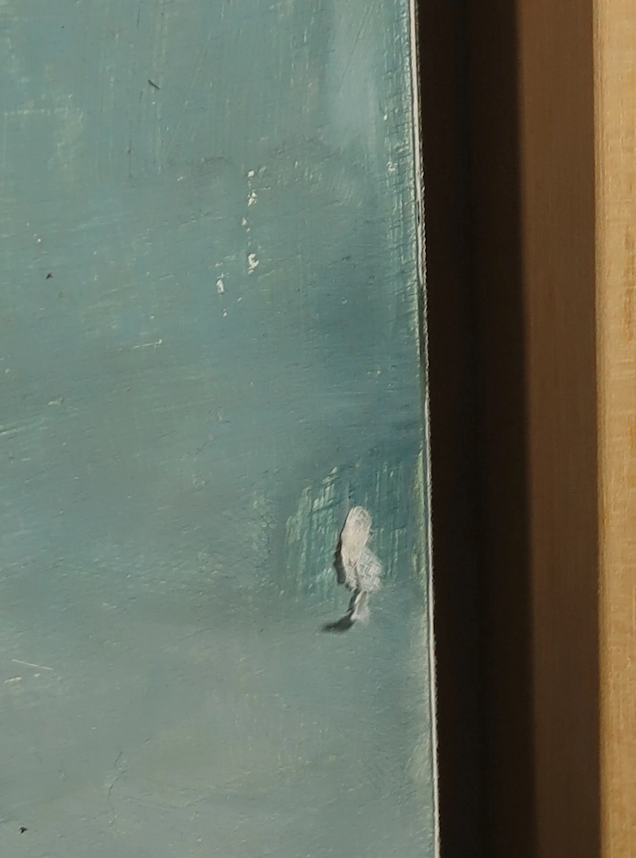 Het werk heeft op enkele plekken wat oppervlakteschade, met name aan de hoeken en randen van het paneel. (Zie detailfoto's)