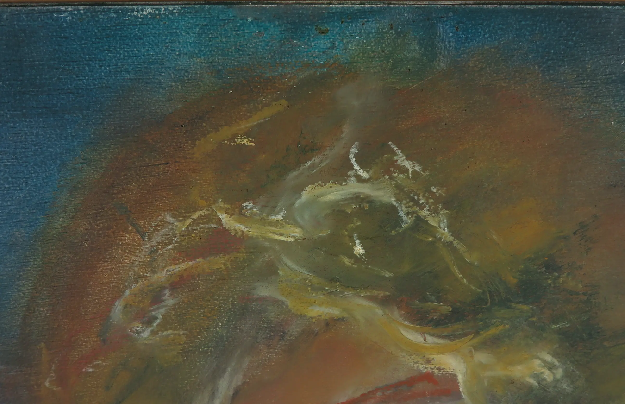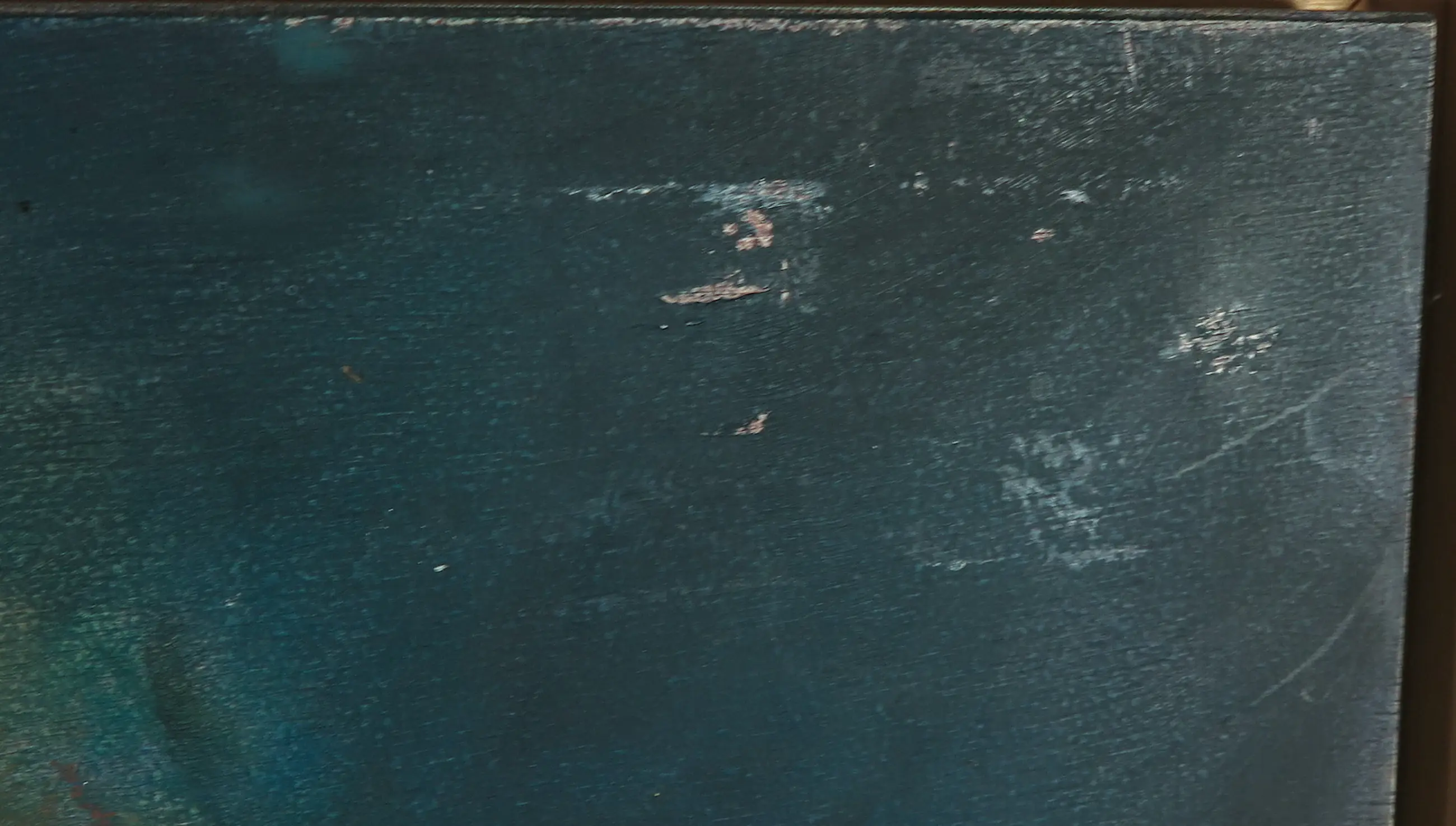 | Wat slijtagesporen aan de randen van het paneel. In de compositie wat minimale krasjes te zien. Zie voor beiden de bijgevoegde detailfoto's. | |