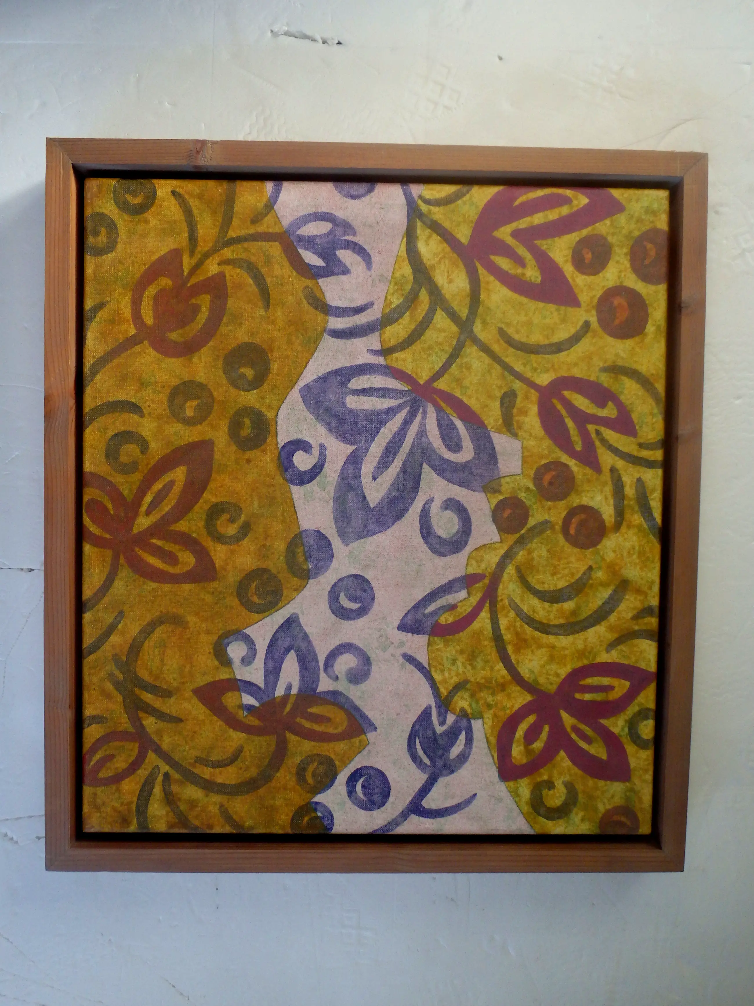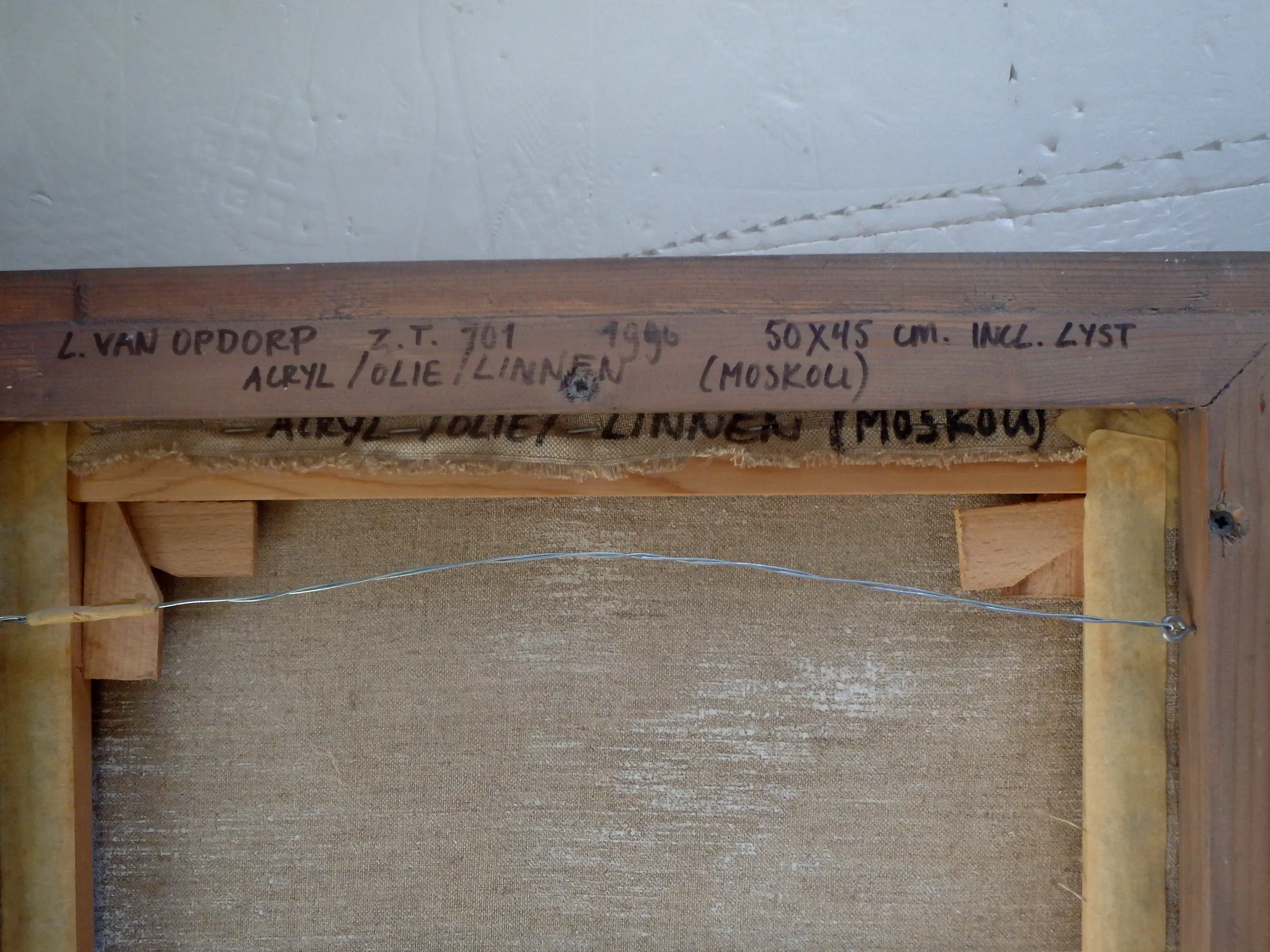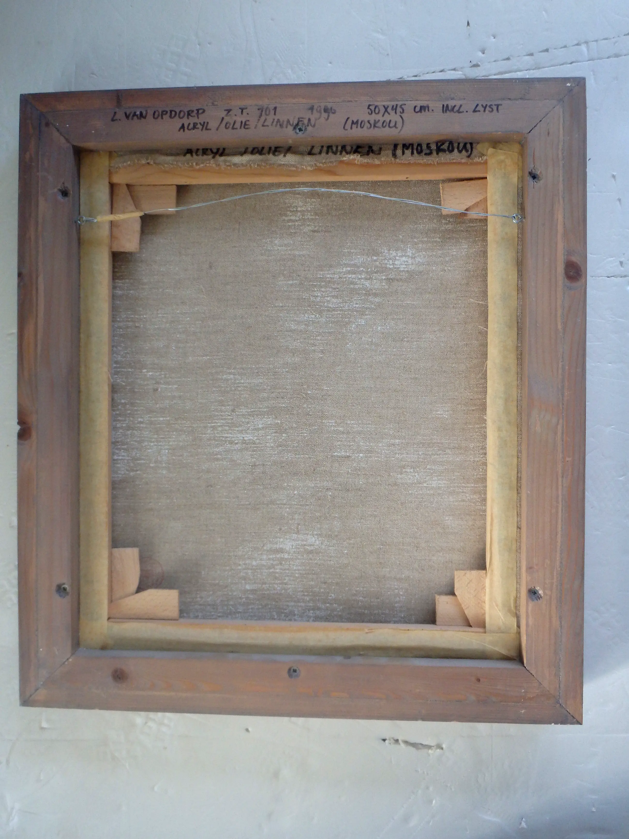 Olie / acrylverf op doek 46x40, in naturel houten baklijst.