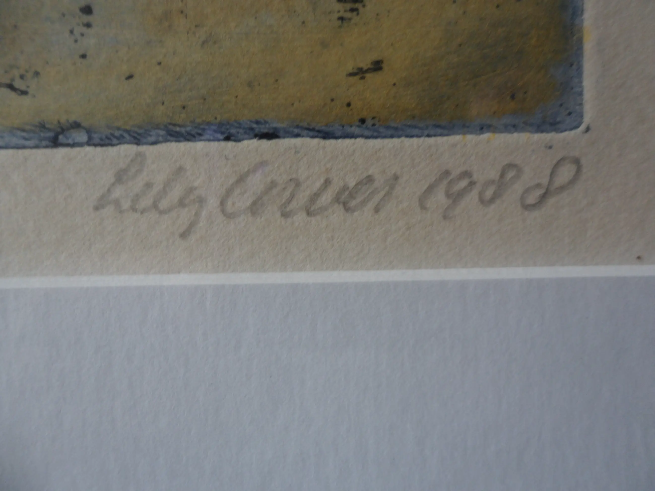 Lily Corver maakt kleuretsen, schilderwerk op papier en kleine objecten.