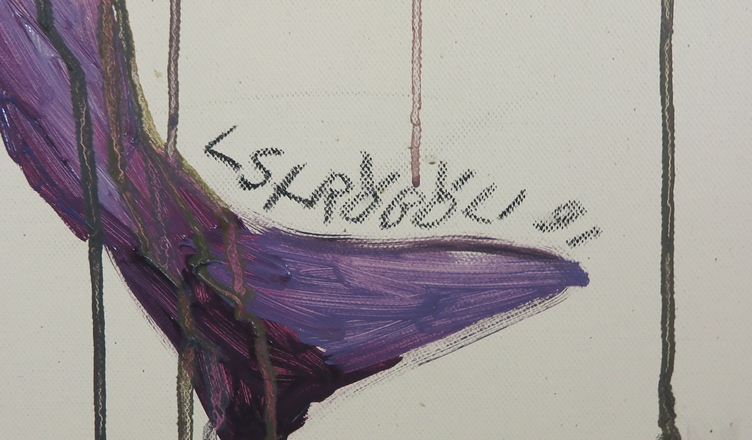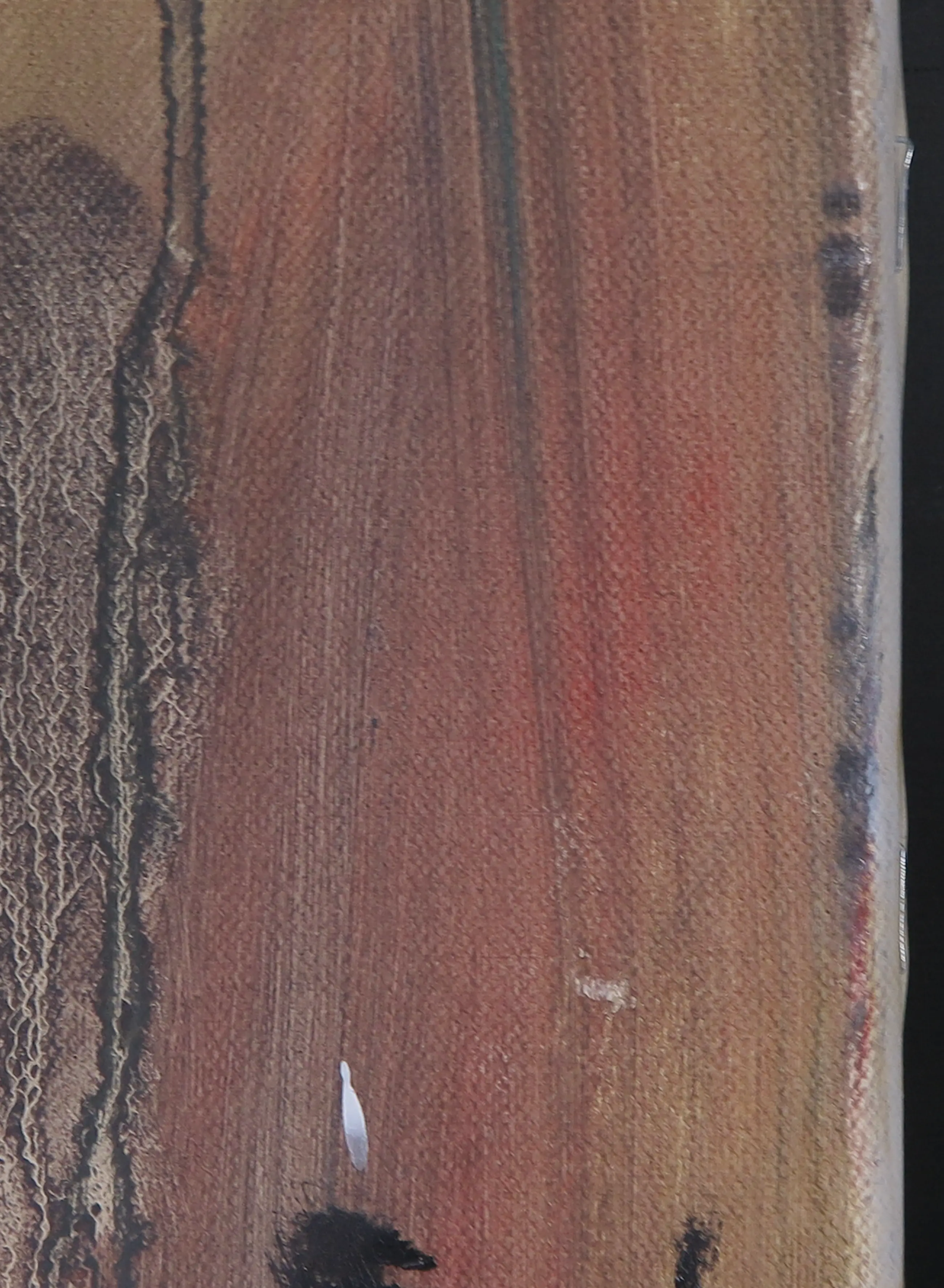 | Er zijn sporen aan de rand van het werk, welke te verhullen zijn met een mooie lijst. In het onderste vlak zijn wat lichte oneffenheden. | |