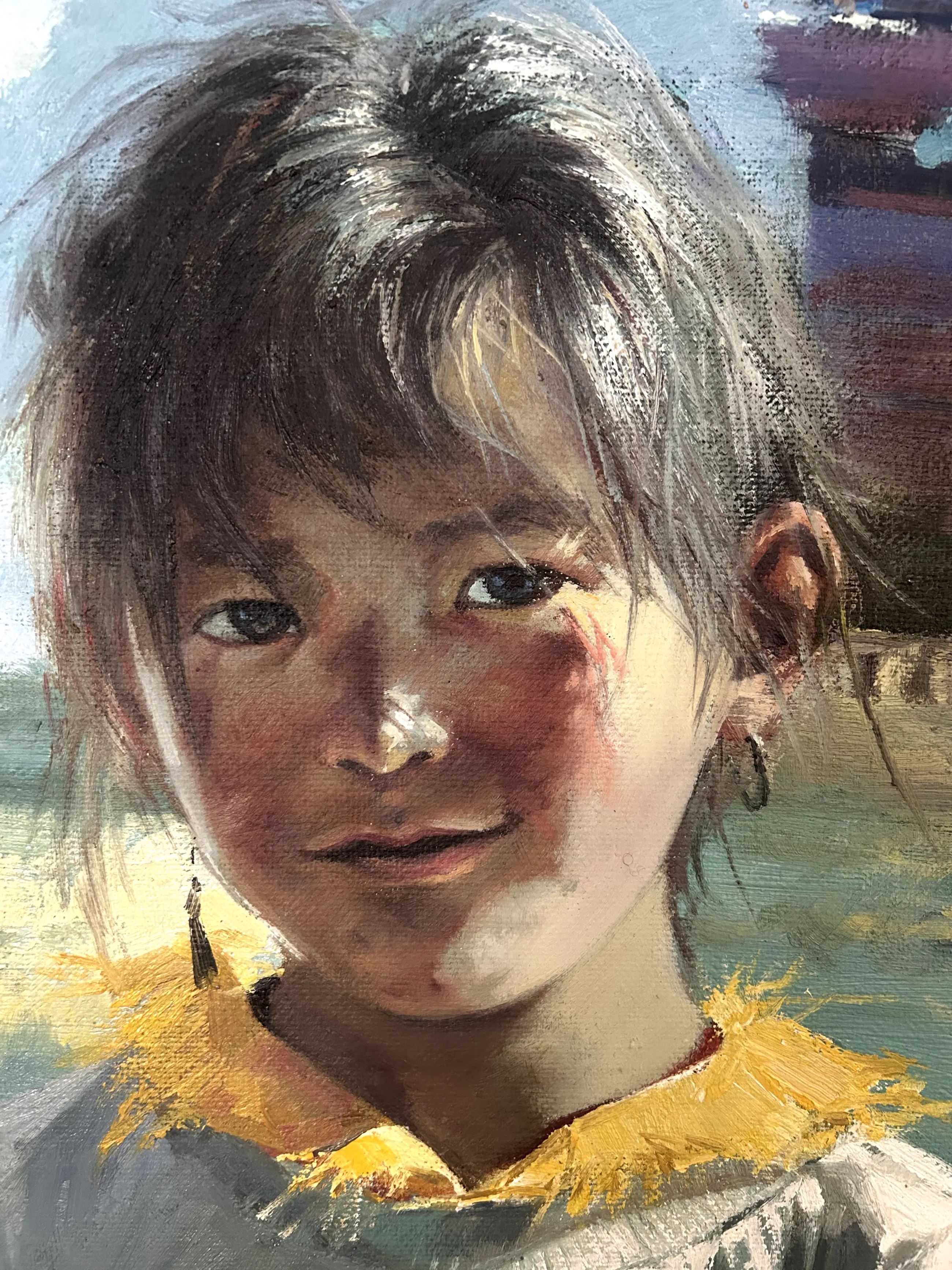 Lin Jun Chun is een schilder met vele talenten. Zijn oeuvre is zeer divers en hij weet karakter te leggen in de personen die hij schildert zoals bij dit Tibetaanse meisje.