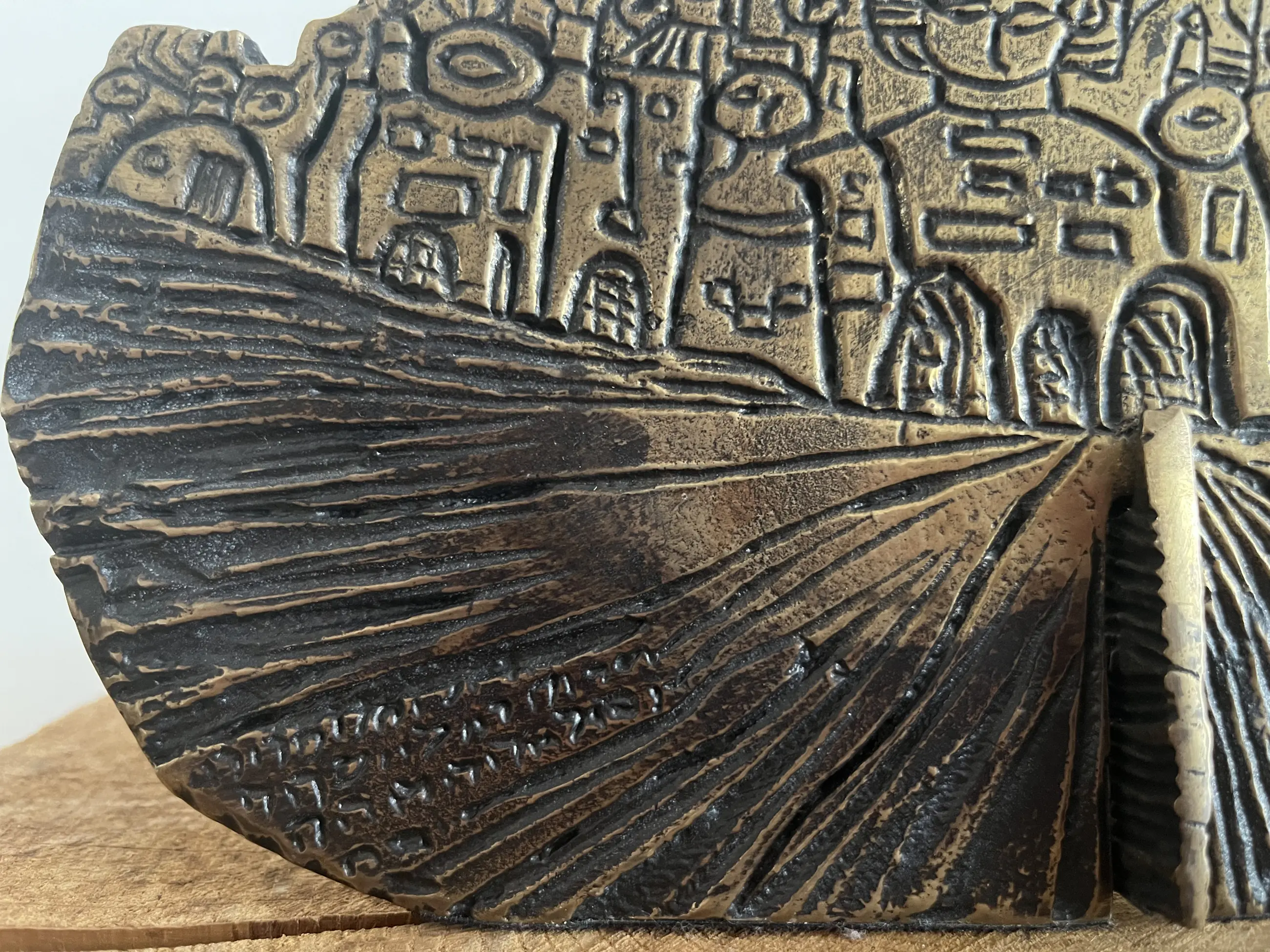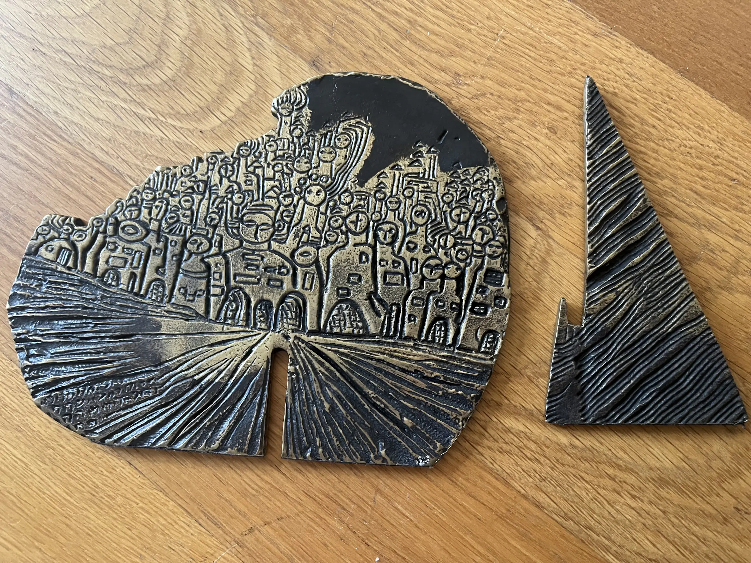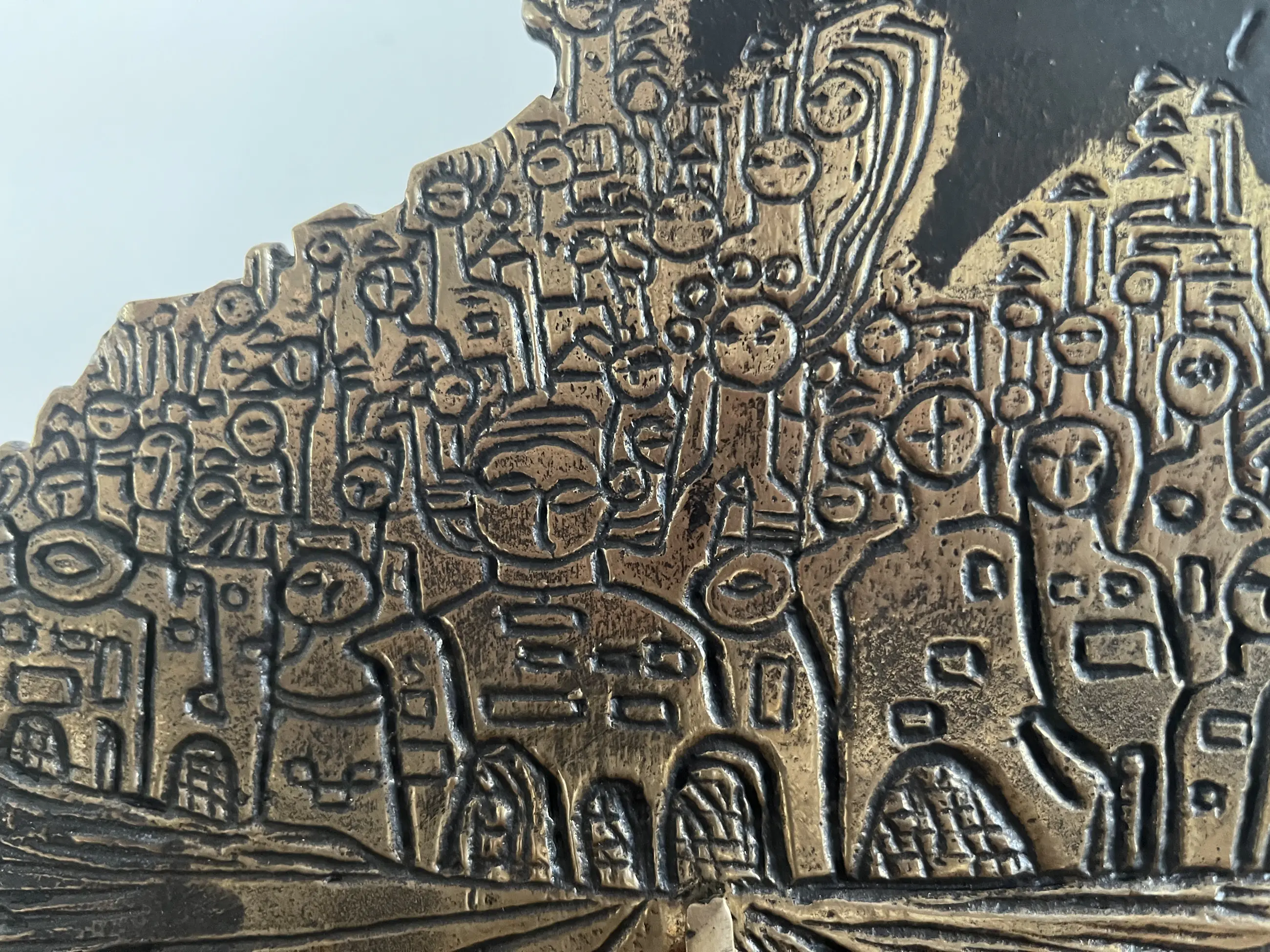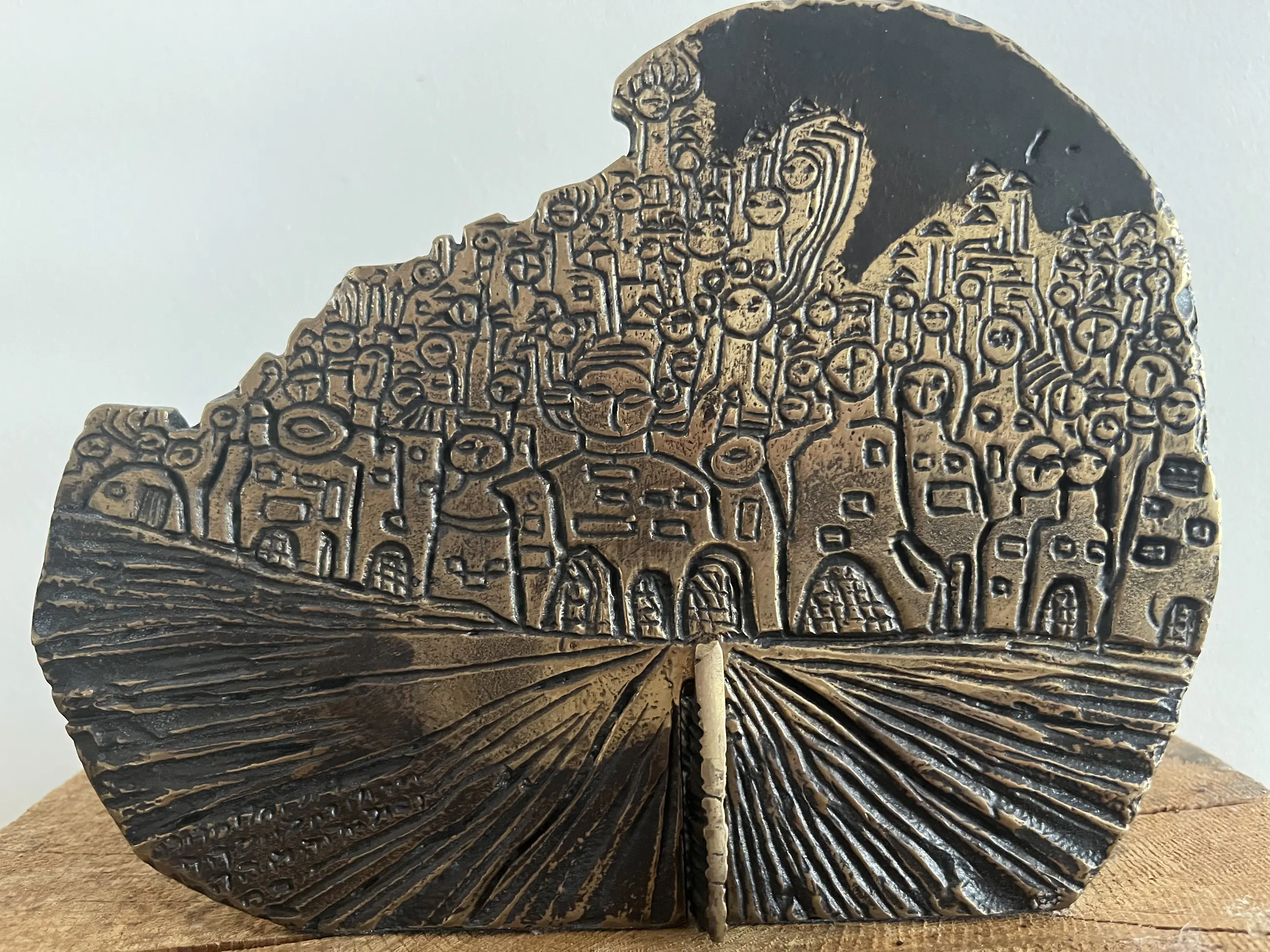 Fraai beeld waarin de drukte van de stad wordt weergegeven. Het is een plat beeld ( 5 mm dik) wat in een bijpassende houder gezet moet worden. Oplage 20/1000. Afmetingen beeld hxbxd. 16 x 21 x 0,5 cm. Standaard is 7 cm. diep.