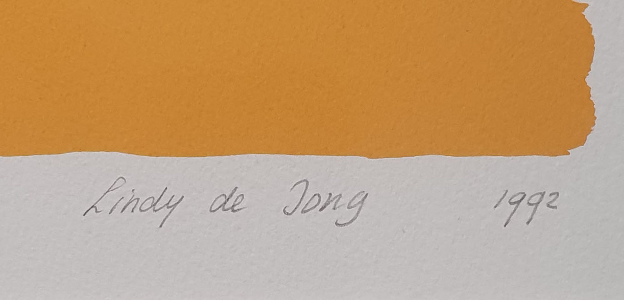 Kunstenaar: Lindy de Jong Techniek: Zeefdruk Oplage: 386/500 Gesigneerd: Rechtsonder Afwerking: Ingelijst Afmeting zonder lijst (HxB): 28 x 38 cm Afmeting met lijst (HxB): 50 x 60 cm Conditie werk: Zeer goed Conditie lijst: Gebruikt Referentie: 00942