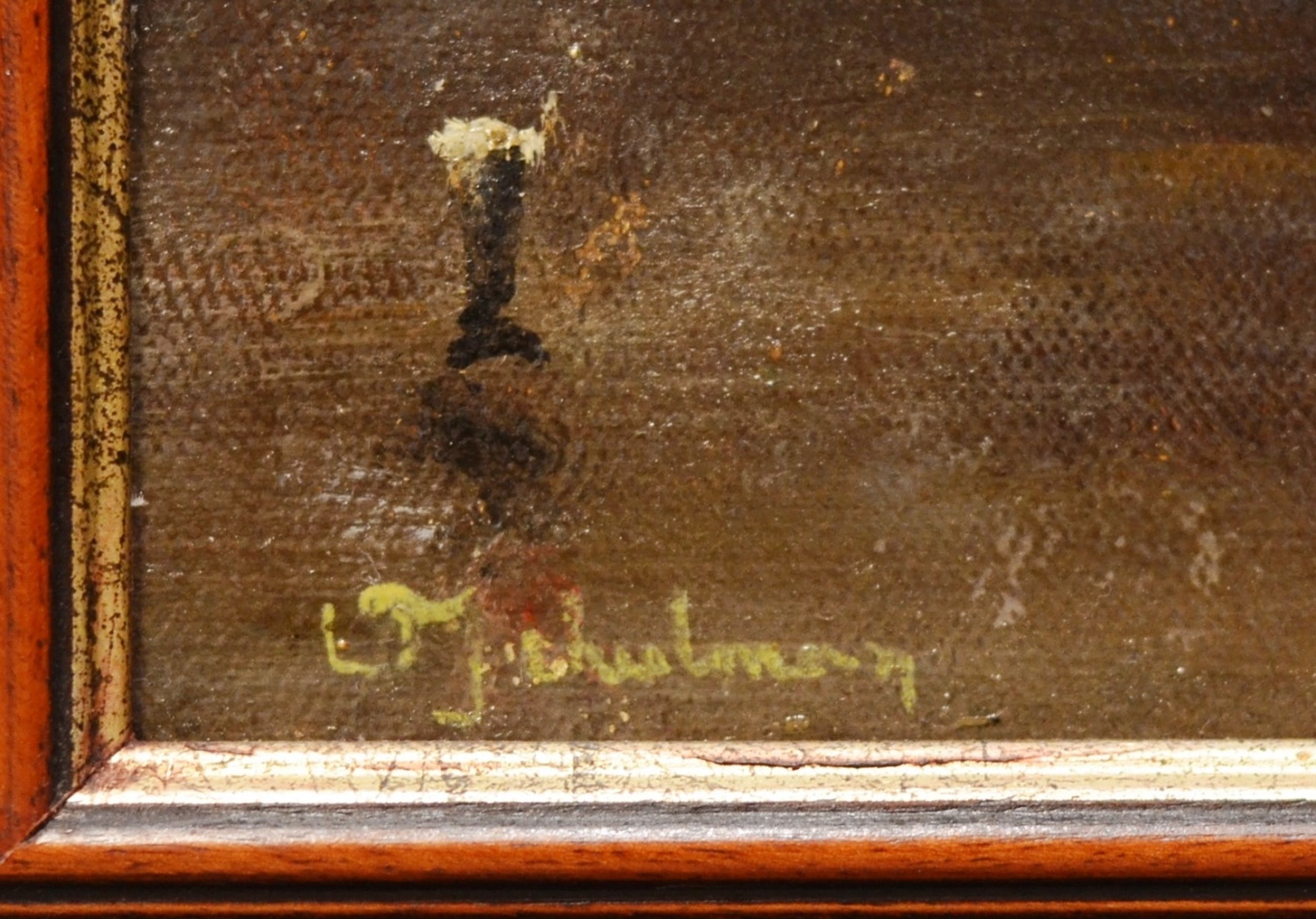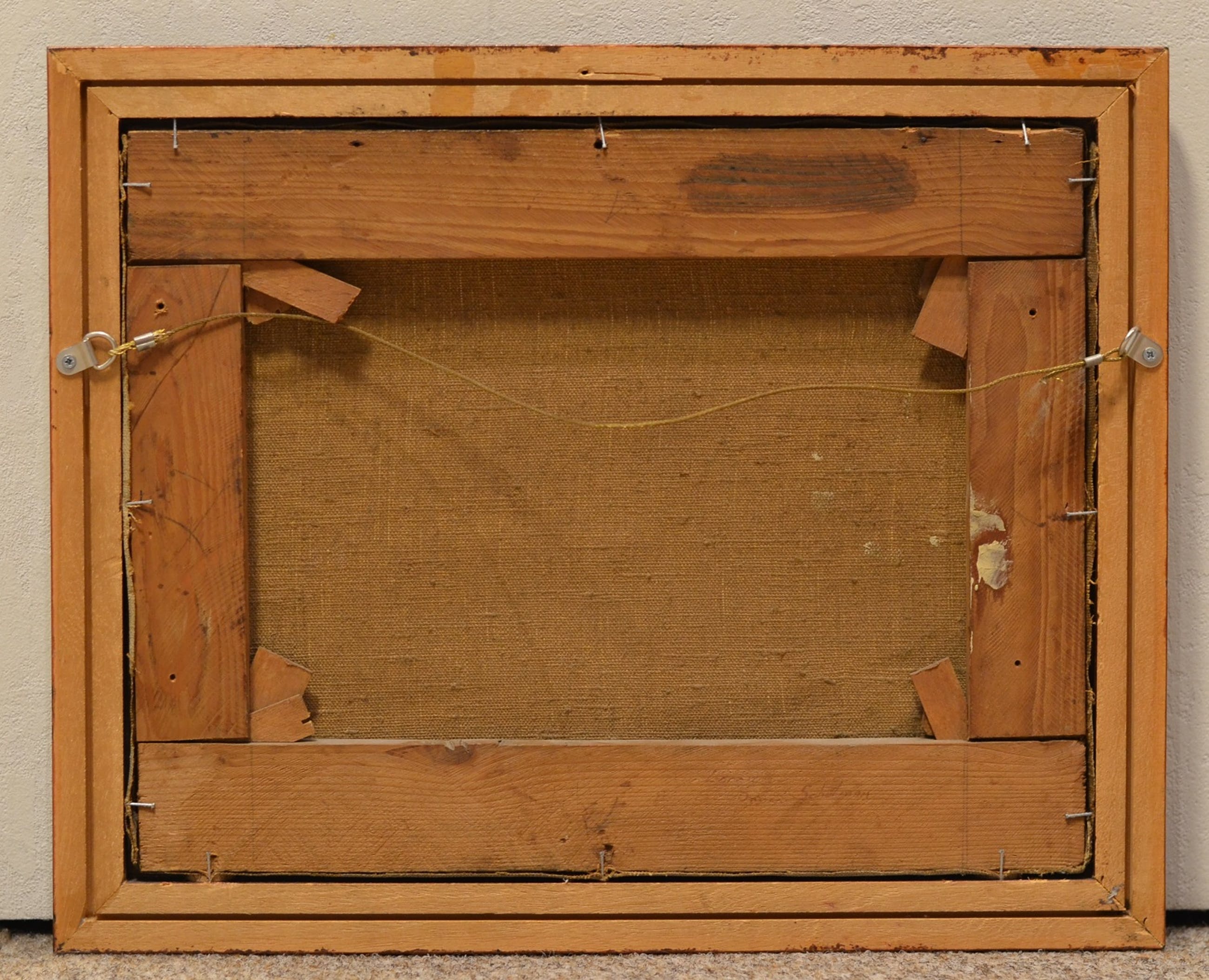 Het schilderij is in een goede staat. De lijst is ook in een goede staat met gebruikssporen.