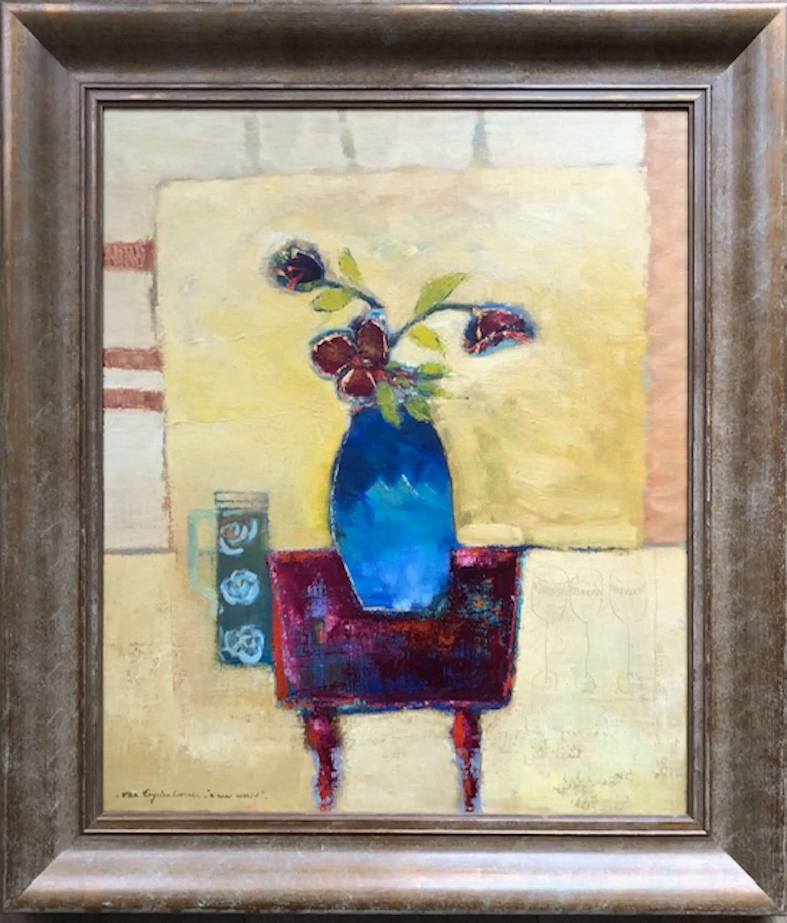 A New World mooi en kleurrijk olieverf schilderij op doek. Gesigneerd Lita van Engelenhoven. Perfect ingelijst in prachtige lijst.