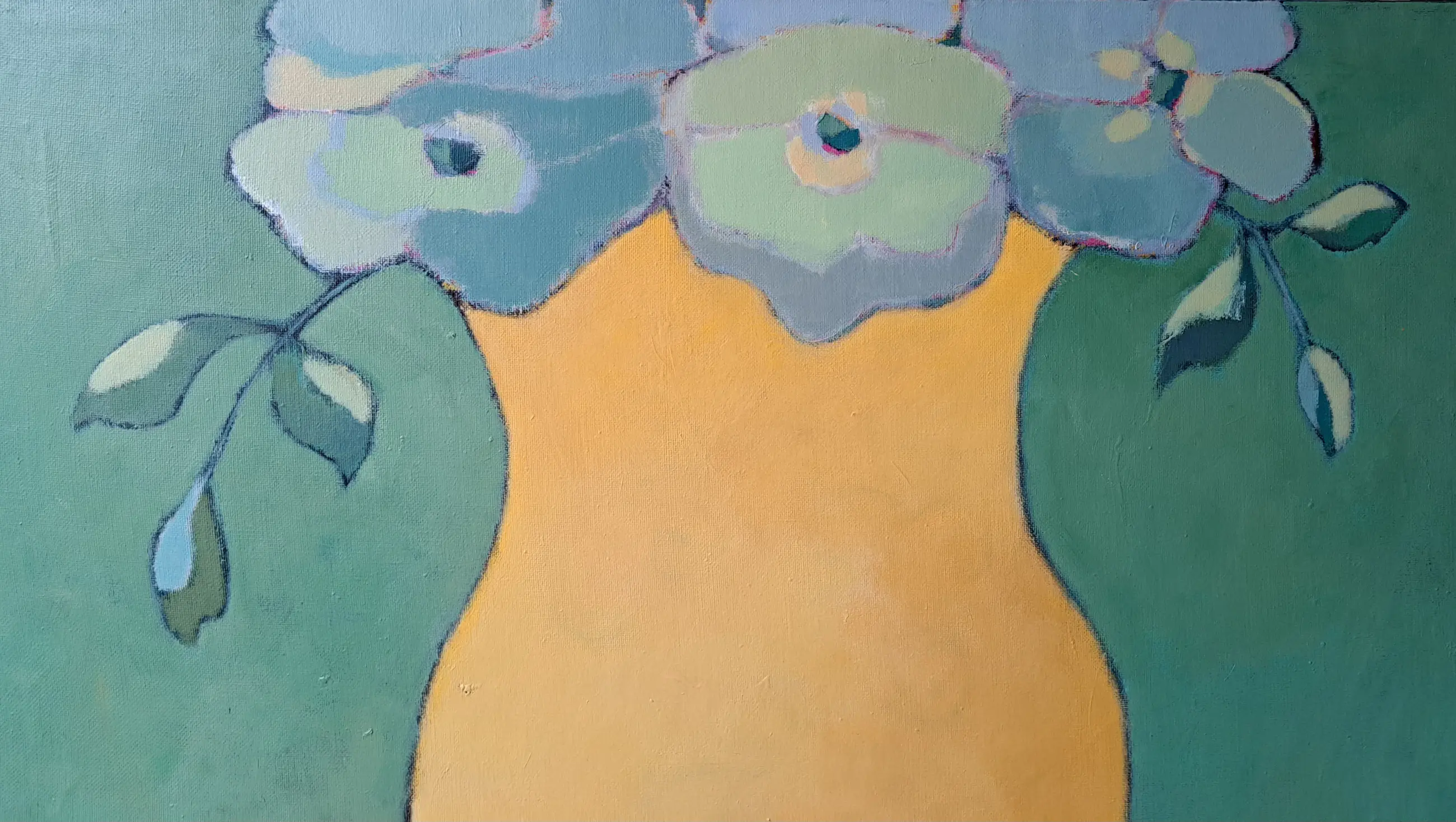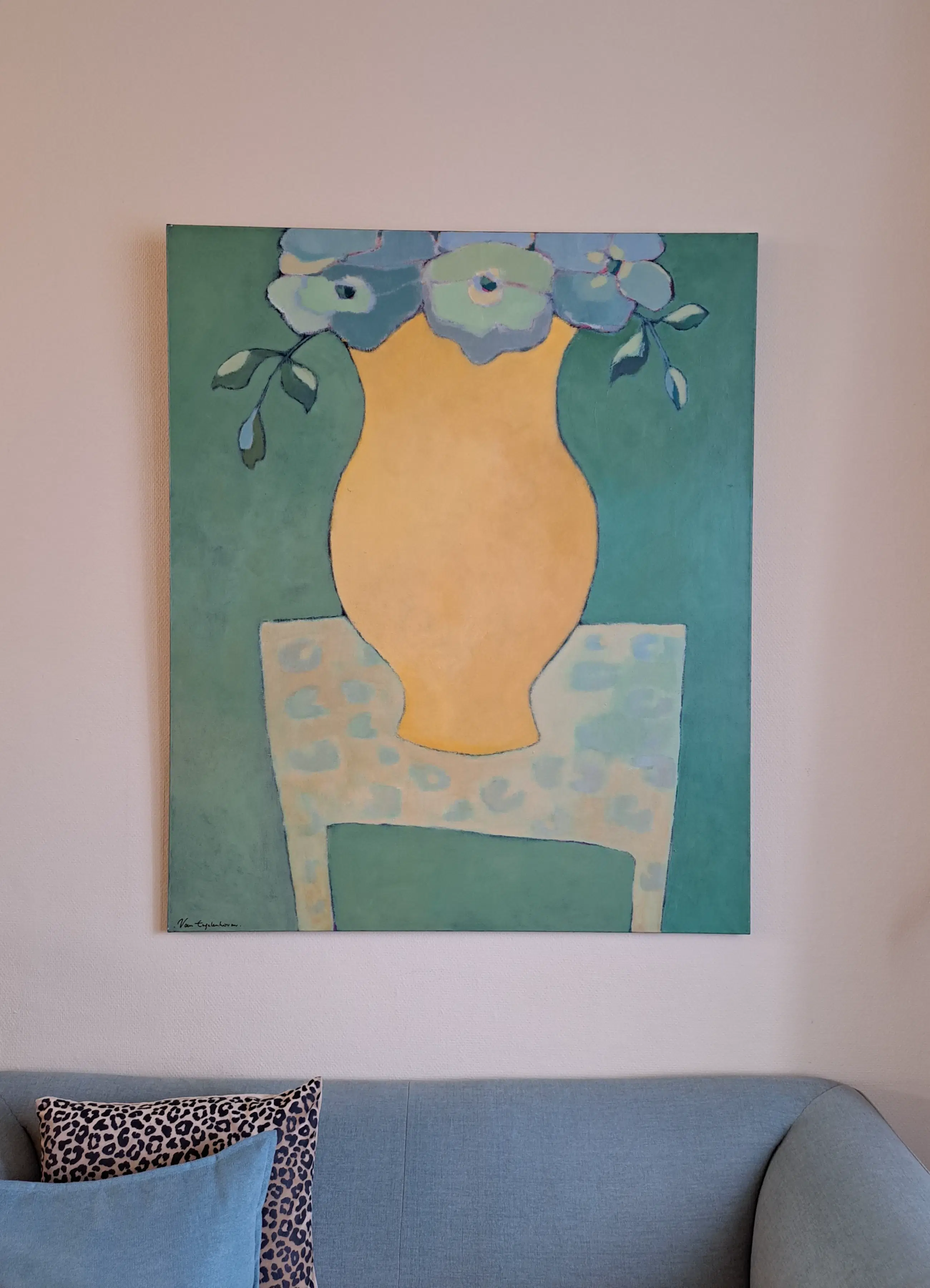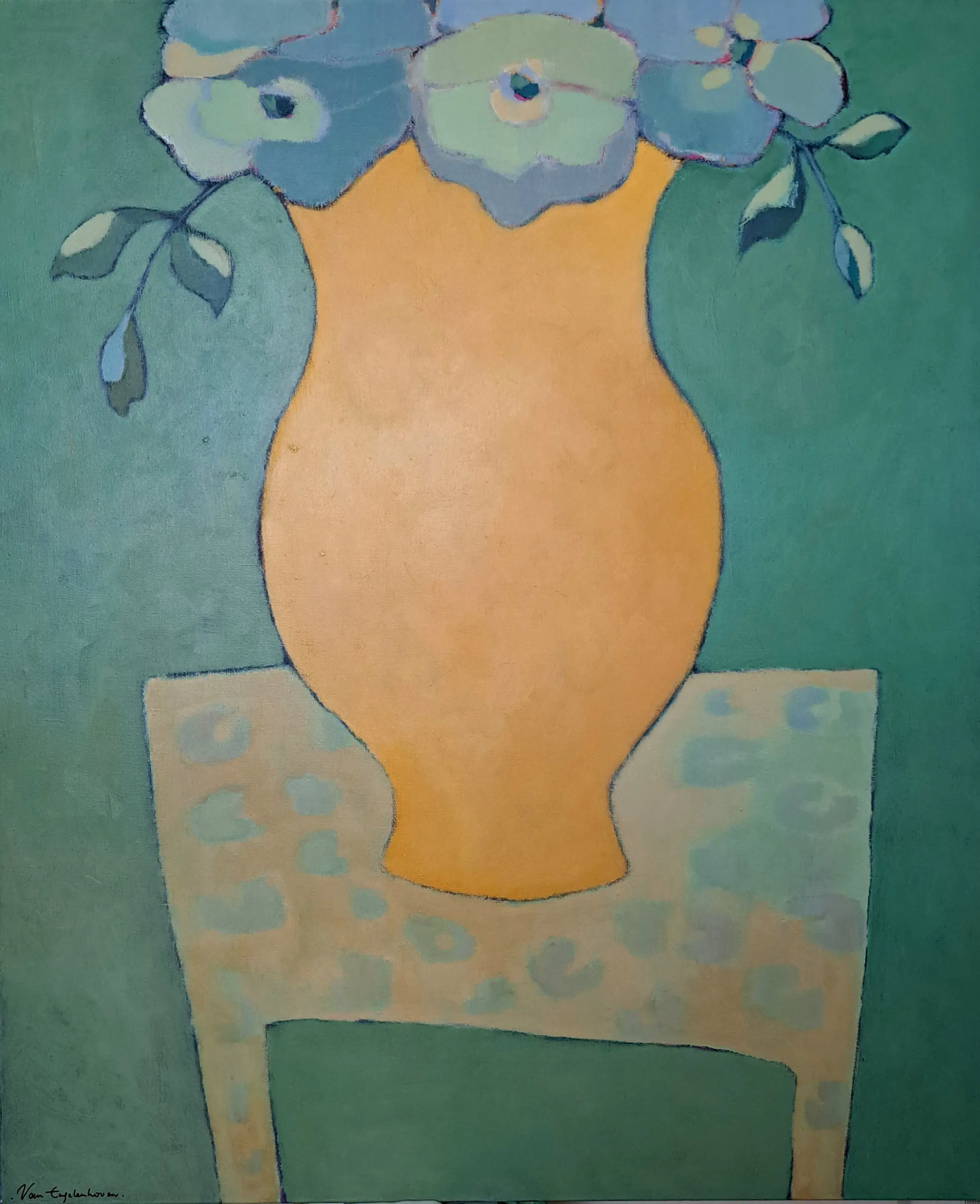 "Colours on the table". Kleurrijk schilderij, acryl op linnen van Lita van Engelenhoven.