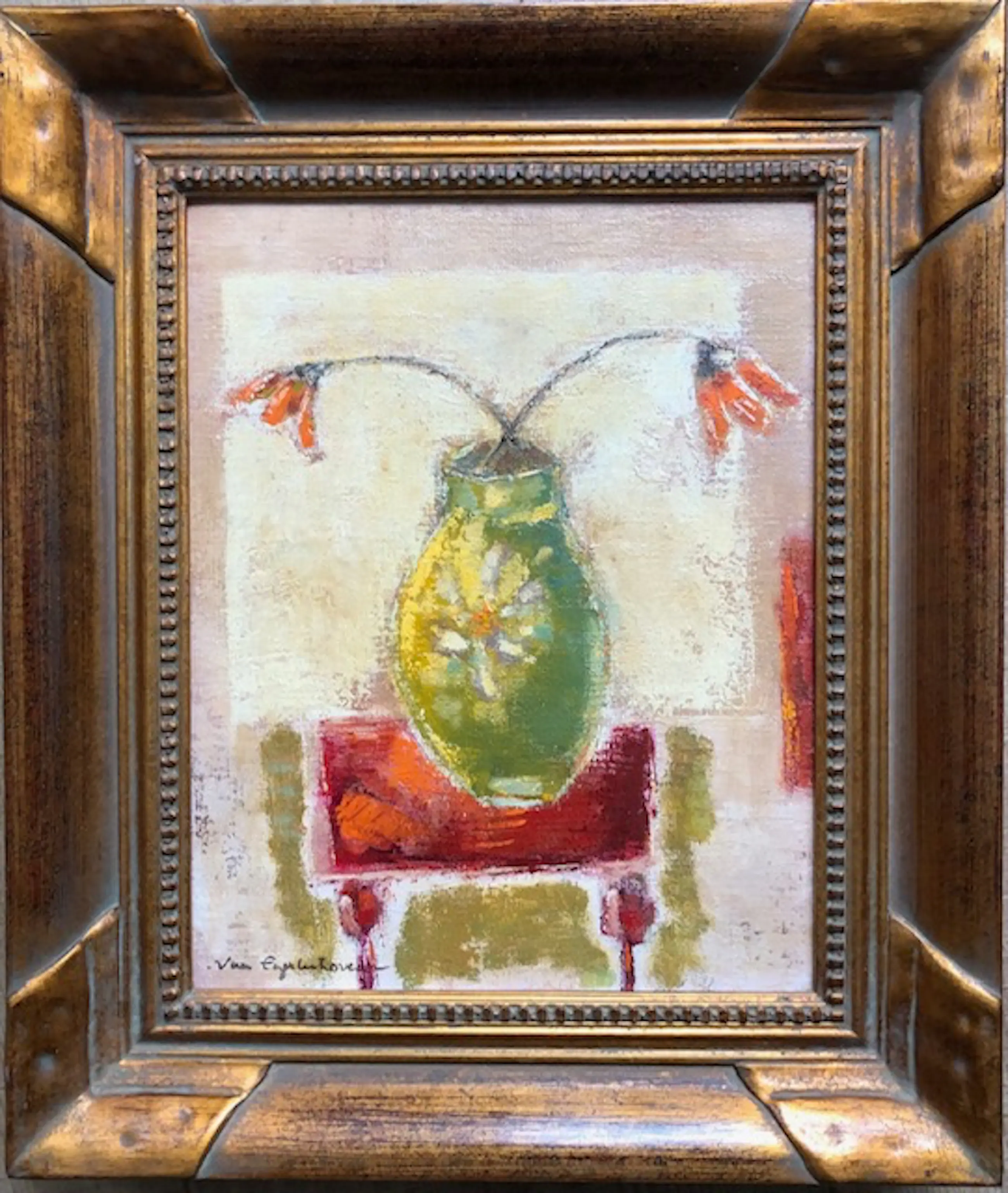 Vaasje IV mooi en kleurrijk olieverf schilderij op doek.