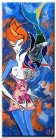 MÄDCHEN mit FISCH - Acryl auf Leinwand - Handsigniert - Format ca.: 20 X 49 cm Mischtechnik (Acryl, Relief Paint)auf Leinwand / bespannter Keilrahmen - Versand/shipping: BRD 12.00 euro versichert - : multiple lots maybe combined - Versandkosten entstehen immer nur einmal
