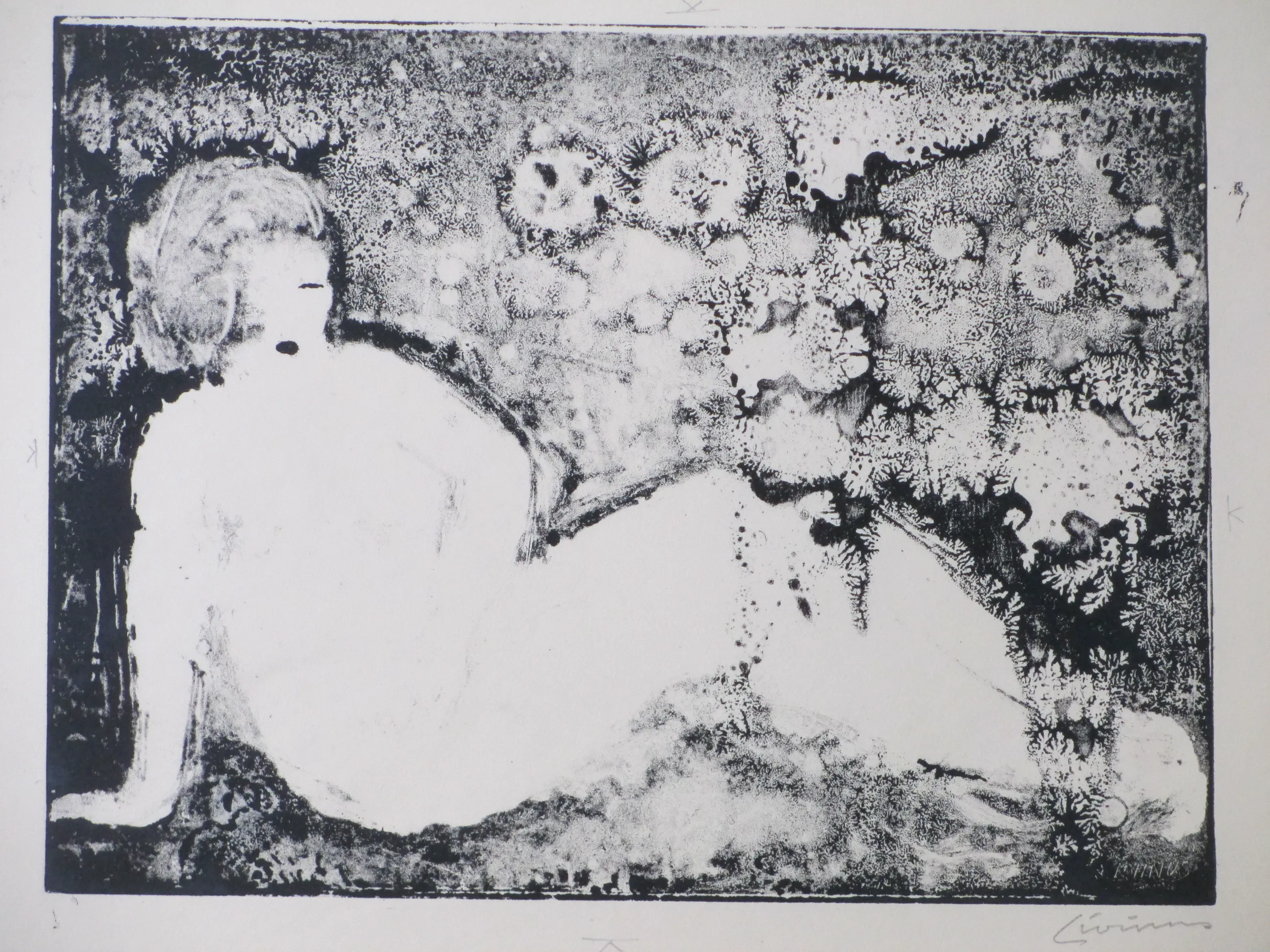 LAATSTE KANS!! Litho door Livinus van de Bundt Voorstelling van een liggend naakt Losbladig, beeldmaat 22x30, bladmaat 32x48 Proefdruk, op de achterzijde voorzien van een vingerafdruk Gesigneerd in potlood r.o.: 'Livinus' Tevens gesigneerd r.o. in de druk Op blad l.o. getiteld en annotatie: 'Naakt (No.1 uit suite) 1945' Authenticiteit volledig gegarandeerd