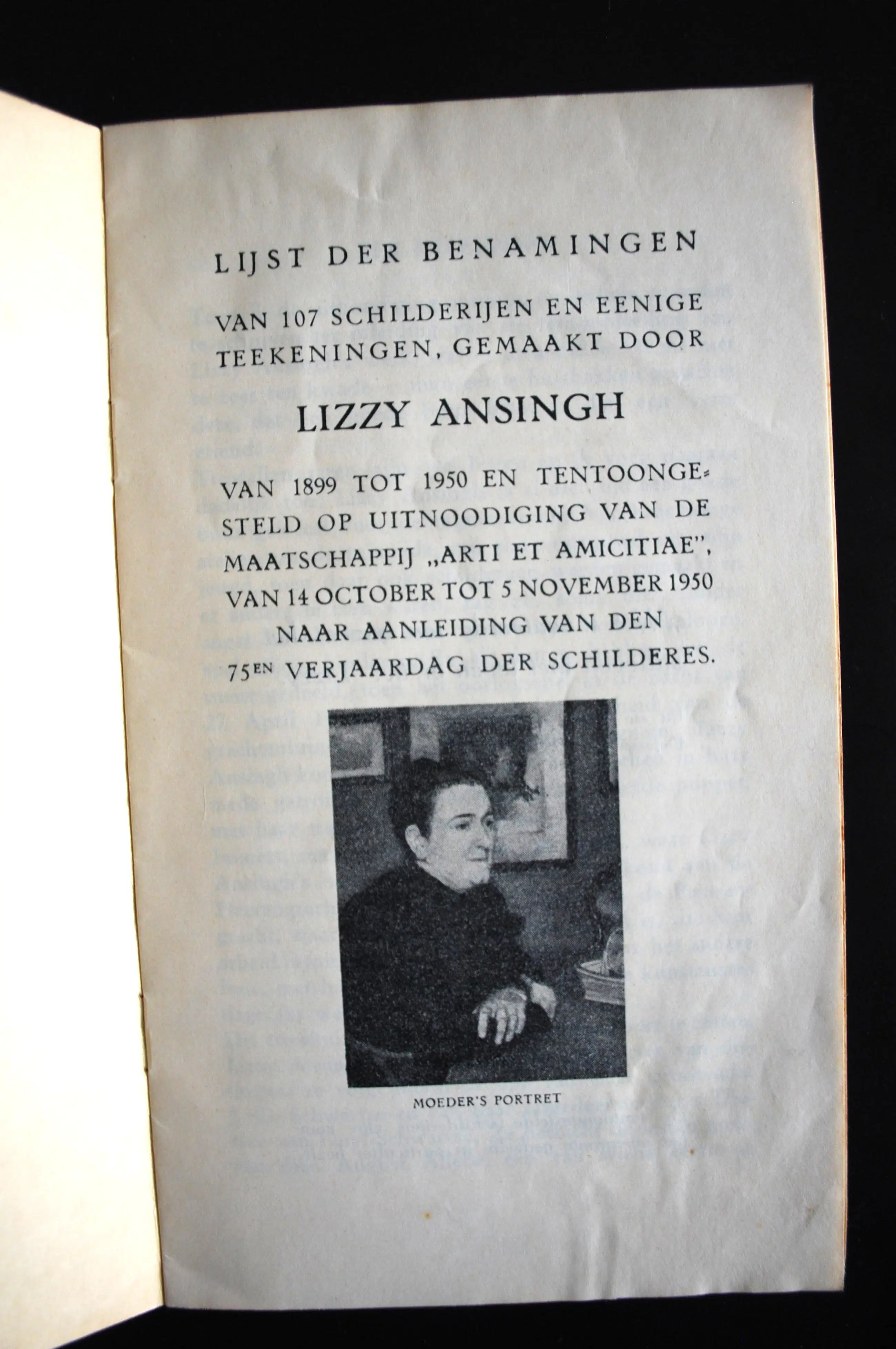 - Het standaardwerk van Adriaan Venema uit 1977, hardcover met omslag (wat schade). In zeer goede staat. - Kroonder uitgave van de Joffers uit 1947. Hardcover. - Nelly Bodenheim, haar leven en werk. 1988. Met extra: paginagroot krantenartikel. - Tentoonstellingsgids Lizzy Ansingh, Arti 1950. Zeldzaam. - Diverse krantenartikelen en 2 foto's van Ansingh's werk.